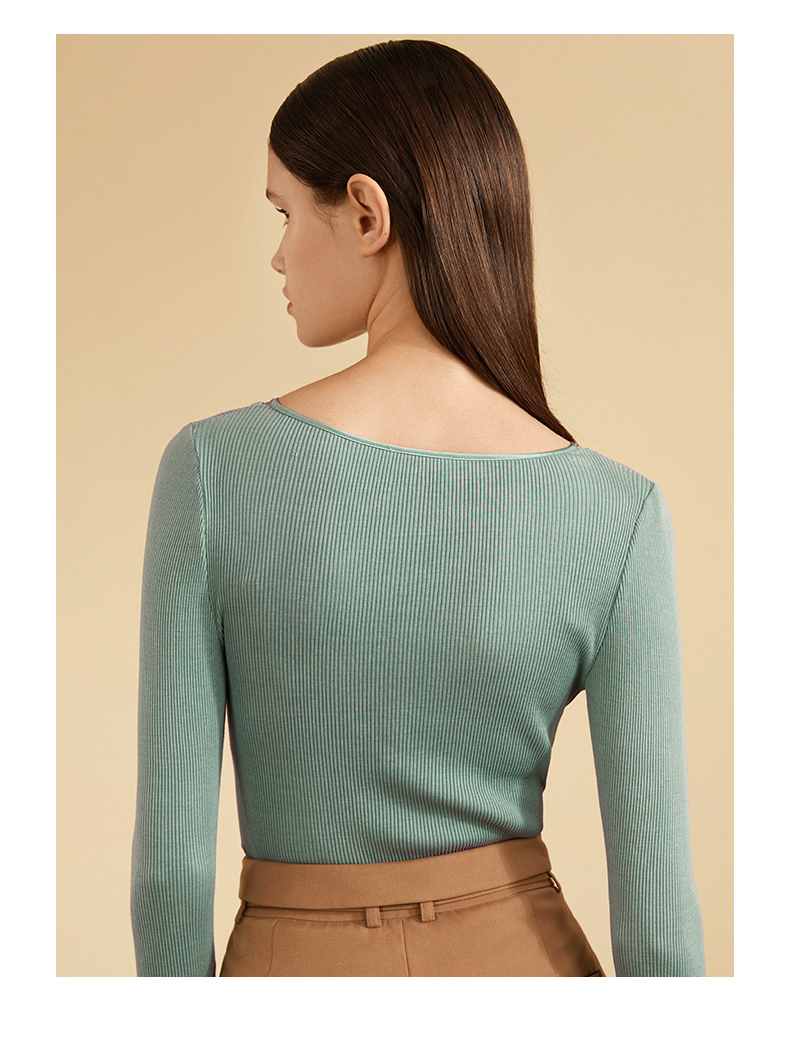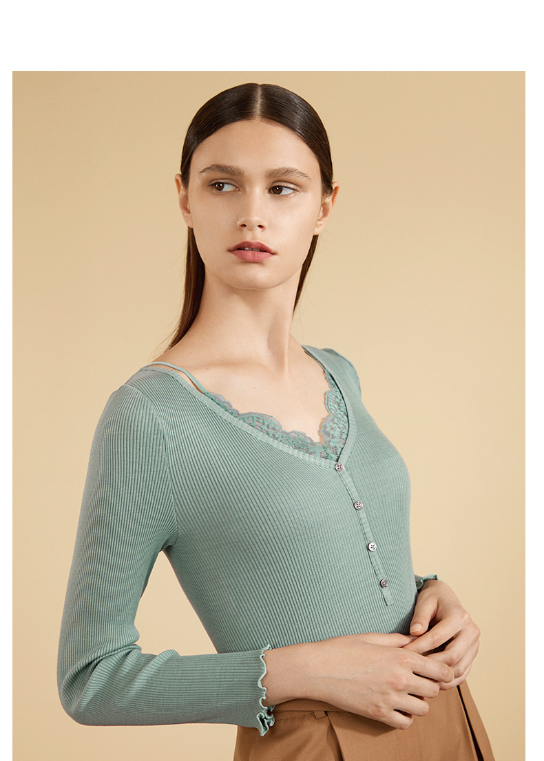金三塔桑蚕丝V领打底衫长袖性感长袖打底上衣女 NZFAC725