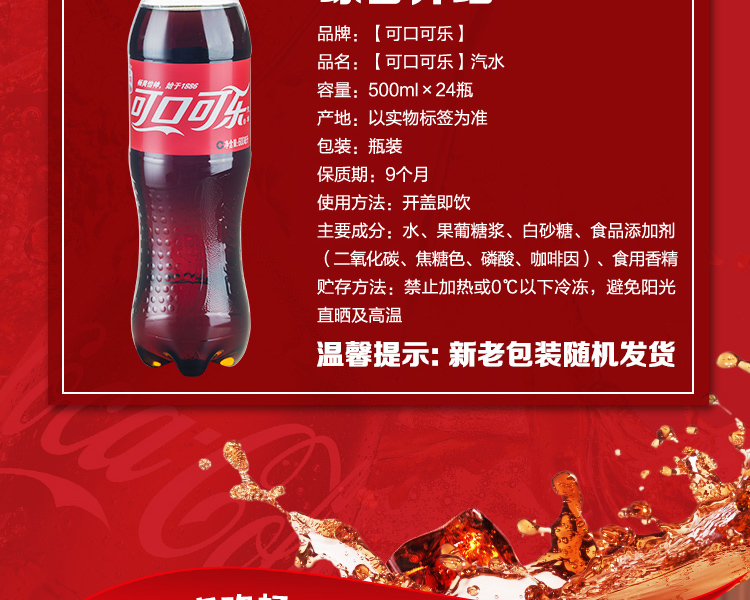 可口可乐 无糖零度可乐汽水碳酸饮料500ml/瓶