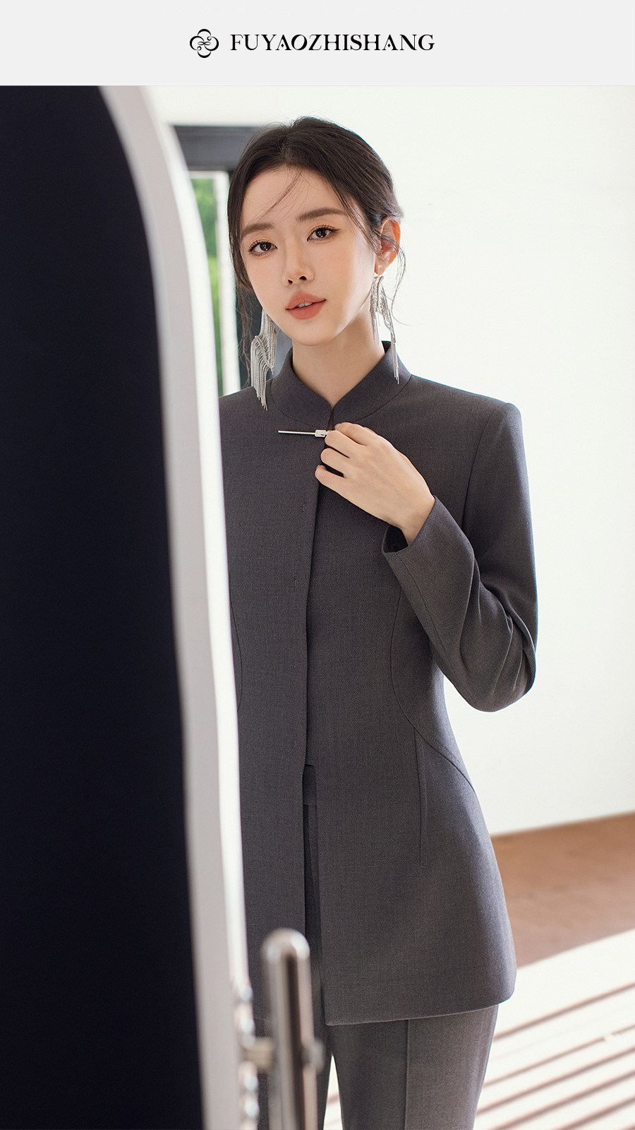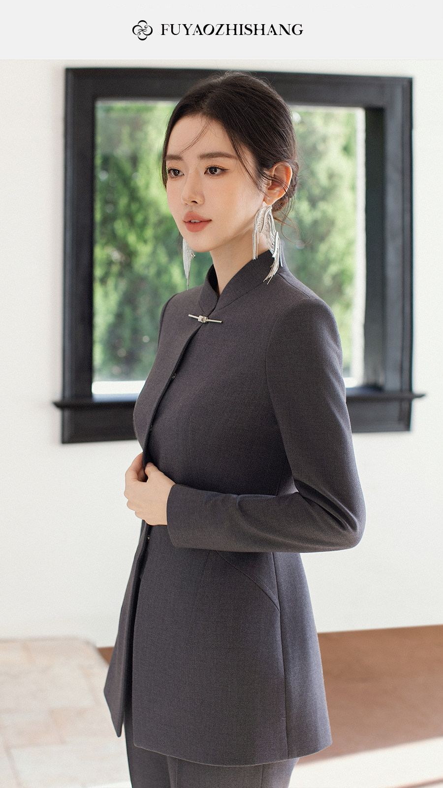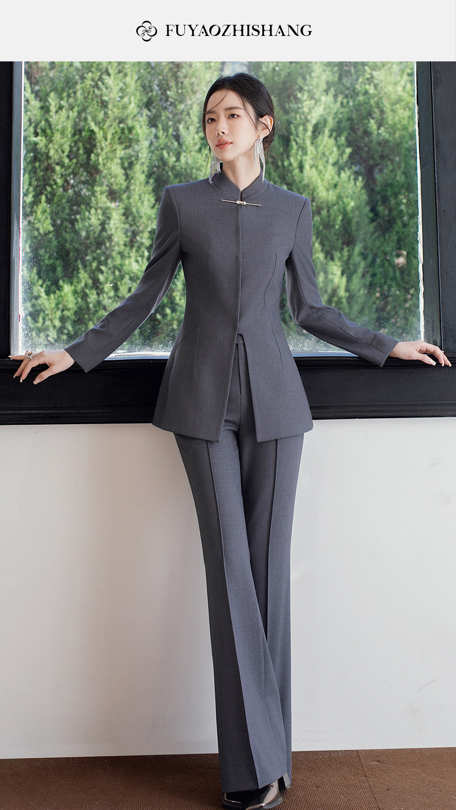 FUYAO扶摇直上 青年装立领新中式西装套装女通勤长袖正装正式场合
