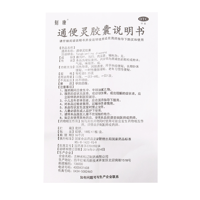 刻康 通便灵胶囊18粒/盒 润肠通便 热结便秘 老年习惯性便秘