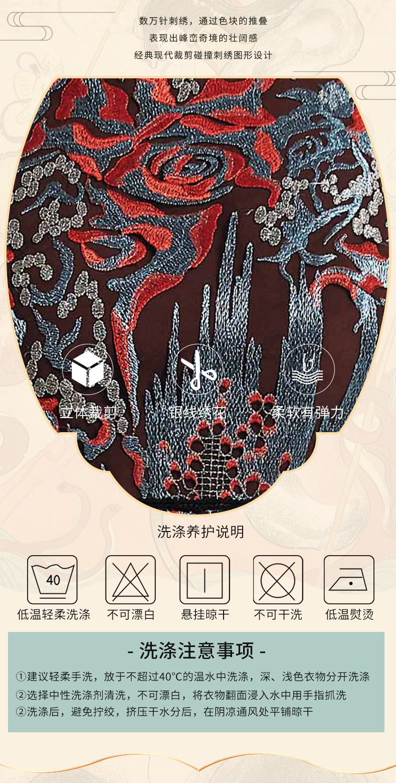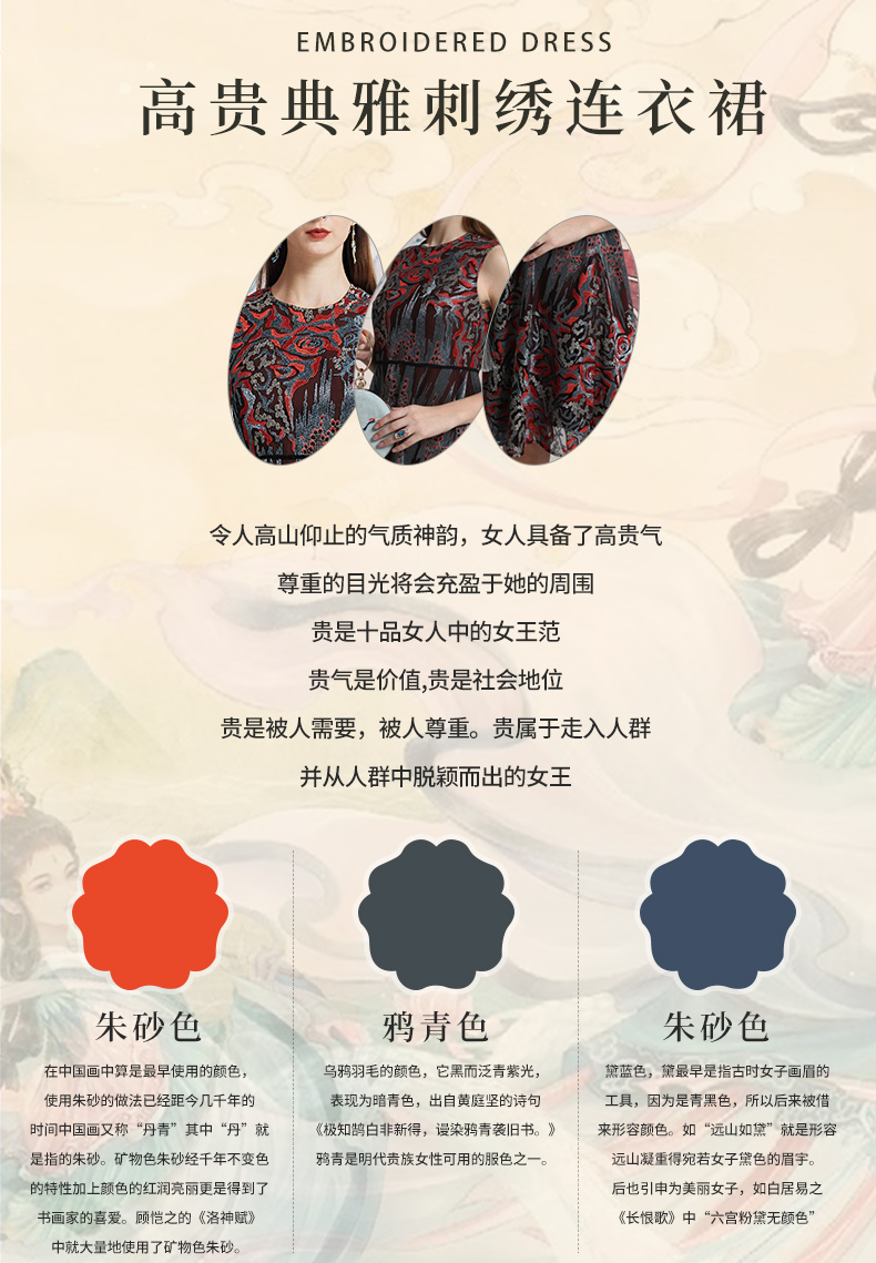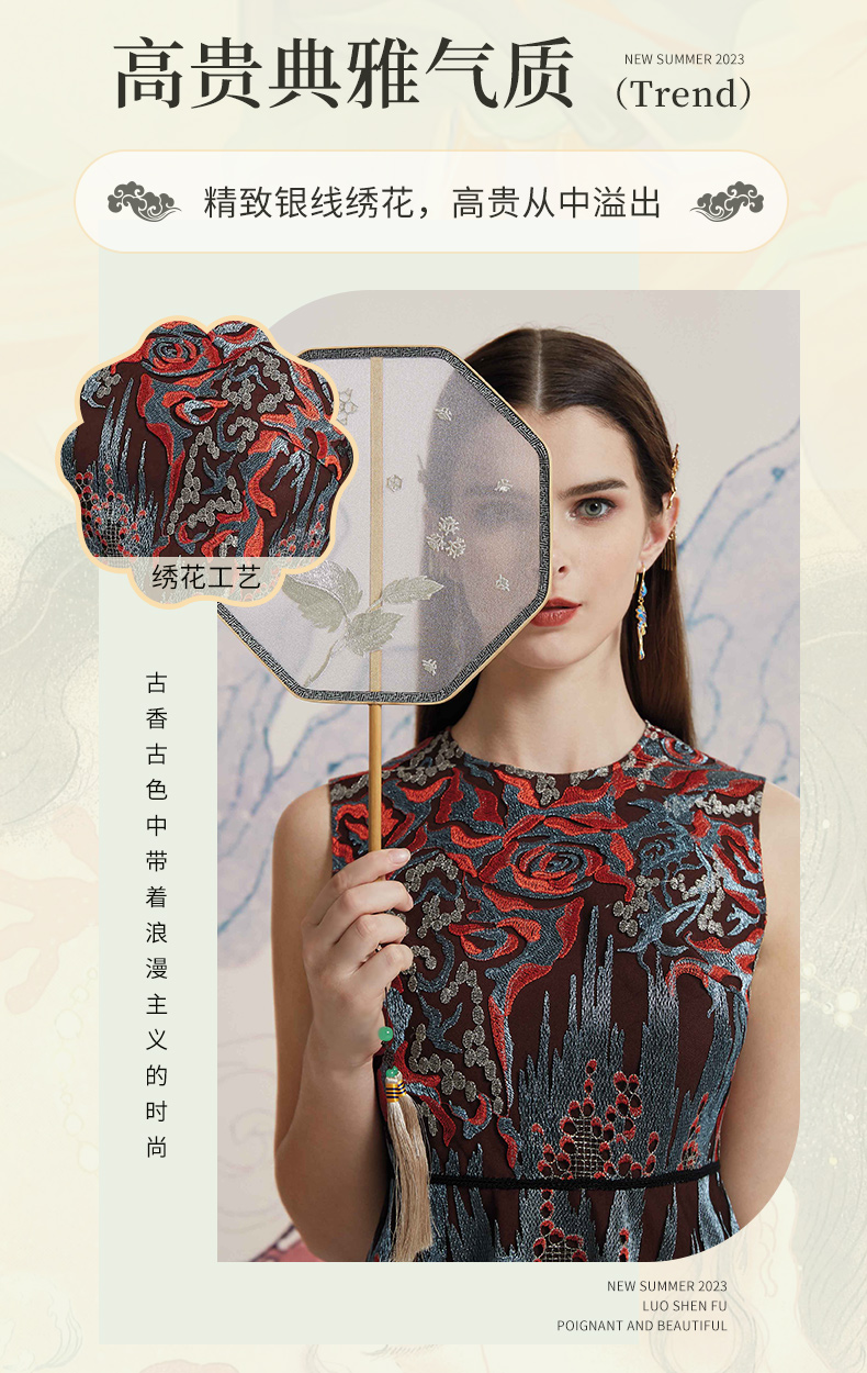 品牌风格:源自千年文学和万年艺术的时装,让你的气质内涵一枝独秀,精彩的品质,华丽的风格,炫耀的视觉,让你的衣品从此与众不同,标记你深厚的文化内涵与艺术气息。