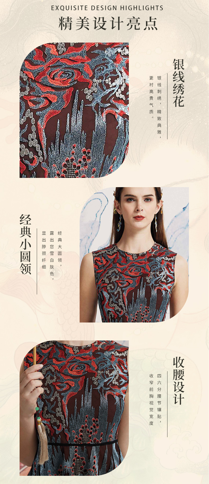 【伯妮斯茵】精致典雅刺绣连衣裙--丹青如黛--《洛神赋》1S6028