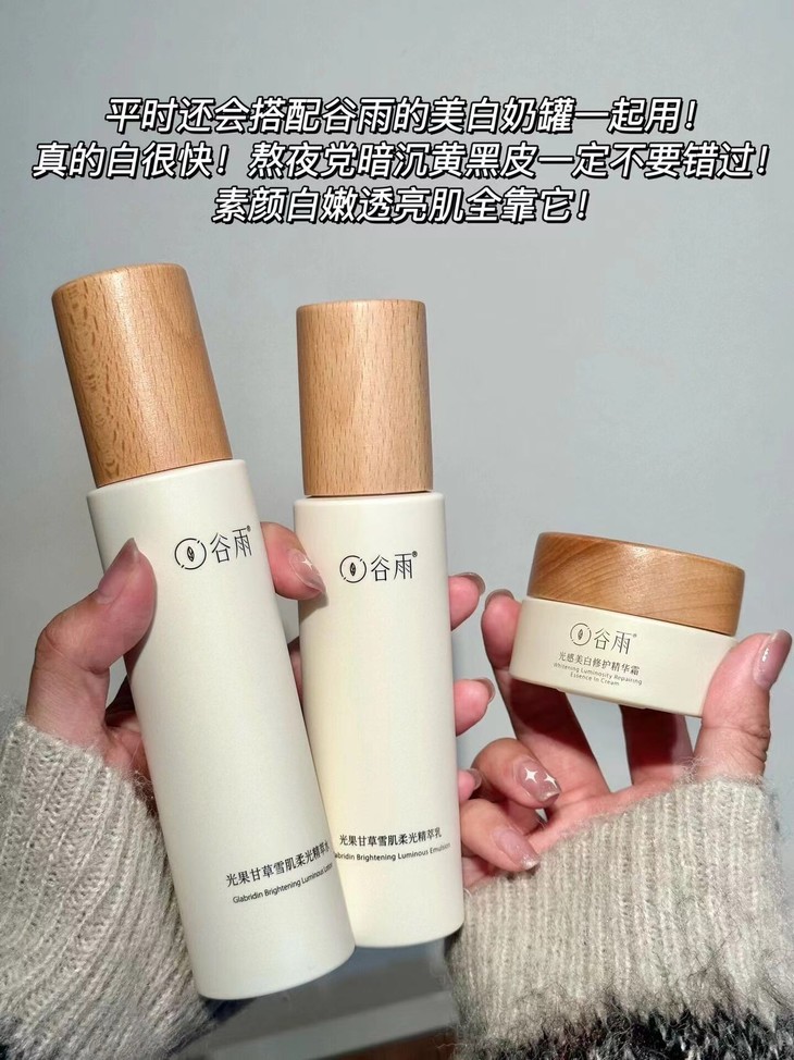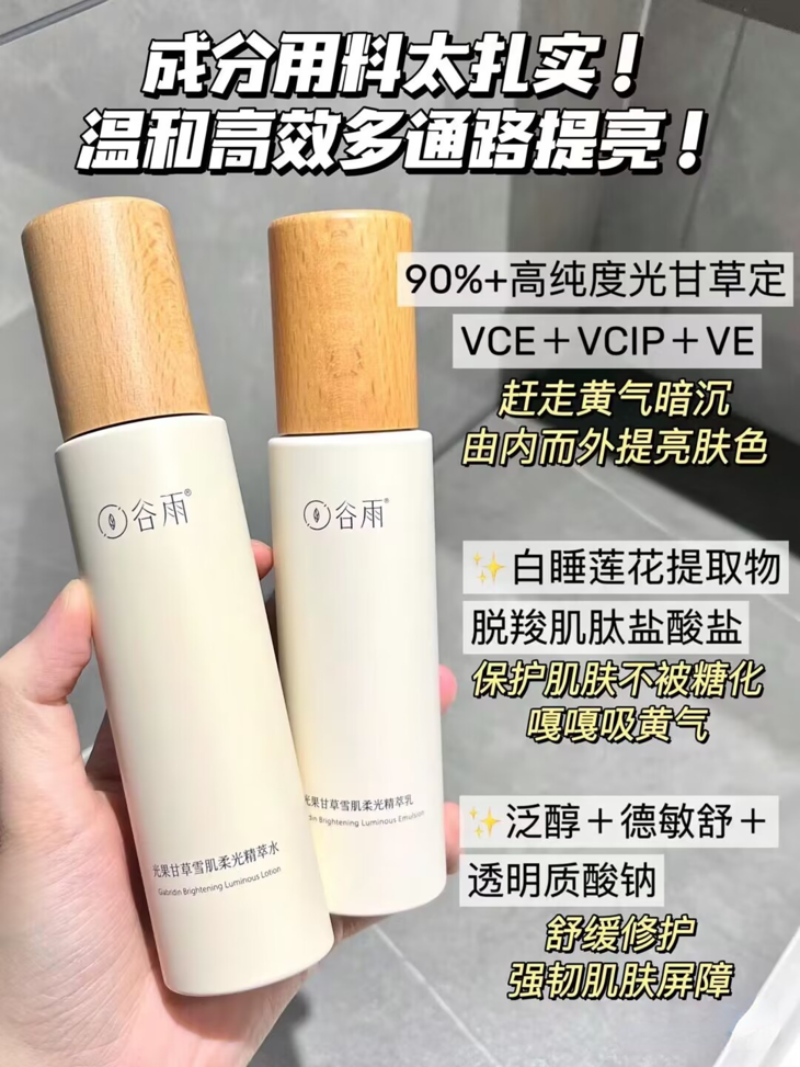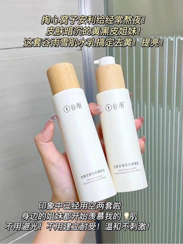 谷雨光果甘草雪肌水乳套装 去黄提亮补水保湿干油皮爽肤水护肤套装