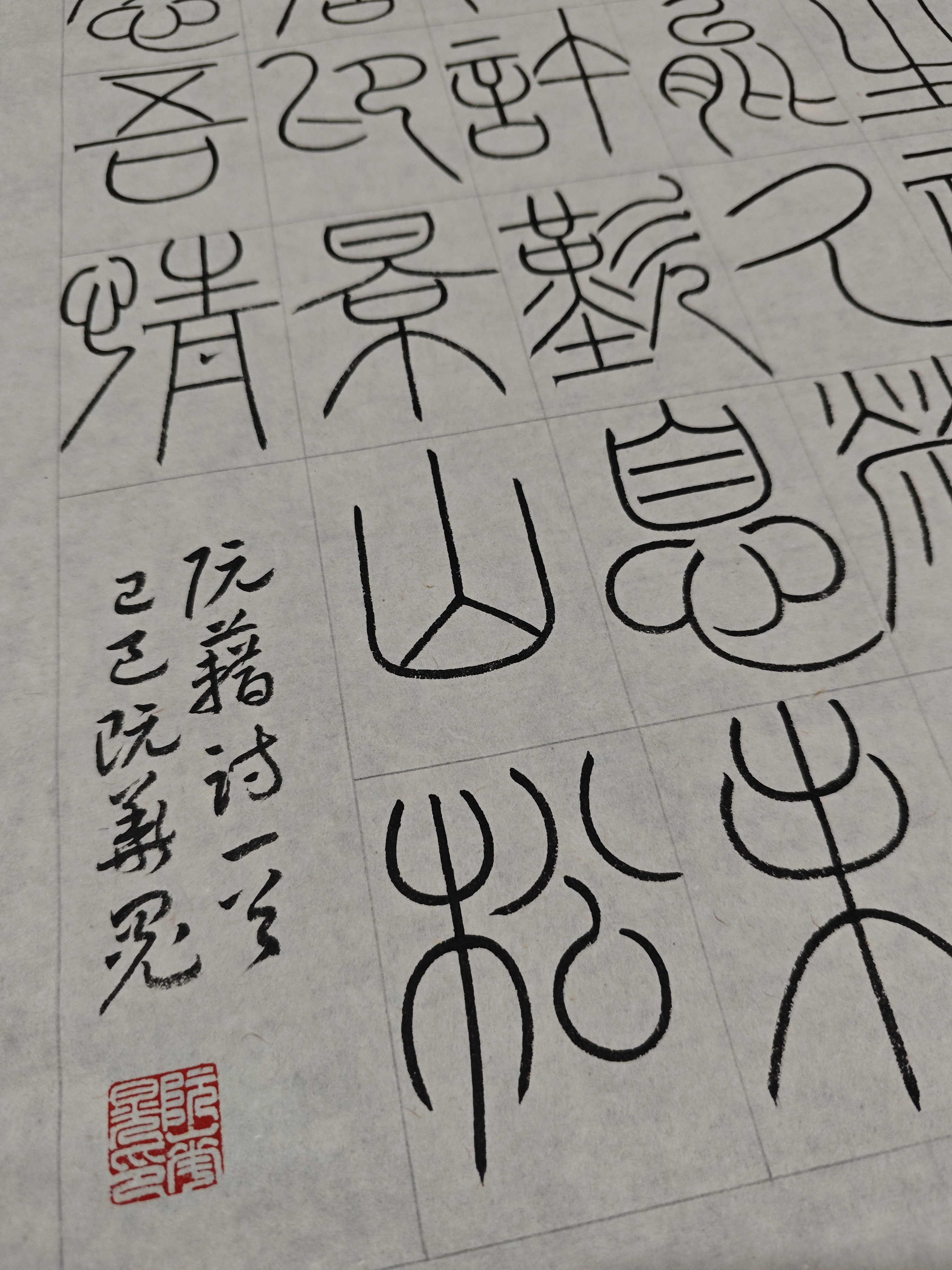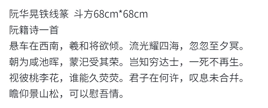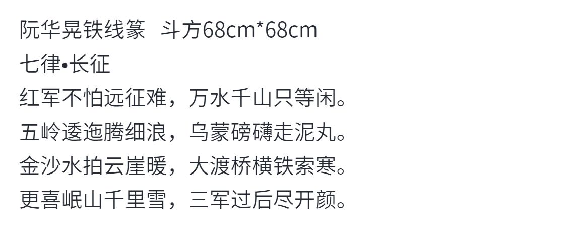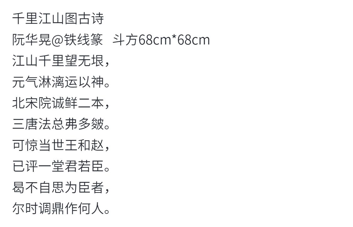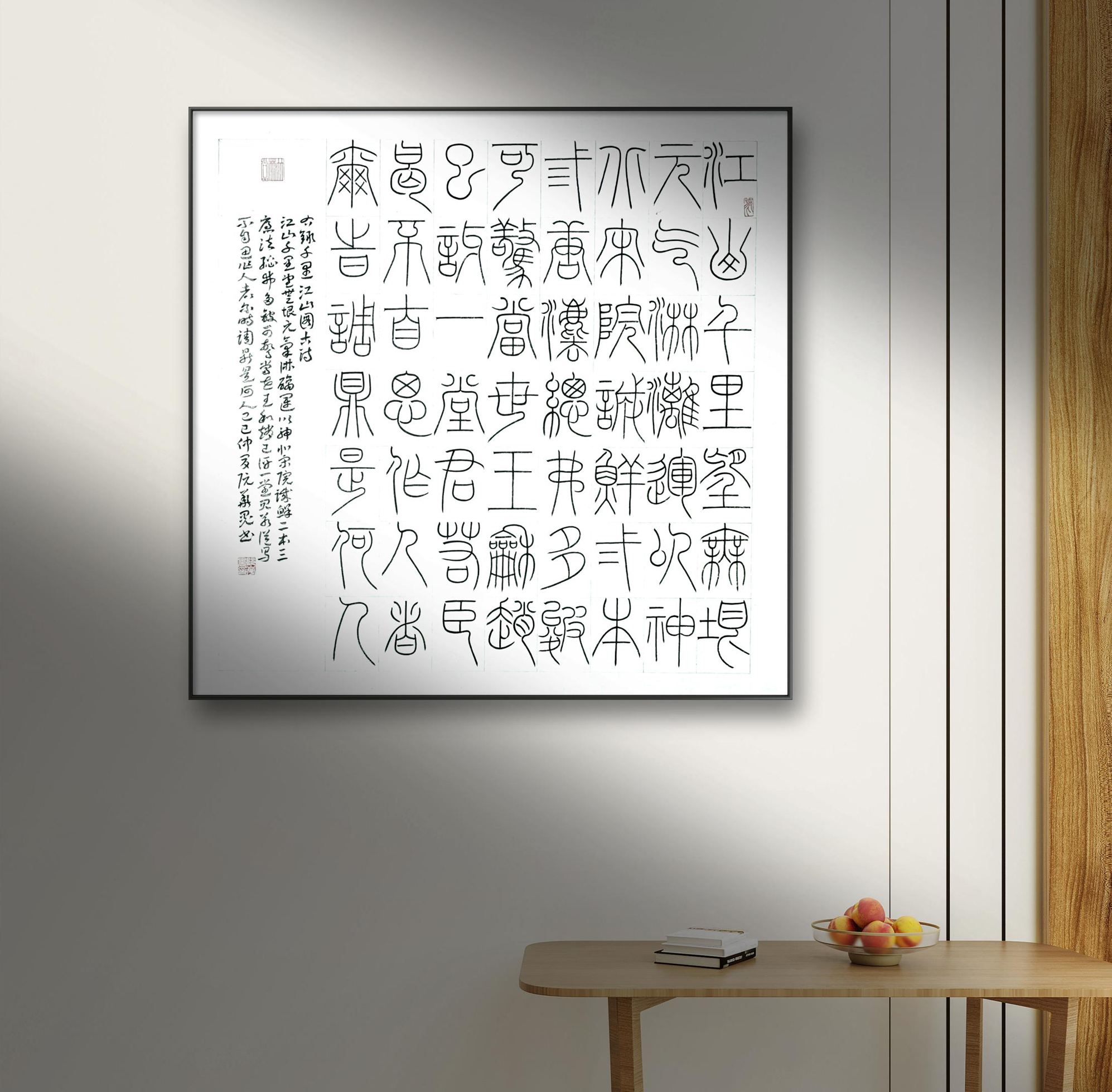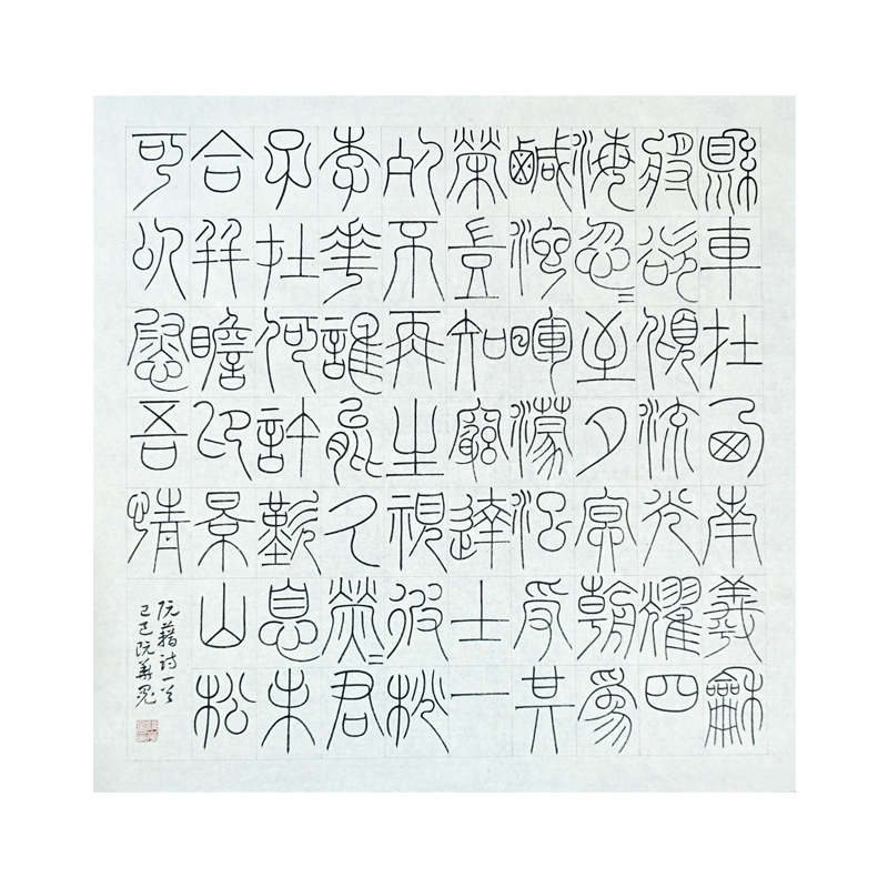 阮籍诗/千里江山图古诗/七律长征诗 阮华晃@铁线篆 斗方书法作品 68cm*68cm(无框未装裱)