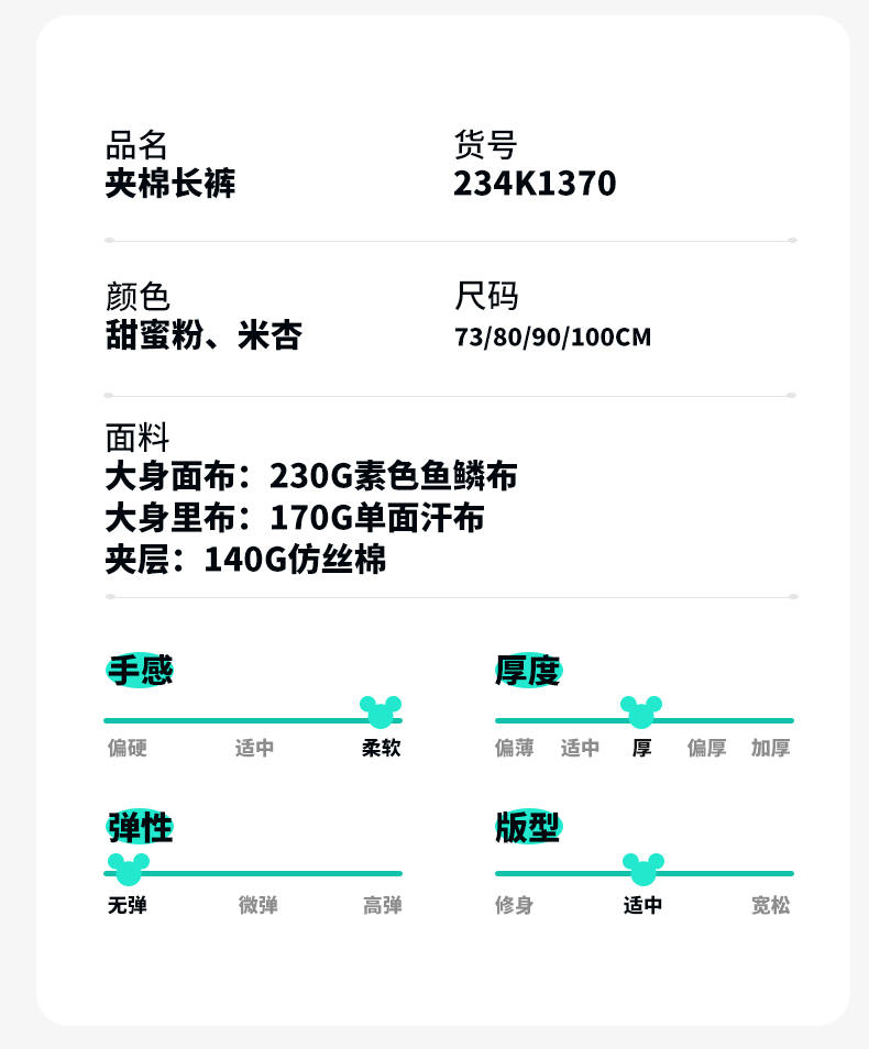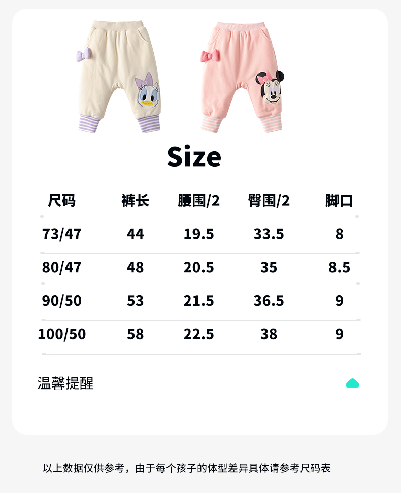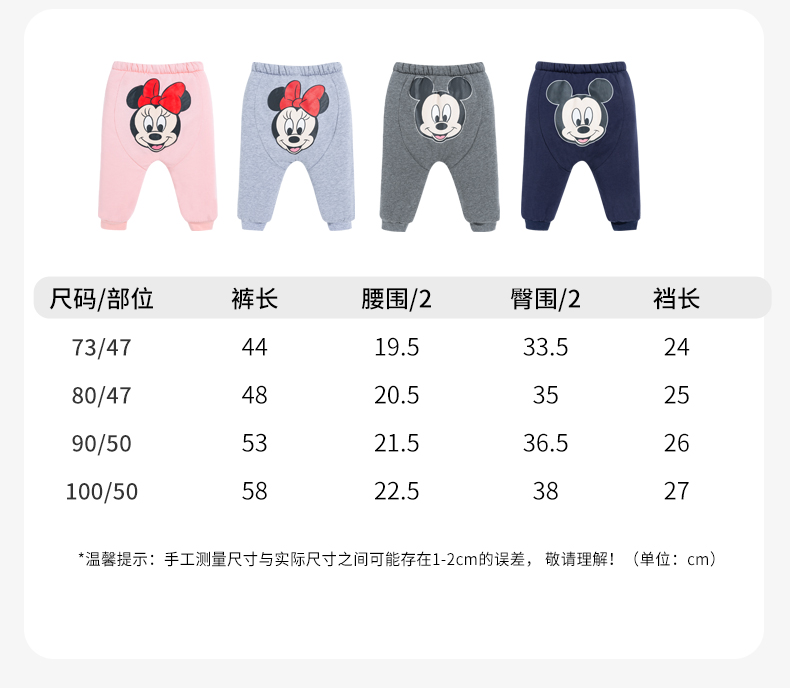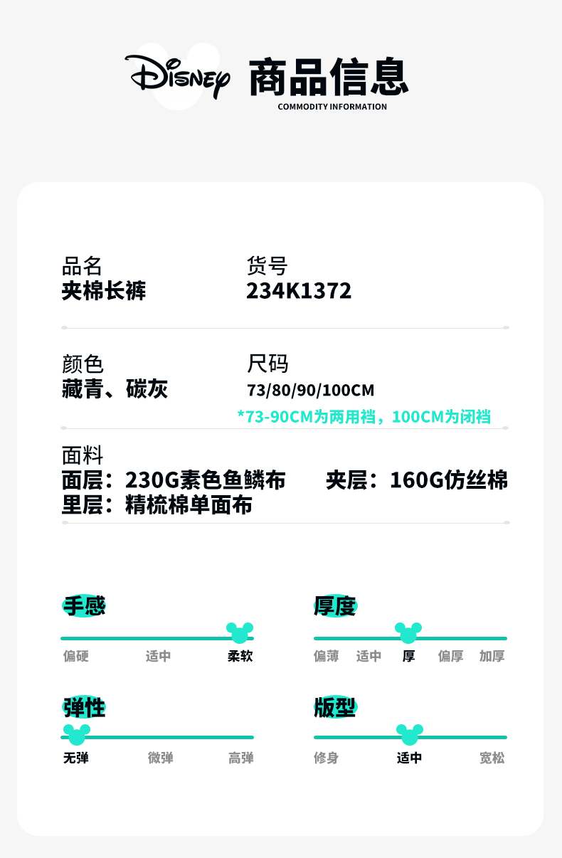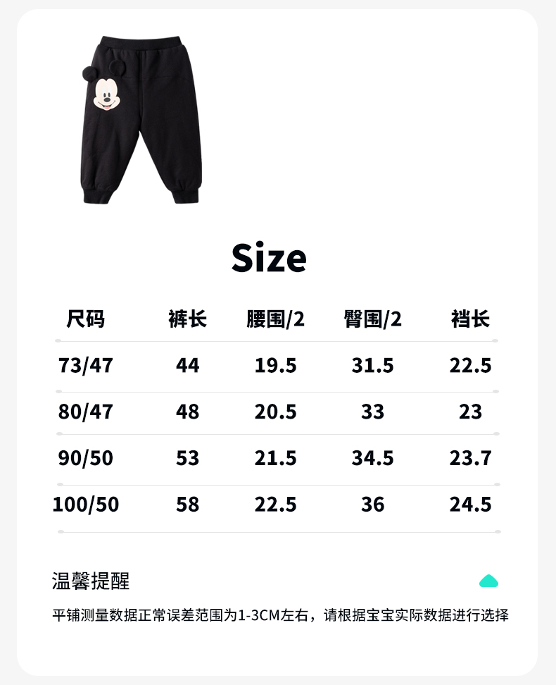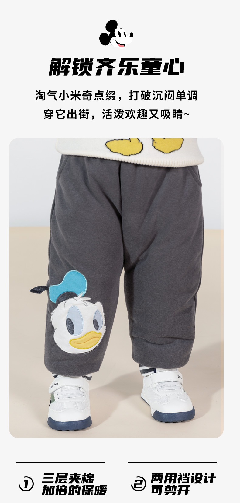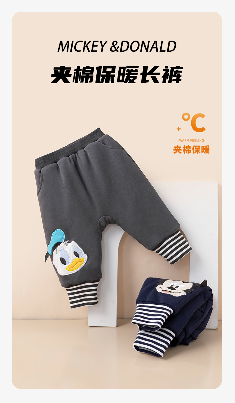 迪士尼童装秋冬季小童夹棉保暖长裤米奇唐老鸭休闲束脚裤234K1372