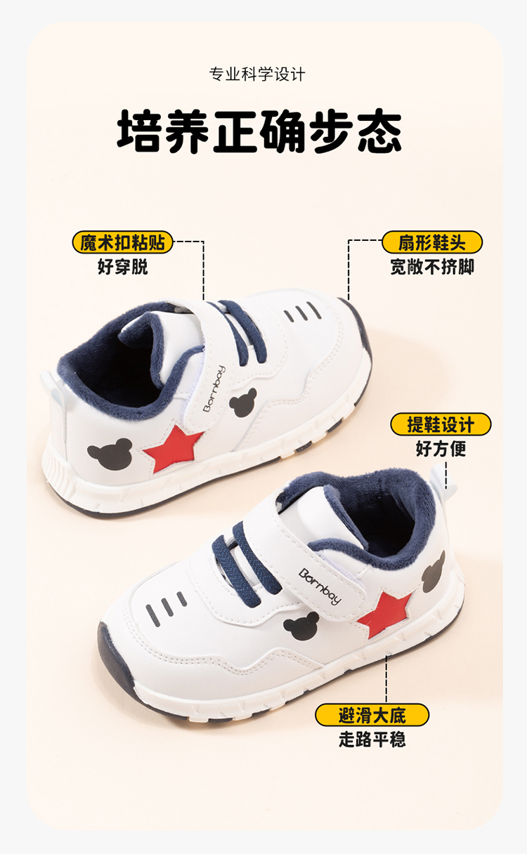 贝贝怡童鞋秋冬款儿童加绒舒适宝宝鞋婴儿学步鞋休闲稳步鞋234X508