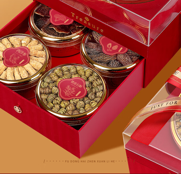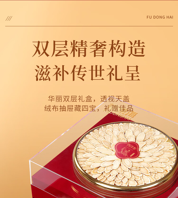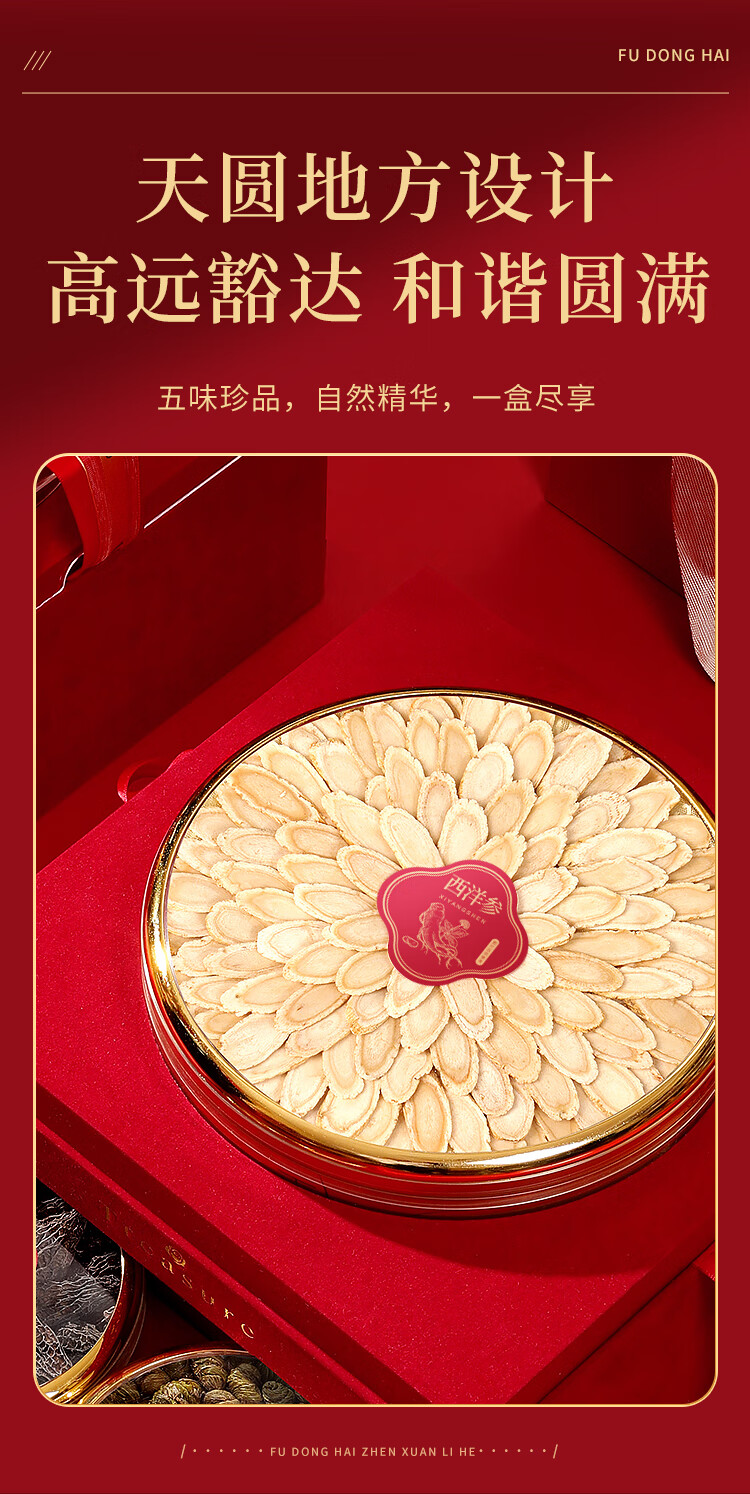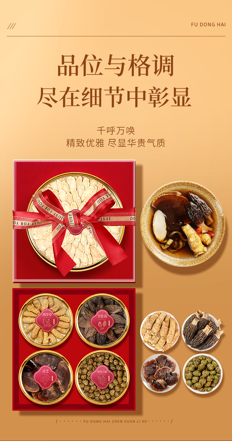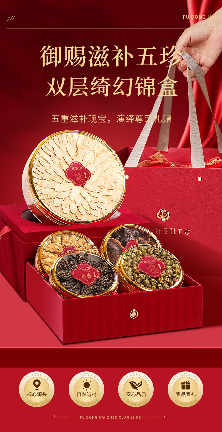 福东海 西洋参片羊肚菌石斛灵芝五拼260克 礼盒过年货礼盒补品送长辈高端实用