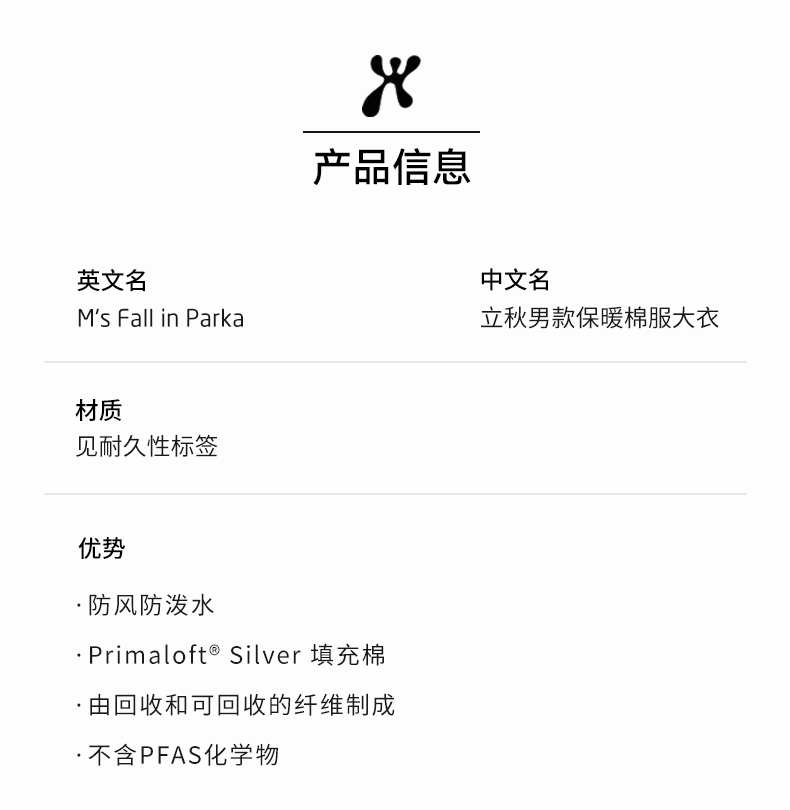 HOUDINI胡丁尼 Fall in Parka 立秋 男款保暖棉服带帽大衣外套248514