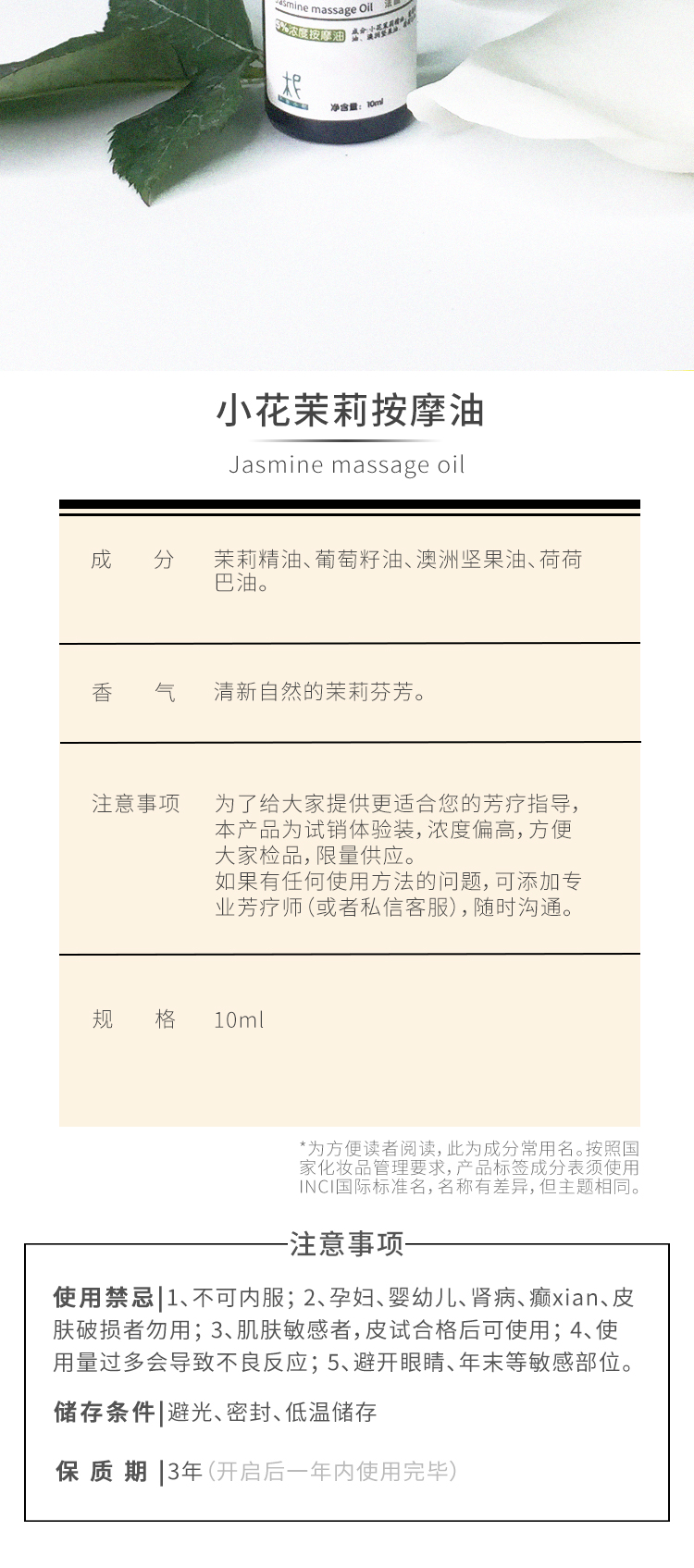 小花茉莉5%浓度按摩油 鉴定品质 体验装 偏高浓度