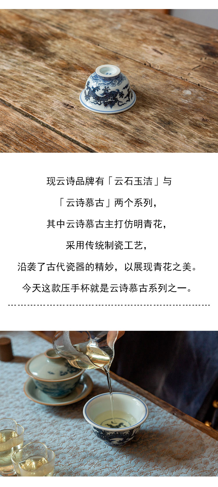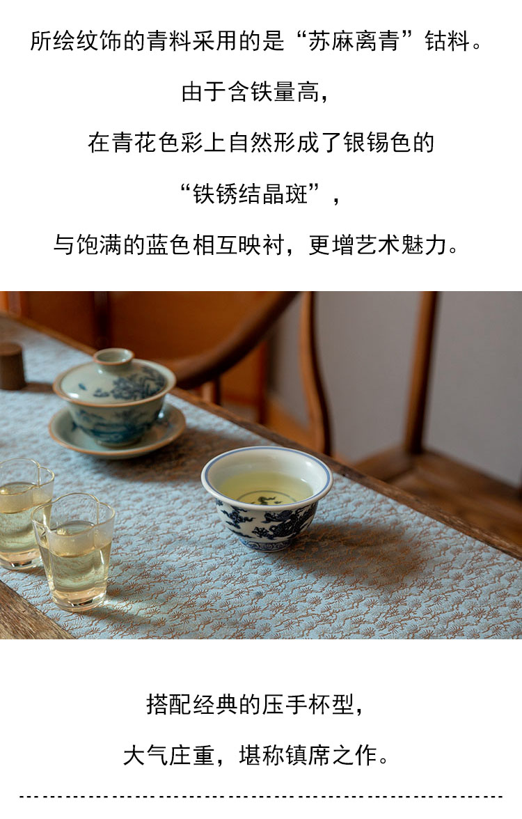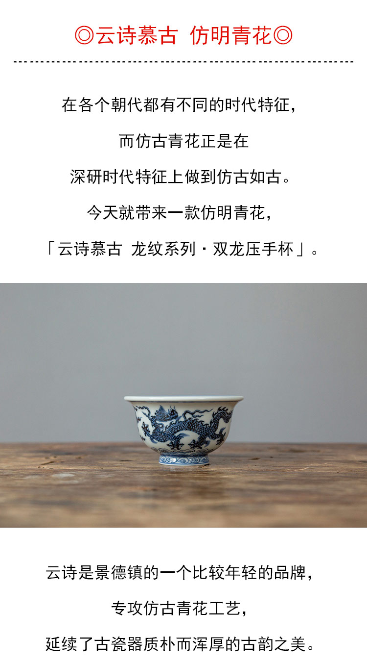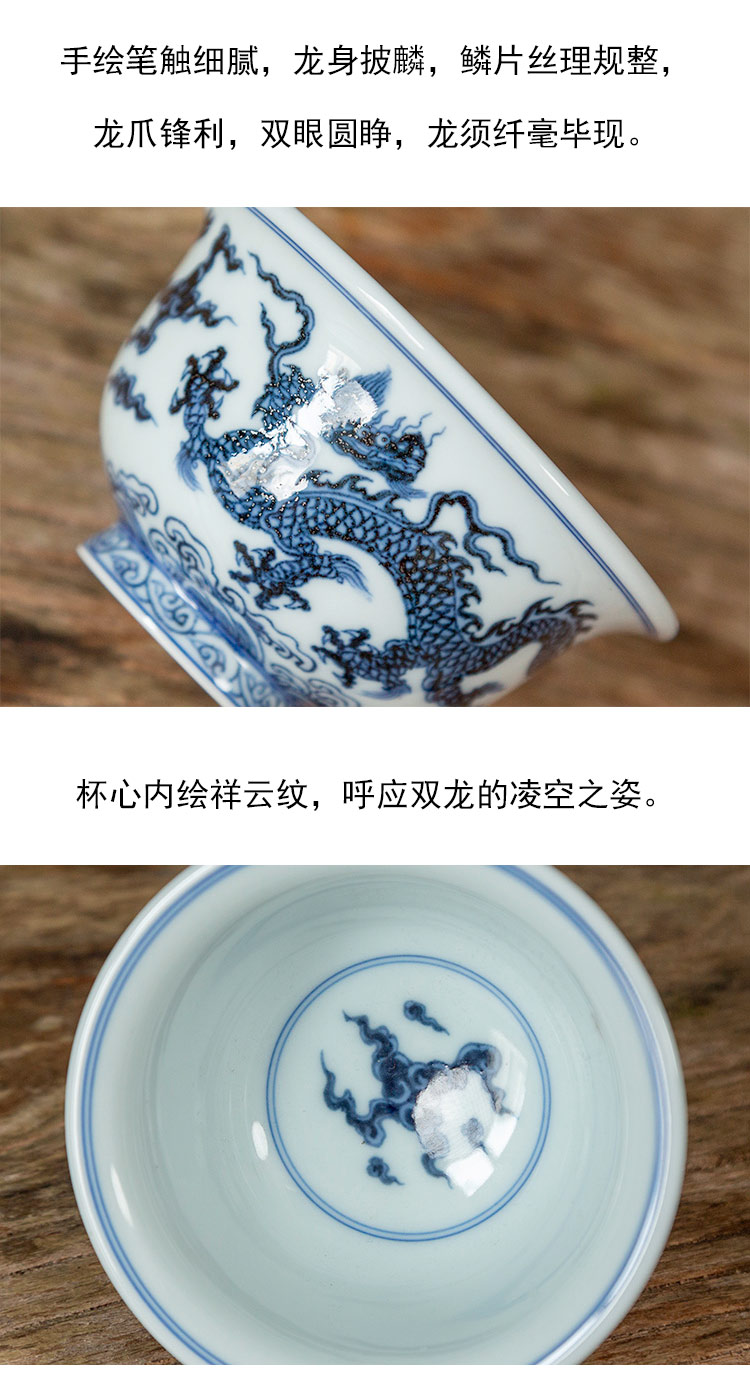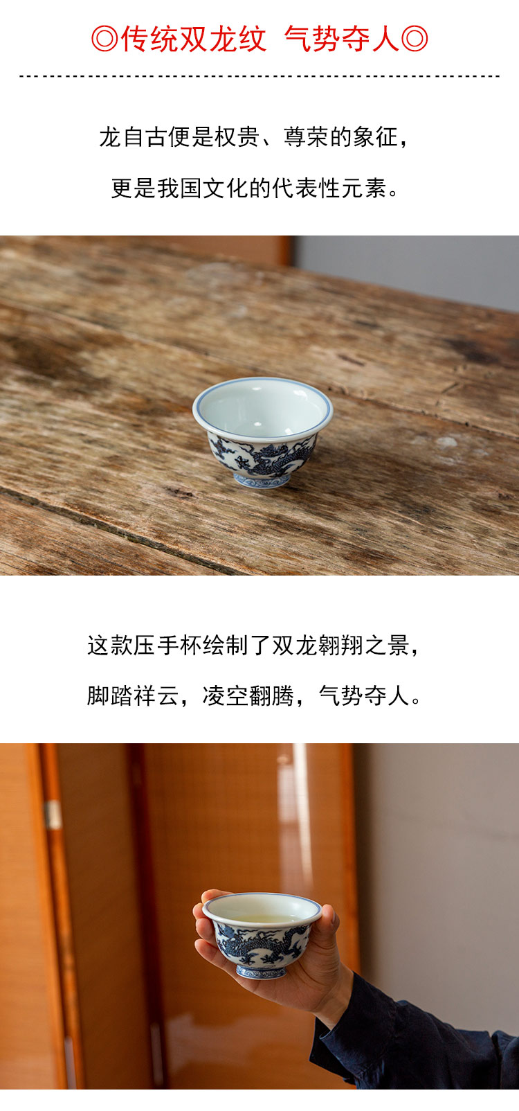 茶香记 景德镇云诗慕古青花龙纹系列双龙压手杯135ml手绘茶杯品杯