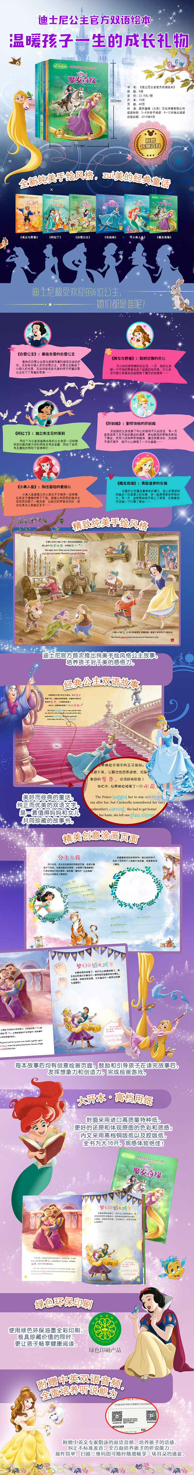 迪士尼公主官方双语绘本合辑(套装共六册)