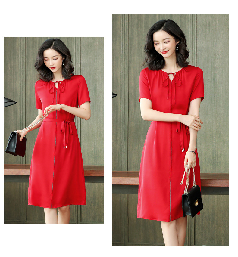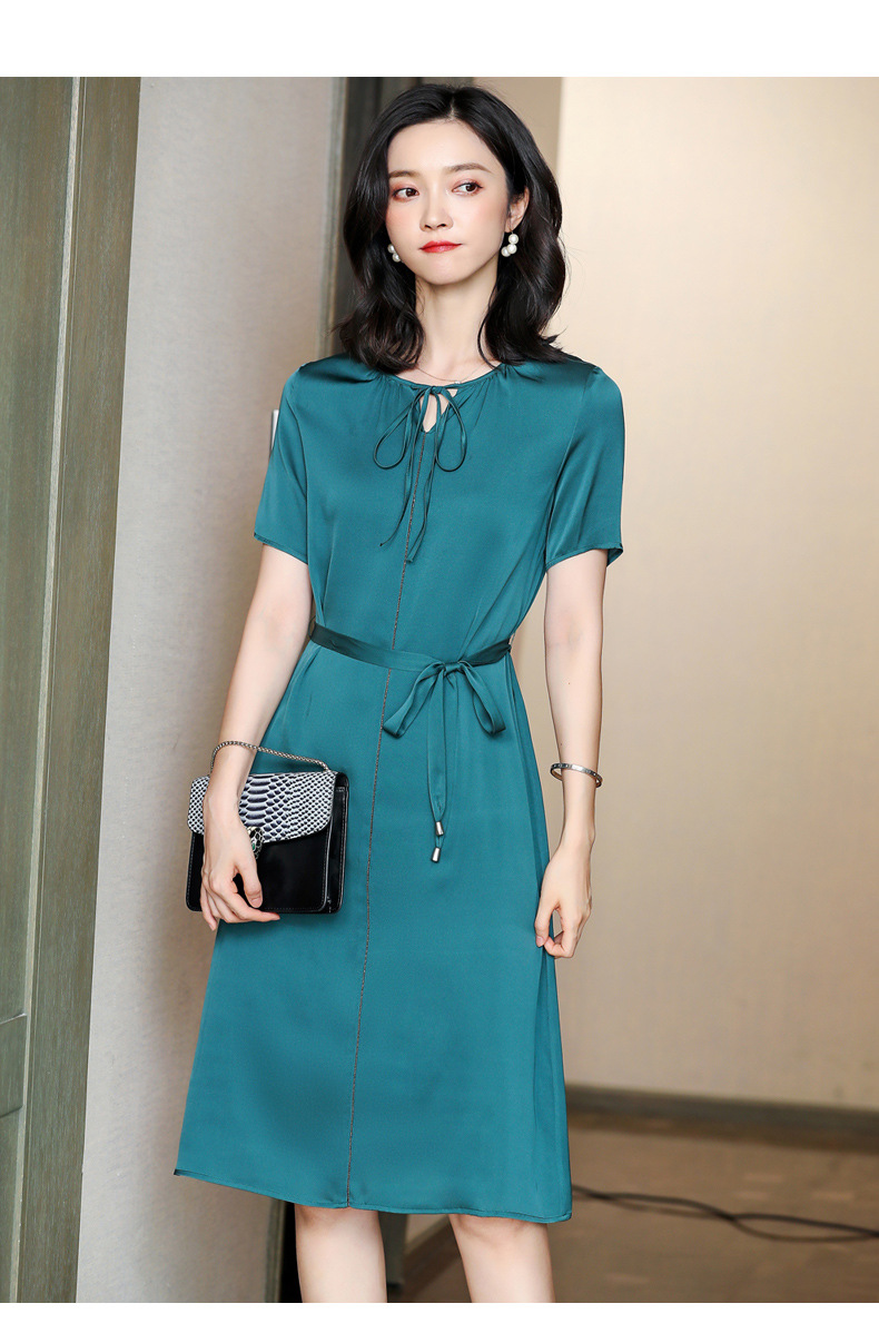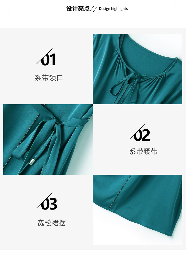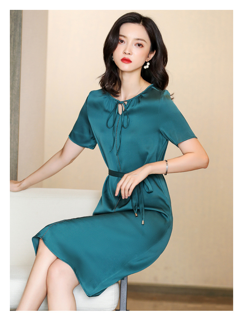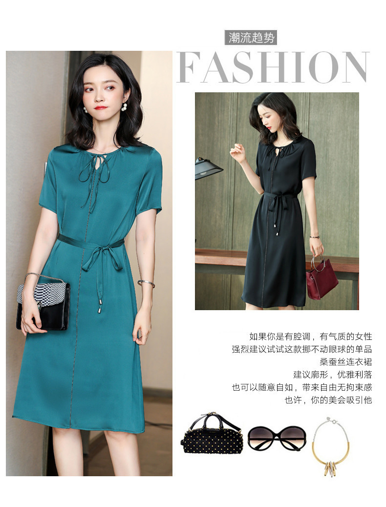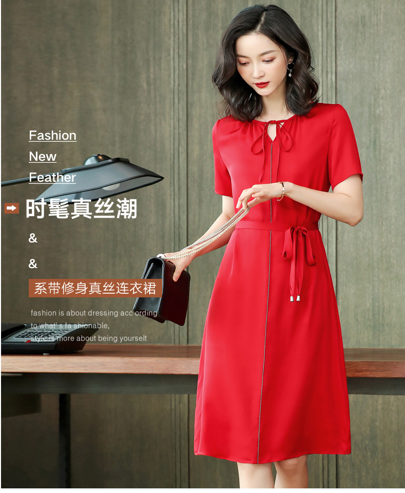上海旗袍厂ASE-2255系带气质真丝连衣裙