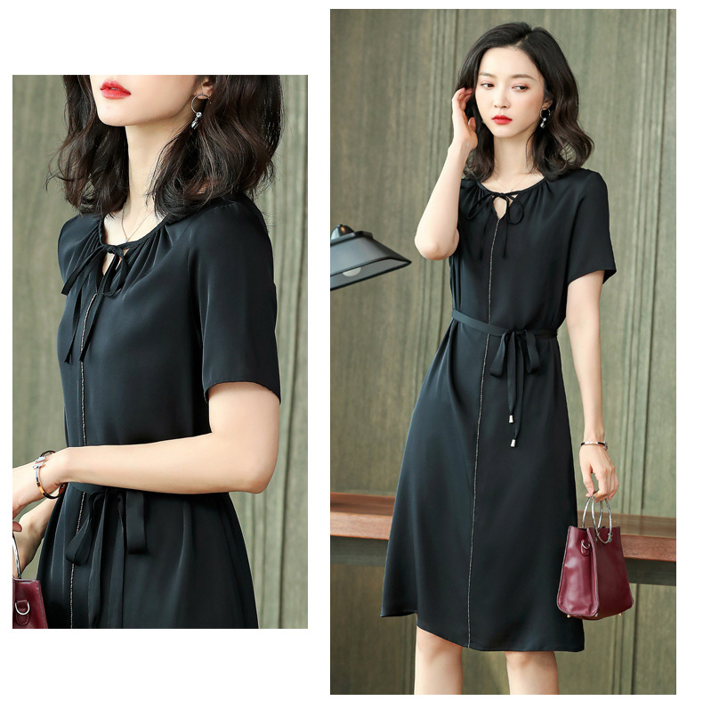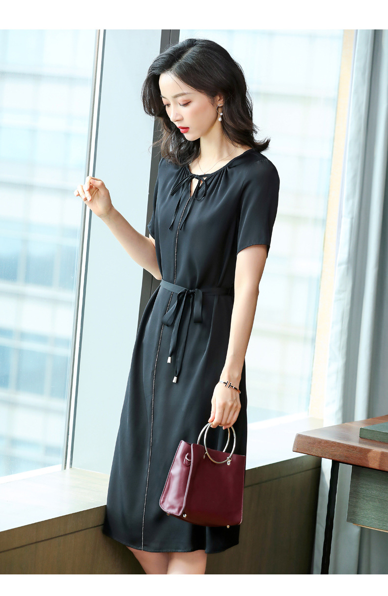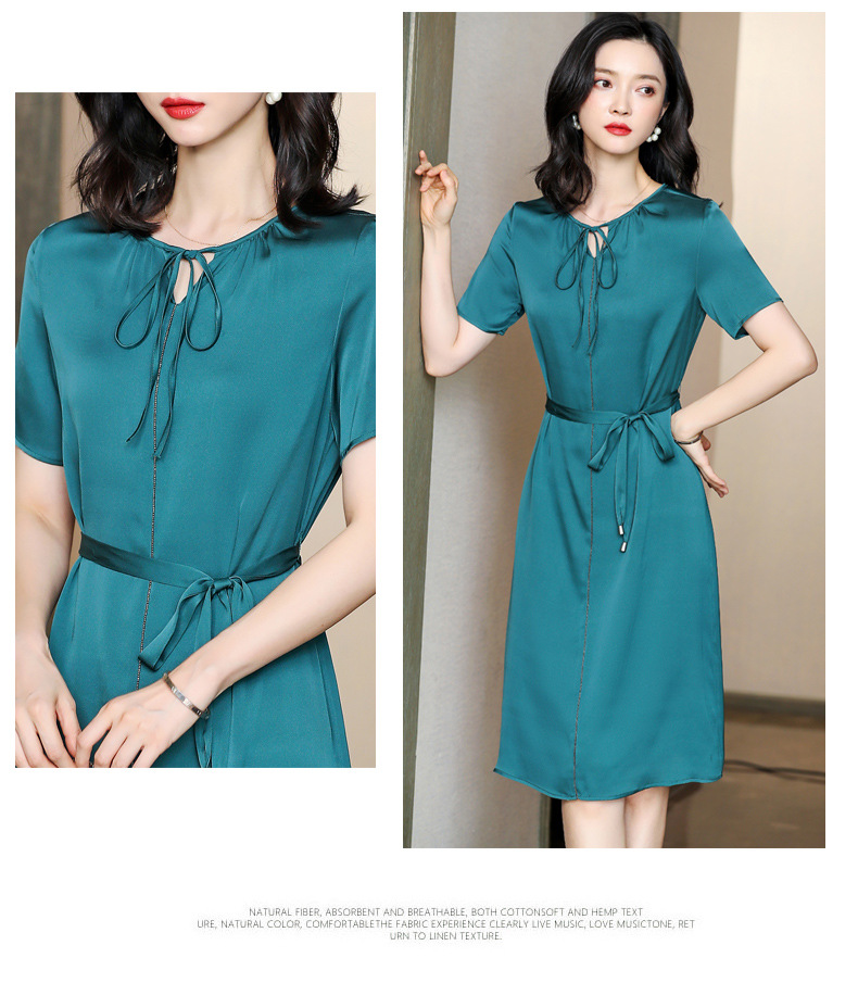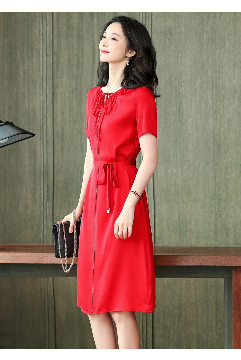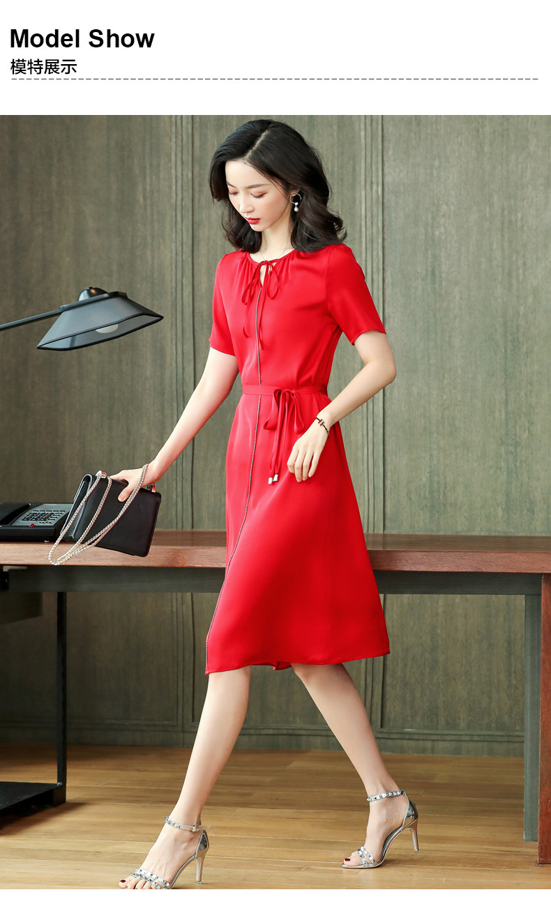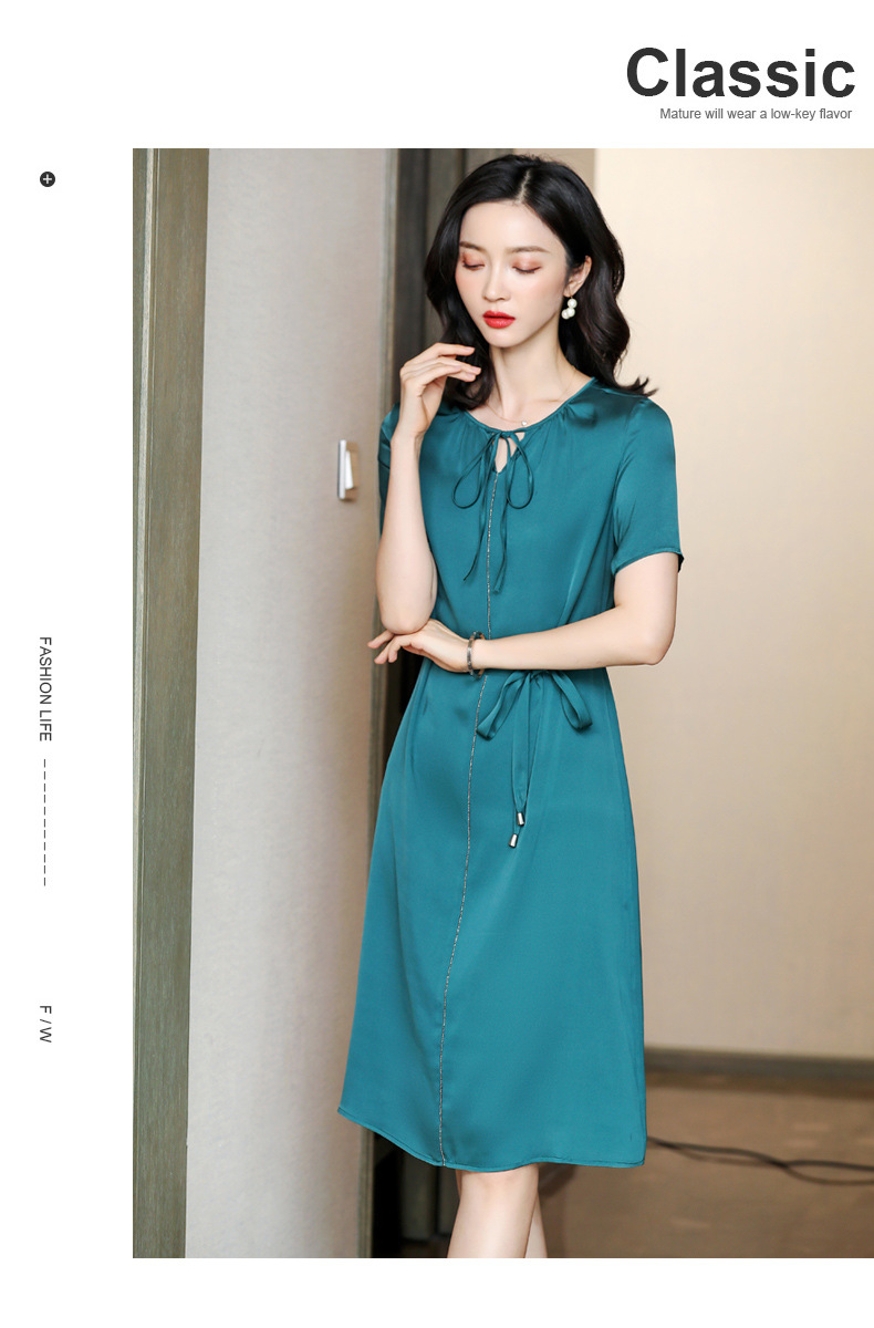 上海旗袍厂ASE-2255系带气质真丝连衣裙