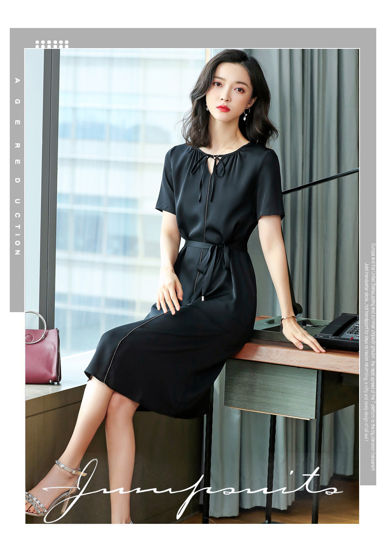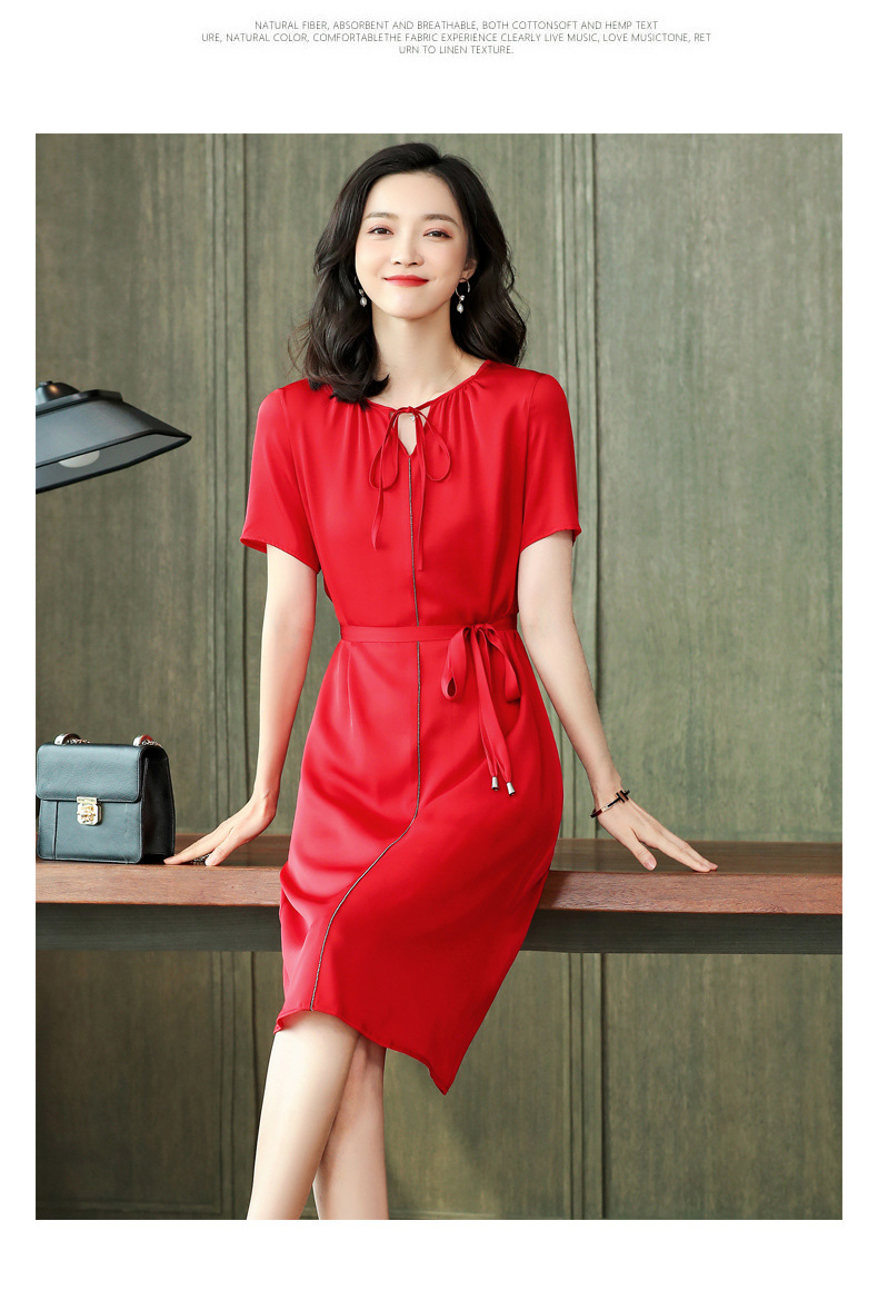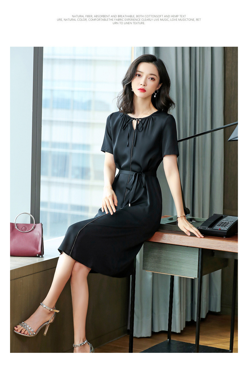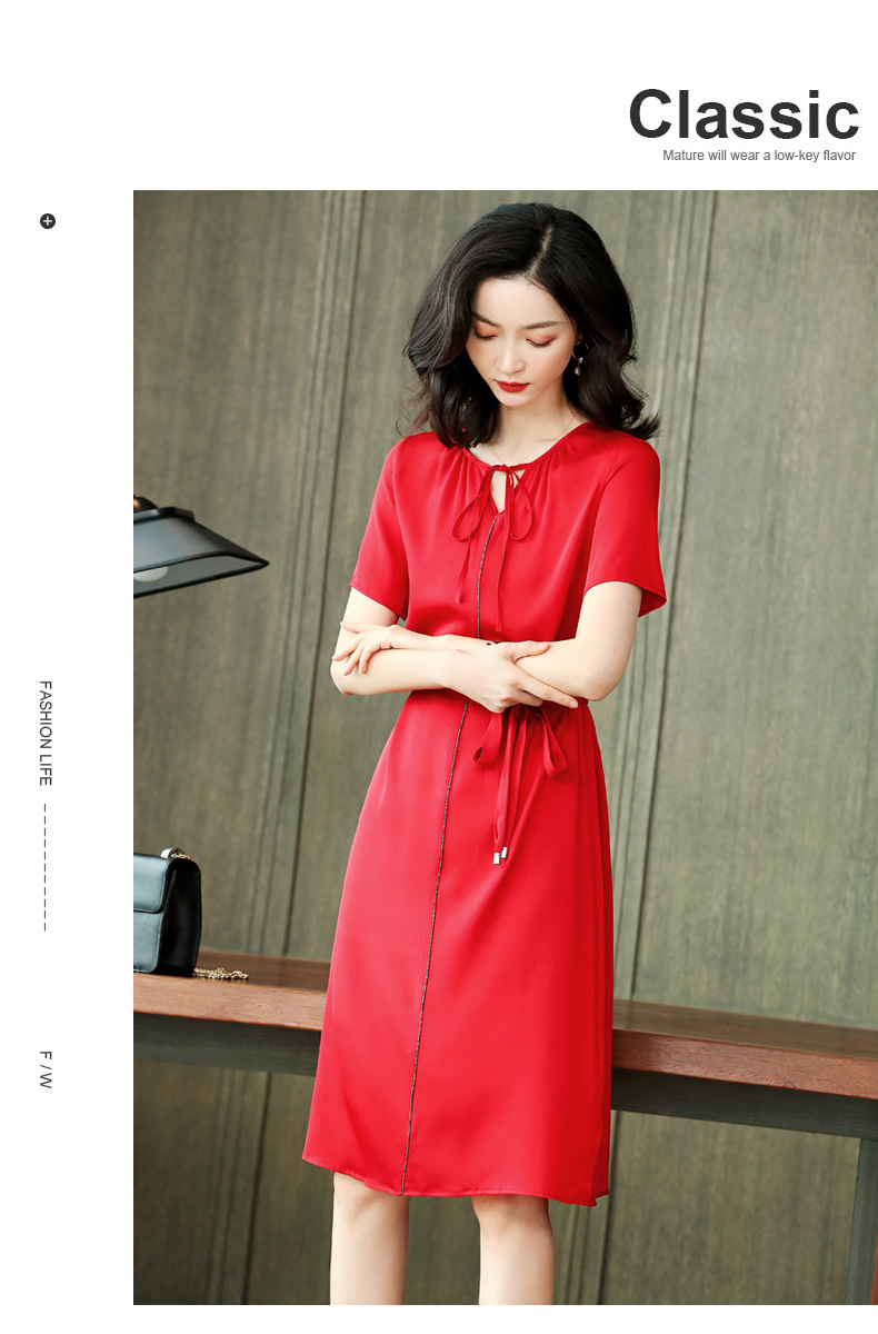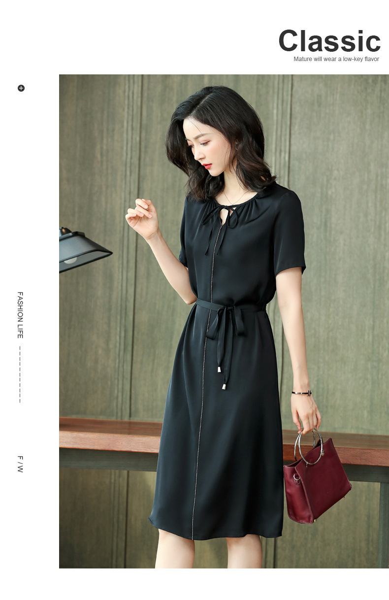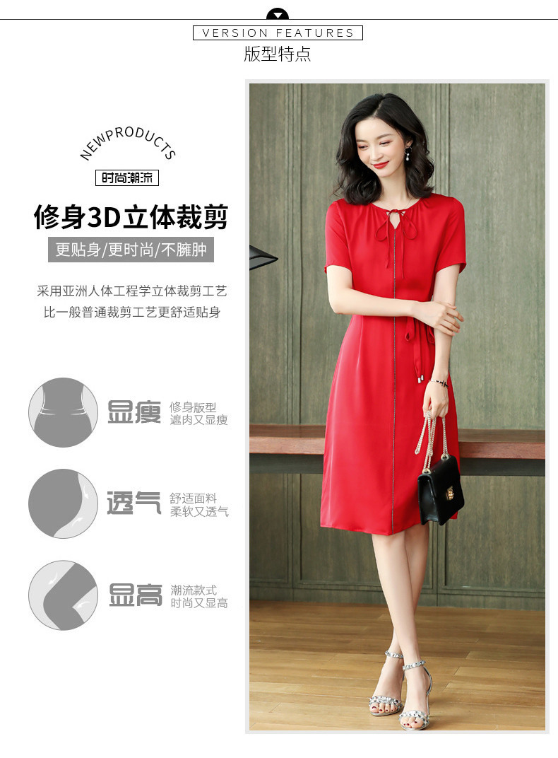 上海旗袍厂ASE-2255系带气质真丝连衣裙