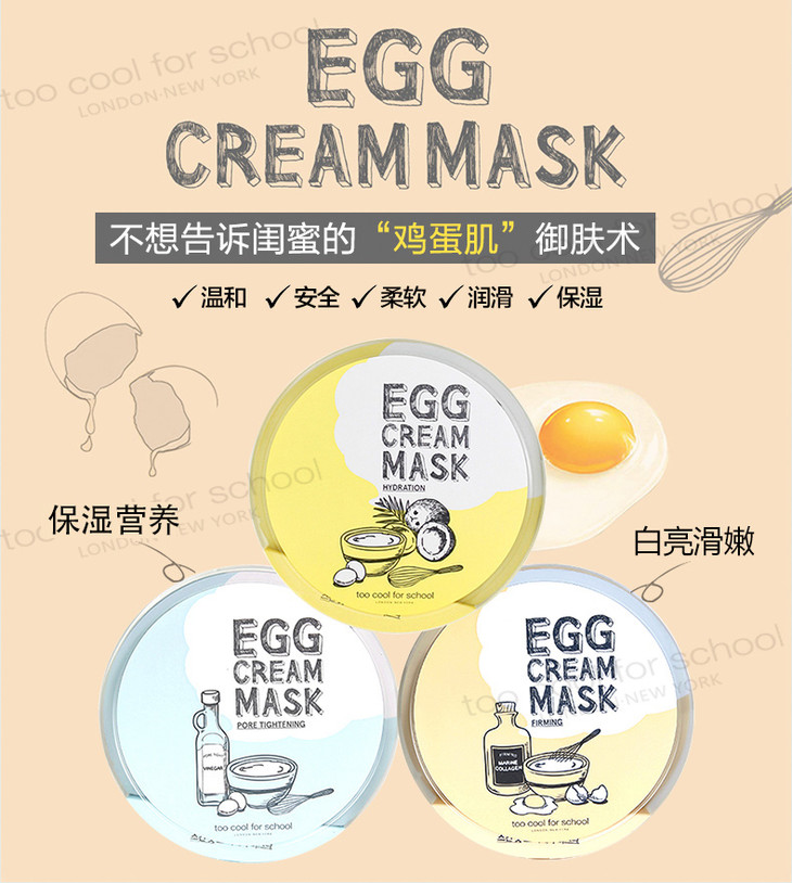 too cool for school涂酷柔滑鸡蛋睡眠面膜#黄色 一片装 🌟超级好用,一款用完真的像剥了壳的鸡蛋🥚一样的面膜,主打补水保湿💦,面膜纸不厚非常细腻,精华液足够多💧,好像每一寸都浸满了精华,面膜尺寸大小也刚好,不会很大完美贴合肌肤哦😘~淡淡的奶香味🥛用完感觉皮肤滑嫩到不行😍😍😍