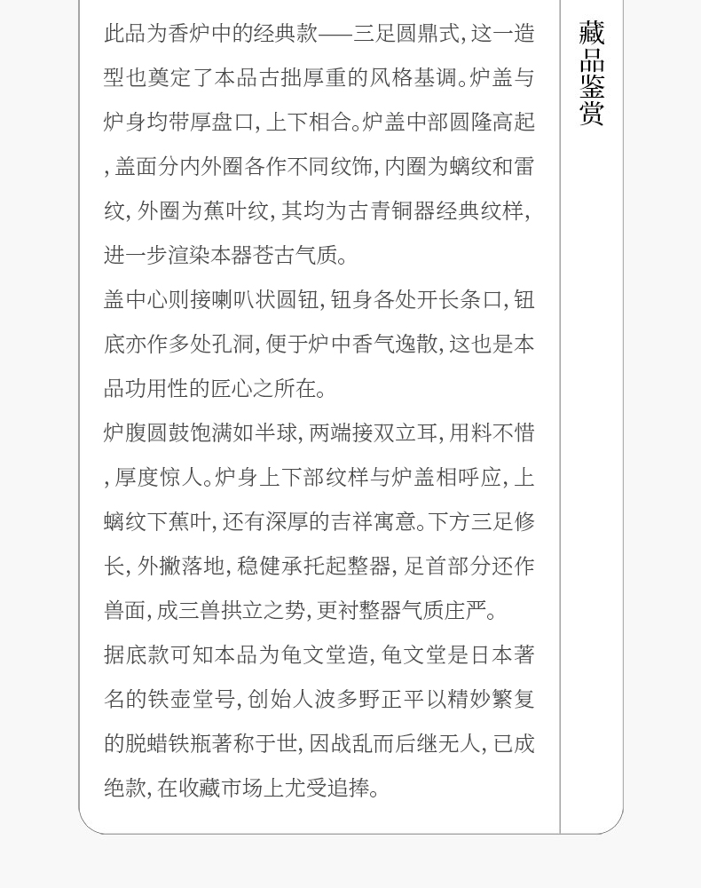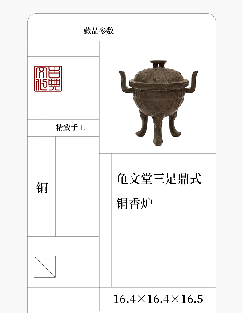 龟文堂三足鼎式铜香炉