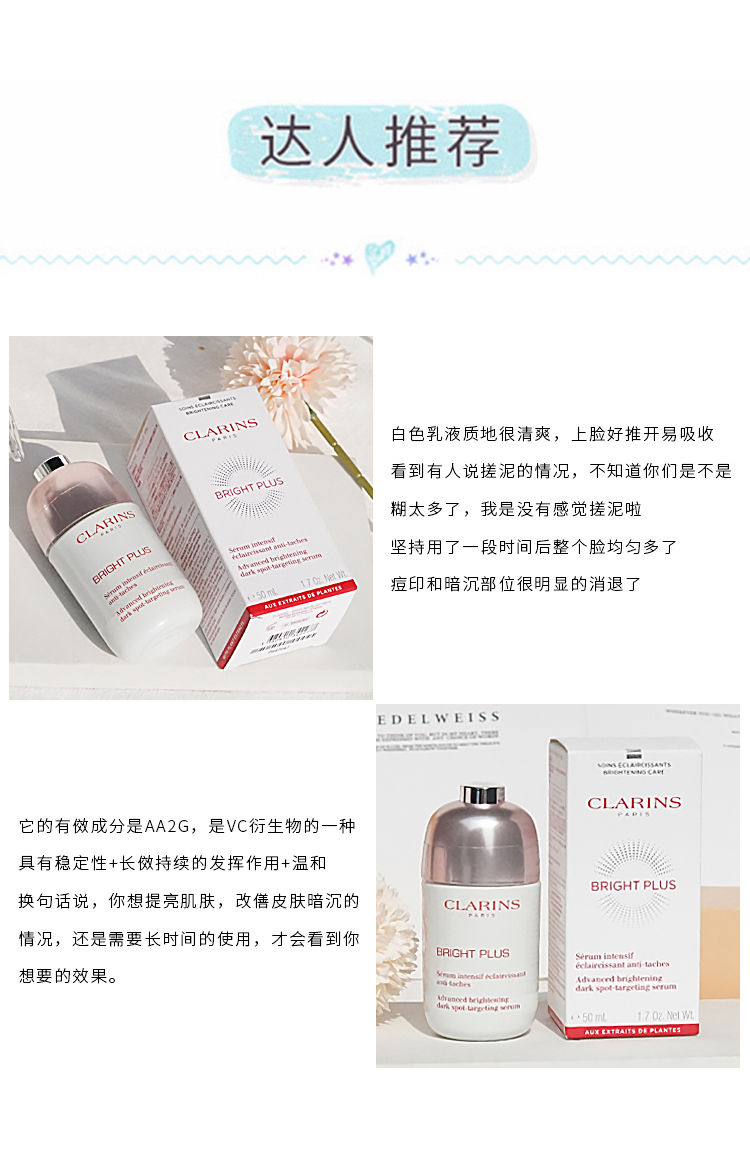 专柜1010 Clarins娇韵诗光芒小瓷瓶清透亮润白淡斑精华乳50ml