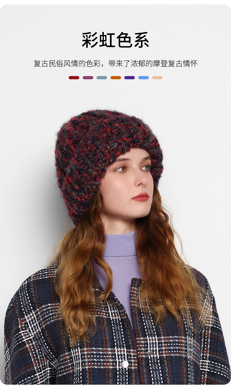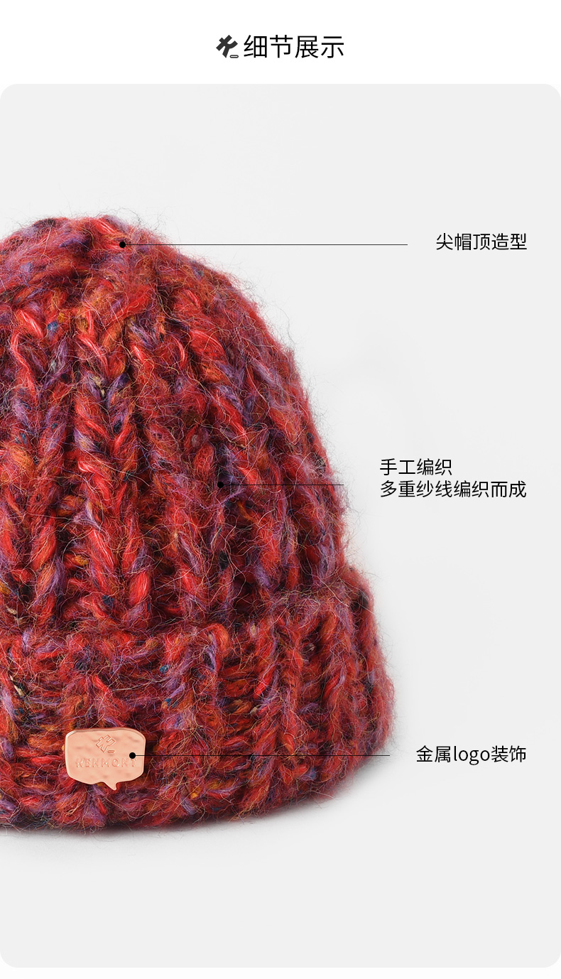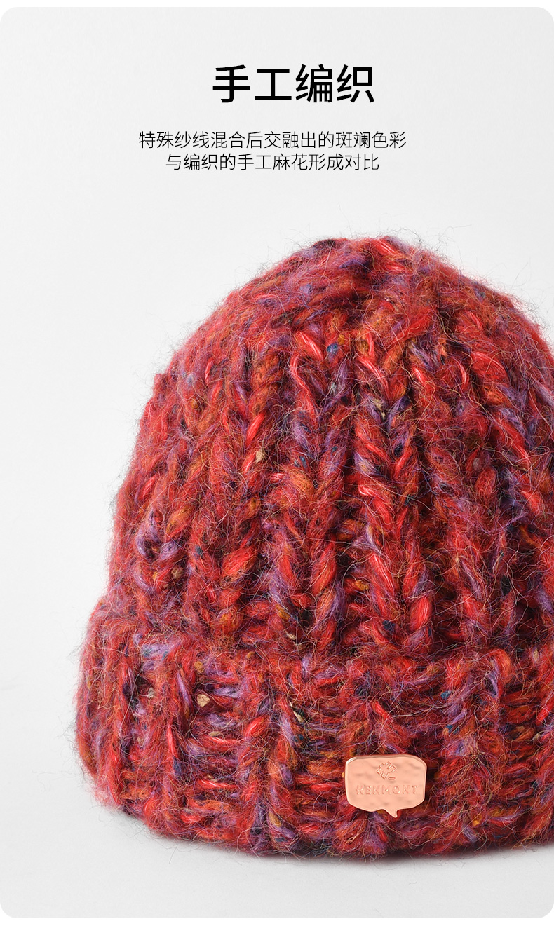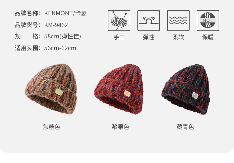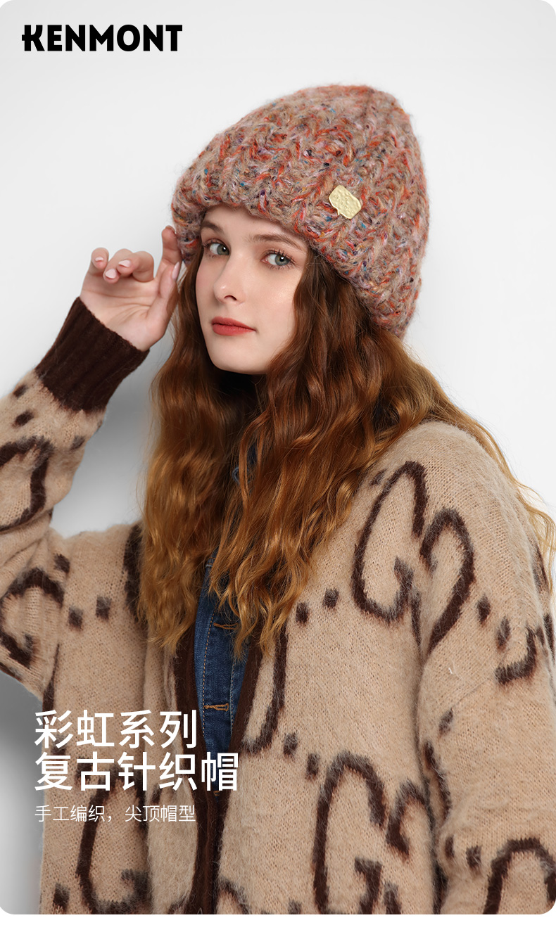 KENMONT卡蒙 彩虹系列KM-9462 复古针织帽 多重纱线手工编织 买就赠价值138的手套 多买多送