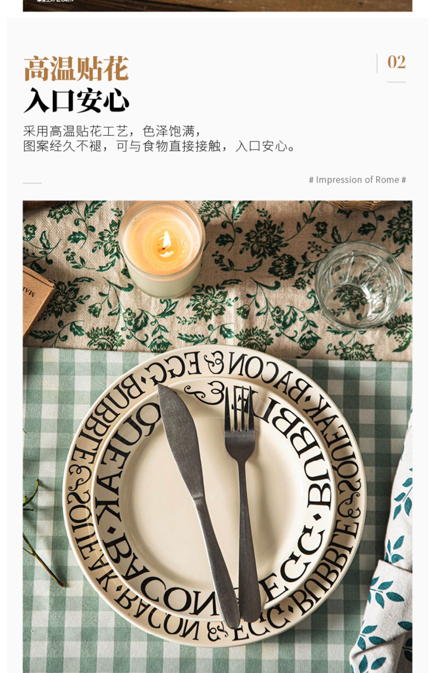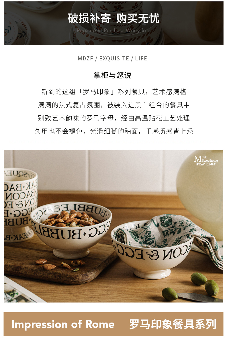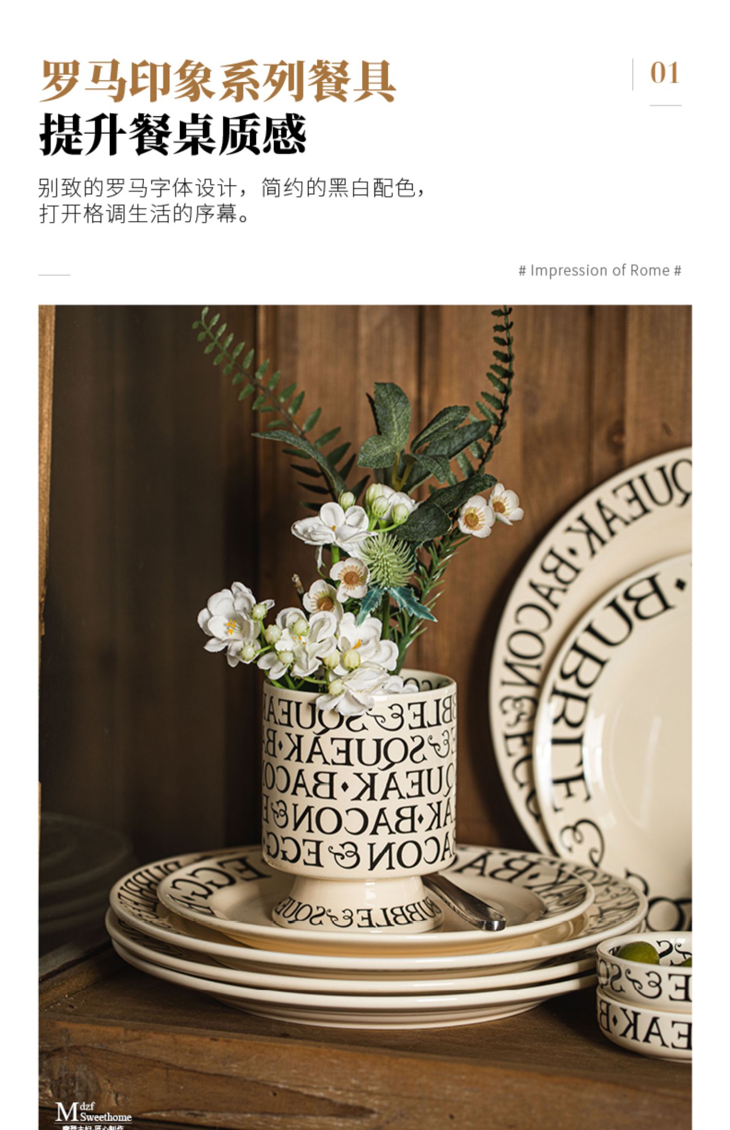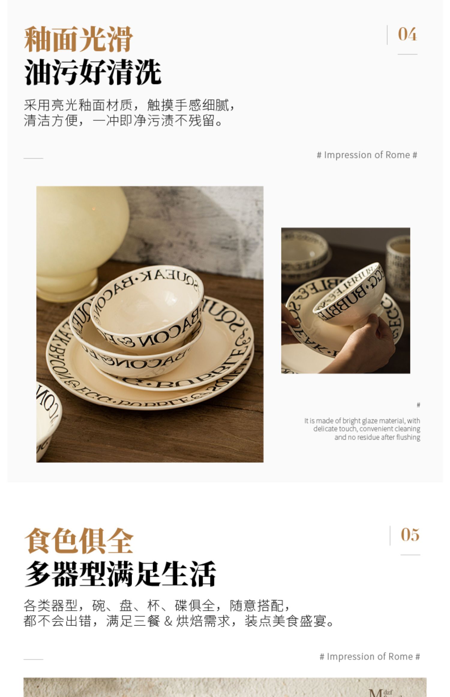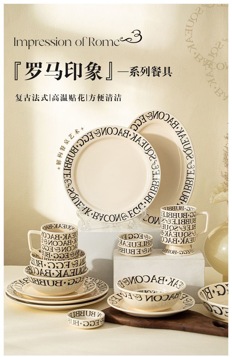 摩登主妇罗马印象碗碟套装家用陶瓷深盘饭碗ins风沙拉碗法式餐具