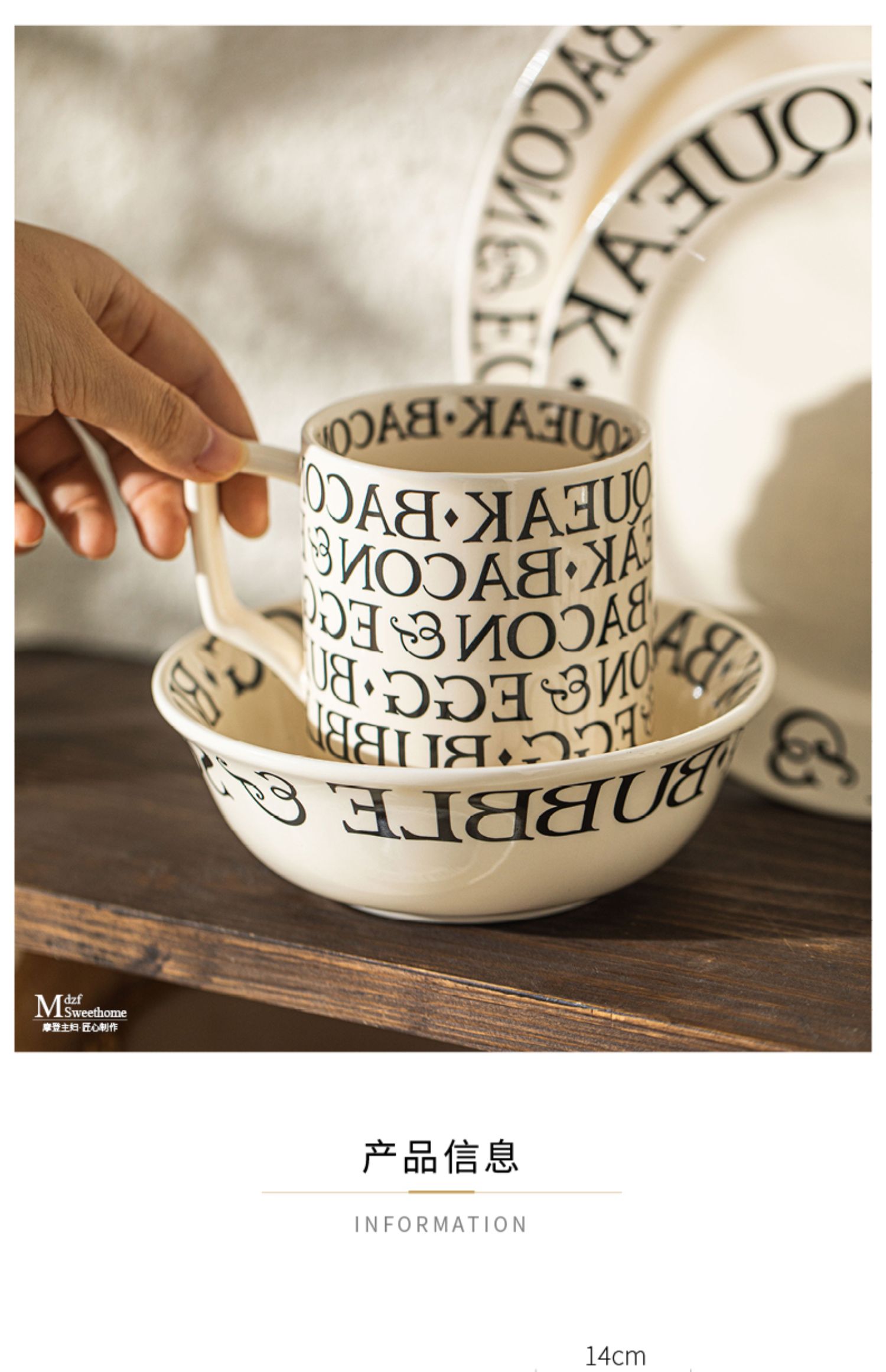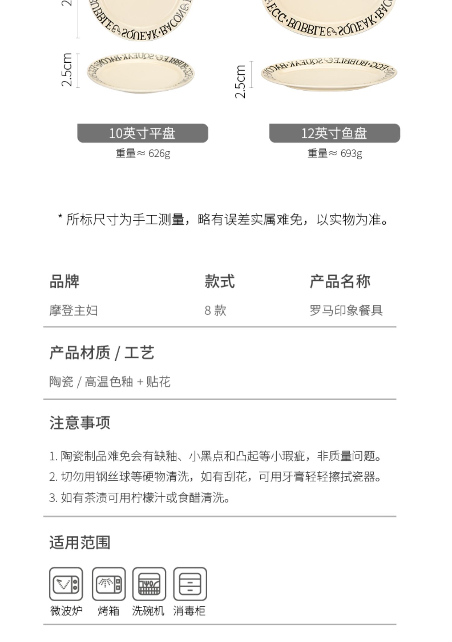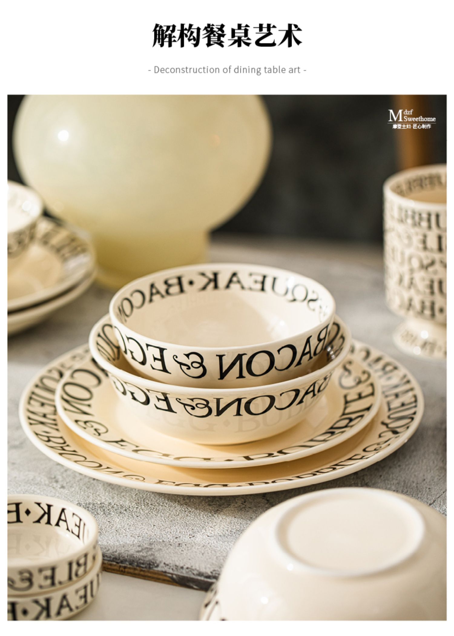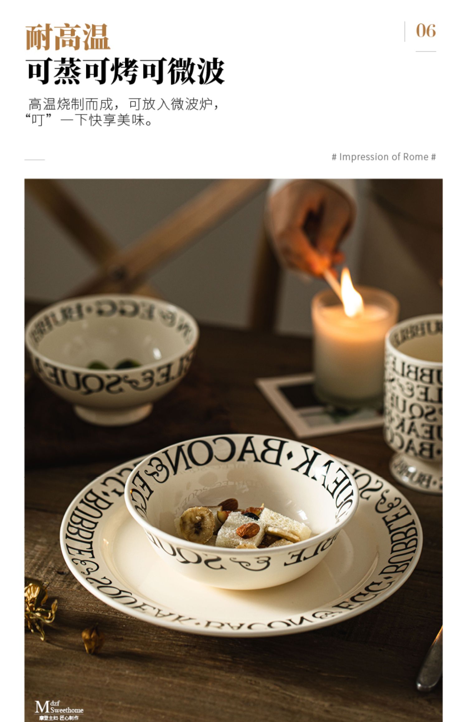 摩登主妇罗马印象碗碟套装家用陶瓷深盘饭碗ins风沙拉碗法式餐具