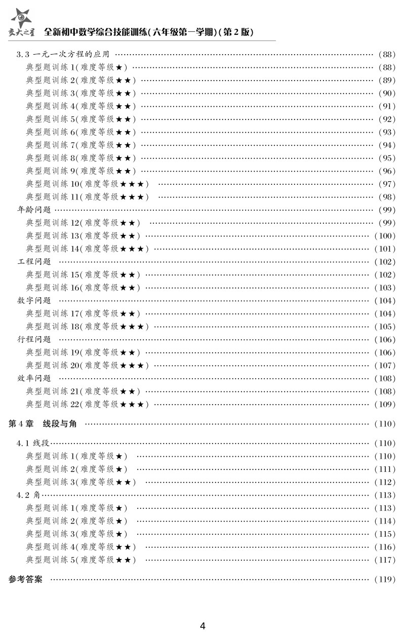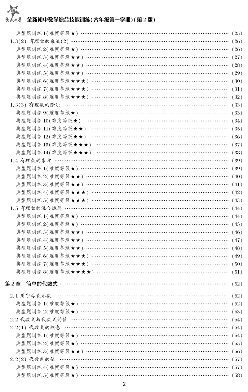 全新初中数学综合技能训练(六年级第一学期)(第2版)