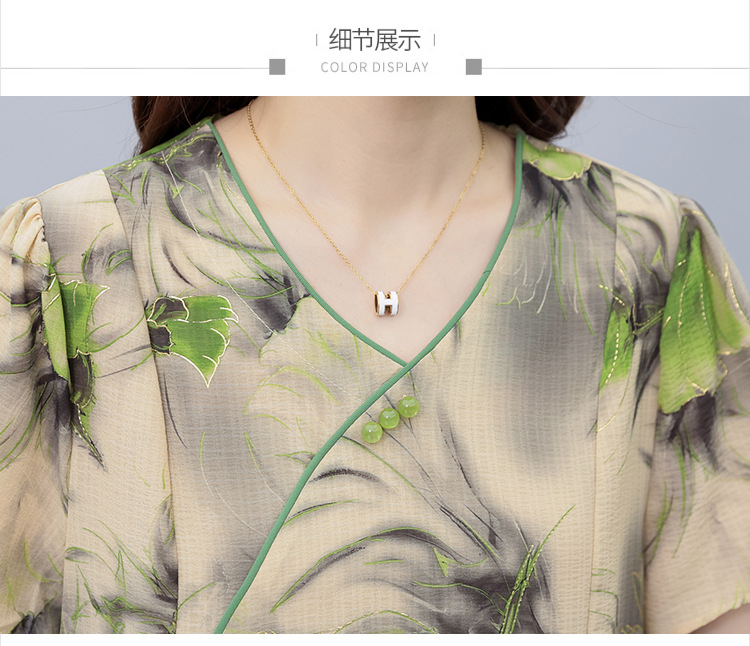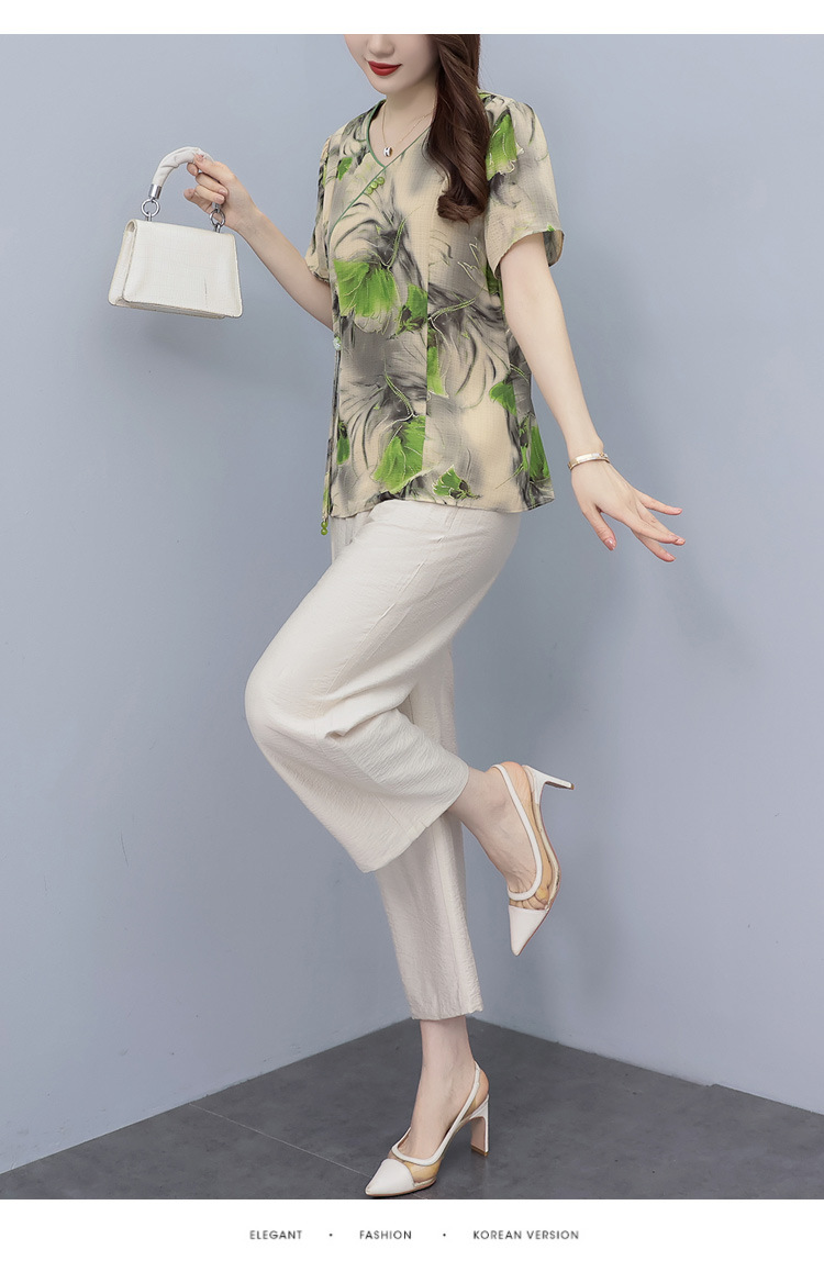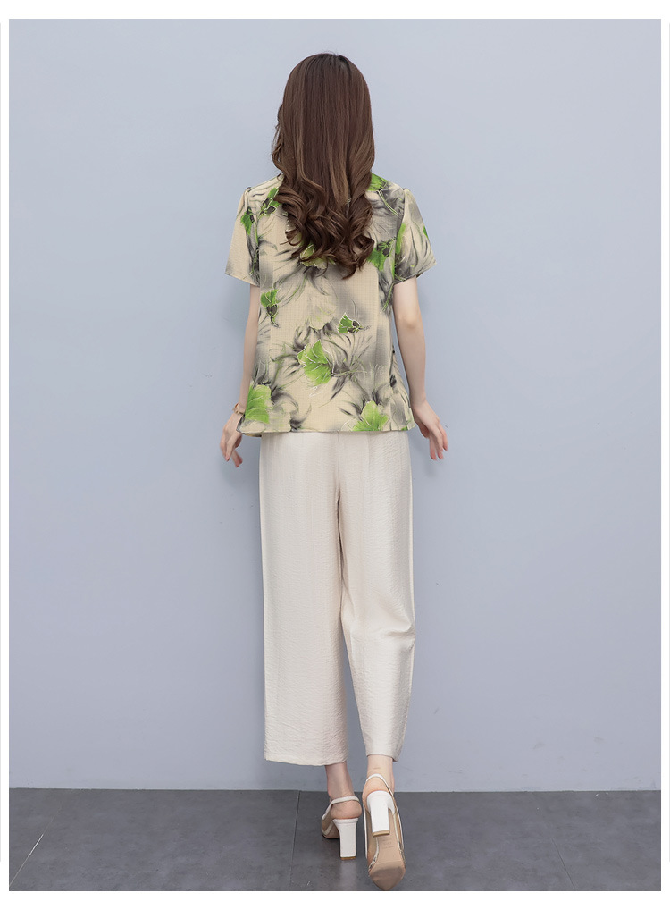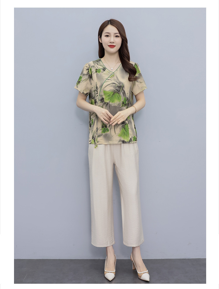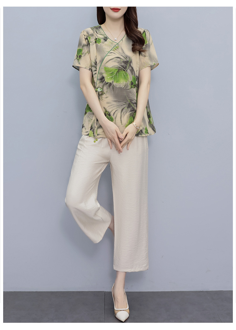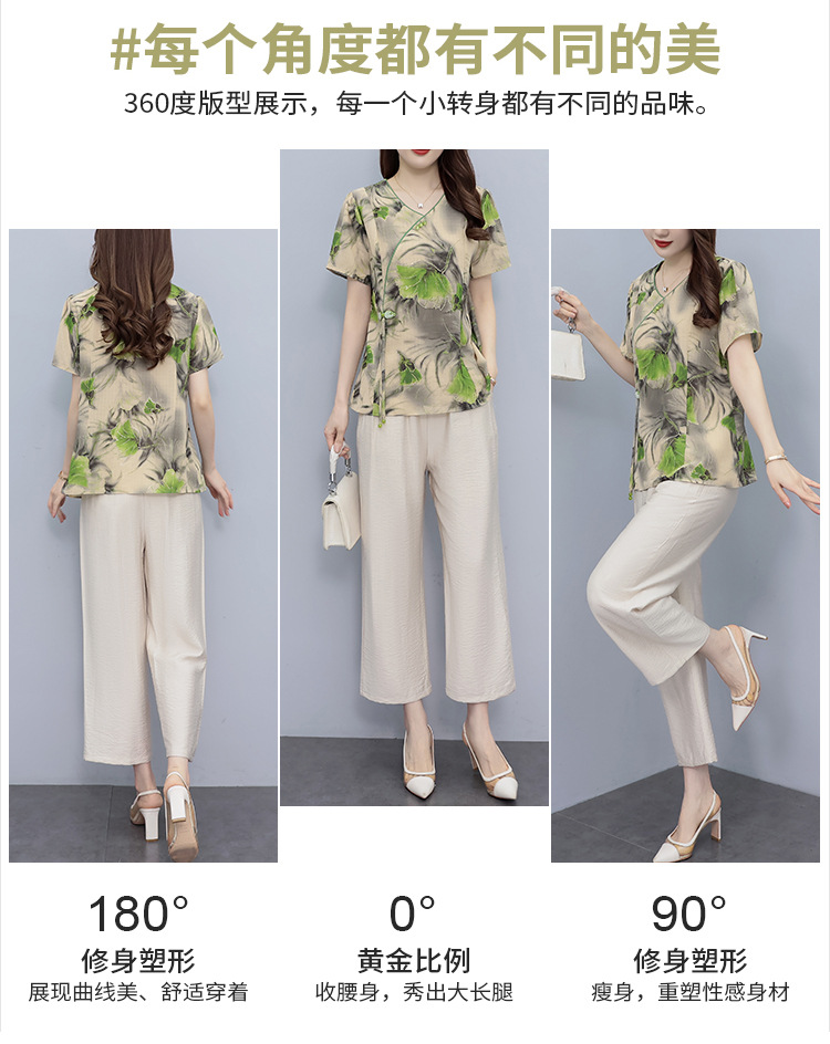 薄款短袖上衣阔腿裤两件套妈妈套装YH