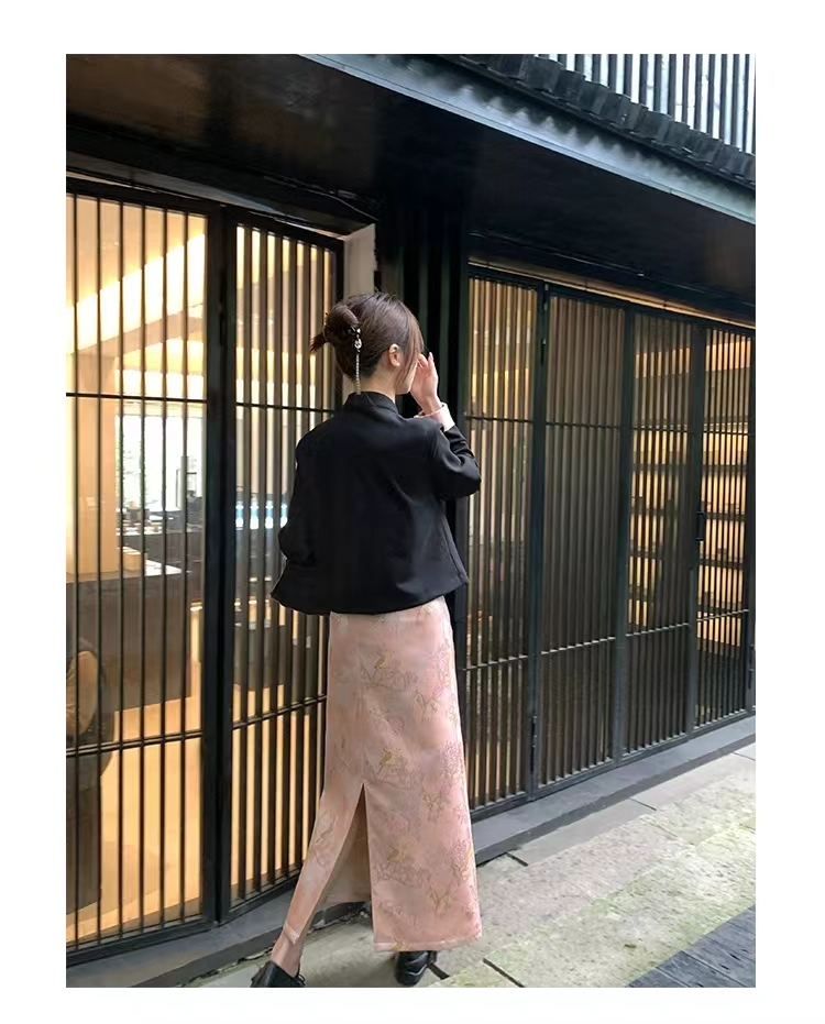 清(NO退微微瑕)限时促【喜出】提花国风粉色单件半裙-喜出
