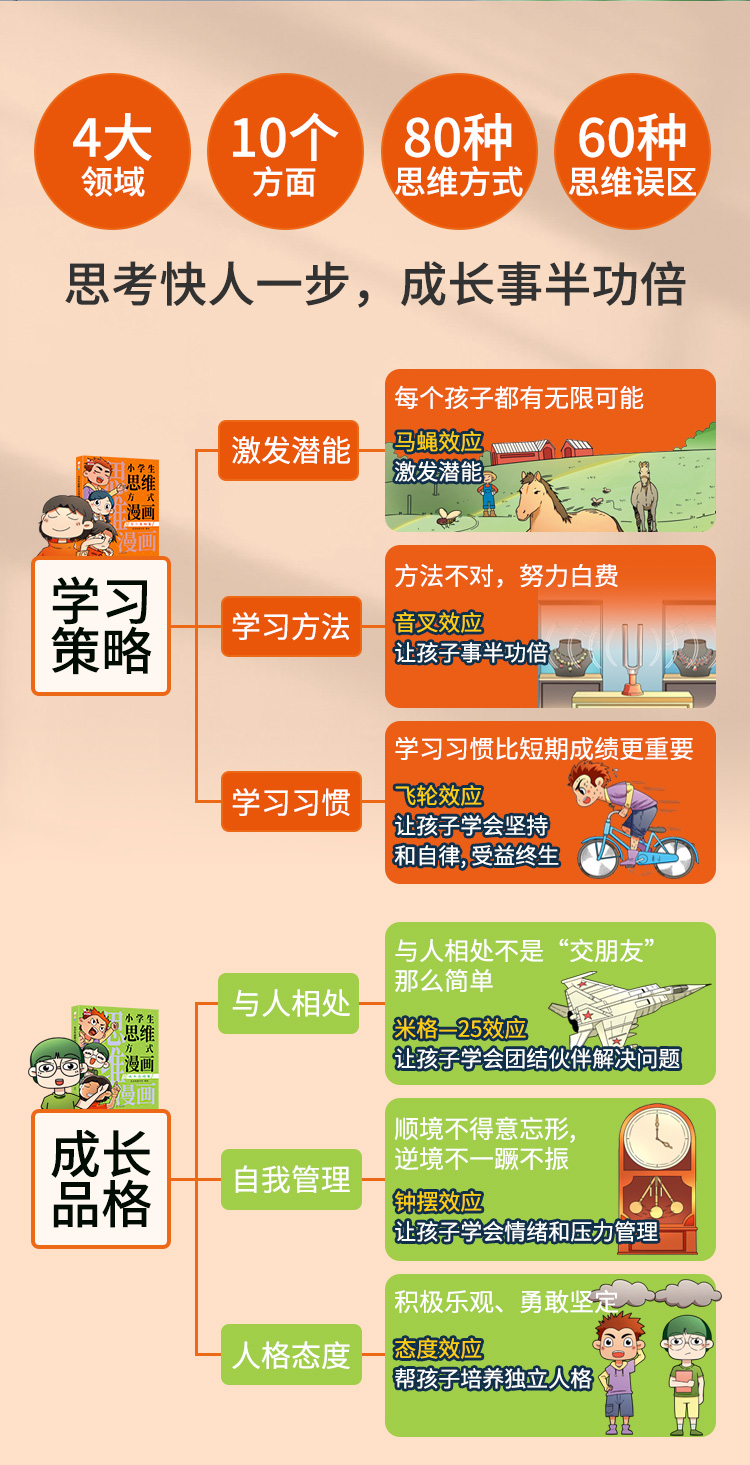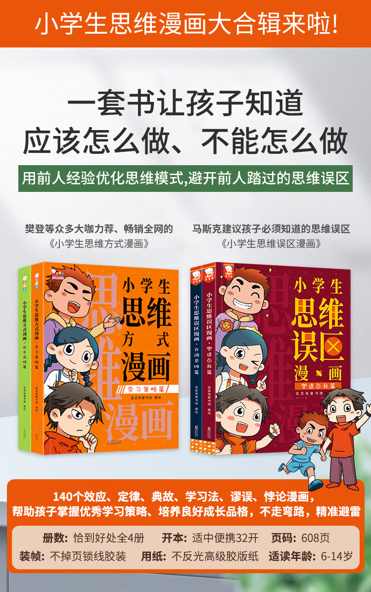 小学生思维漫画大合辑来啦!《思维方式漫画》+《思维误区漫画》用前人经验优化思维模式,避开前人踏过的思维误区