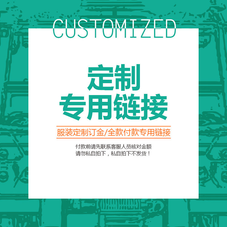 服装定制订金/全款付款专用链接,付款前请先联系客服人员核对金额,请勿私自拍下,私自拍下不发货!