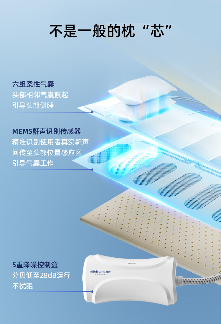 热卖中!!顺丰发货!【中美德发明专利 15天免费试睡】Nitetronic 添眠智能止鼾枕