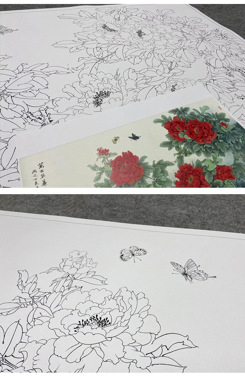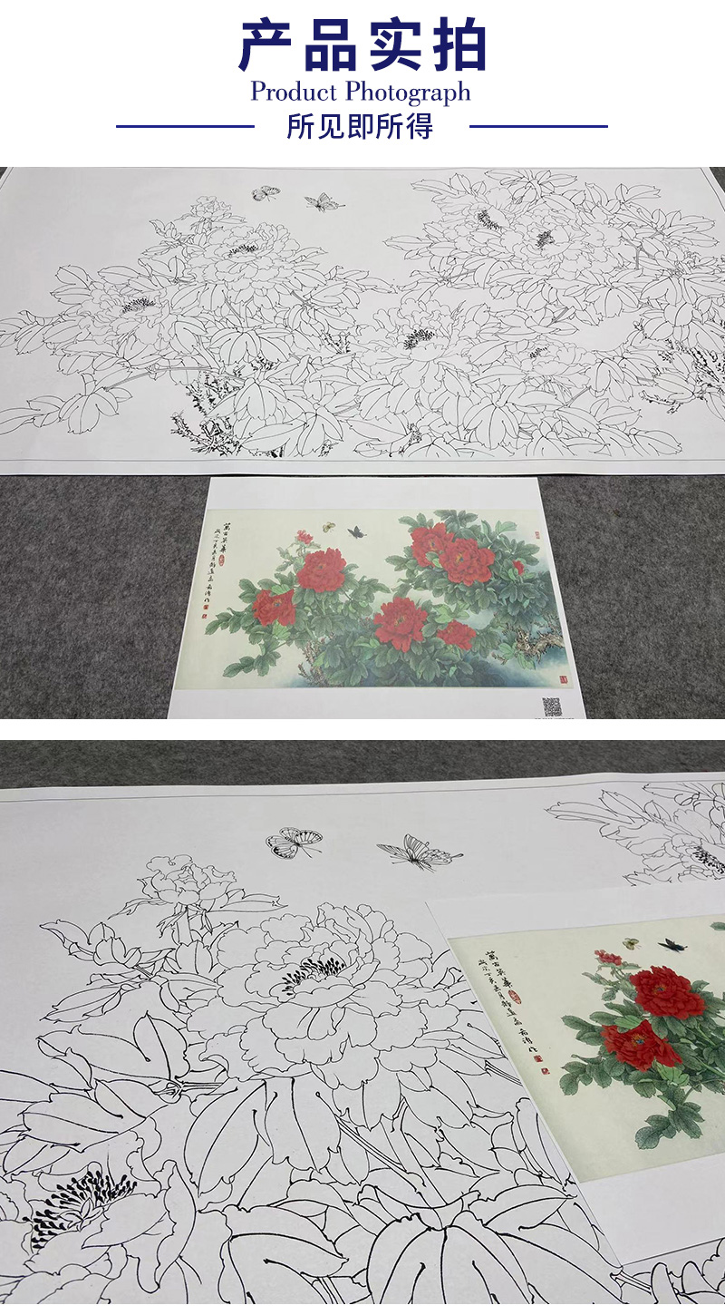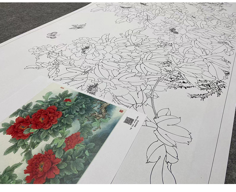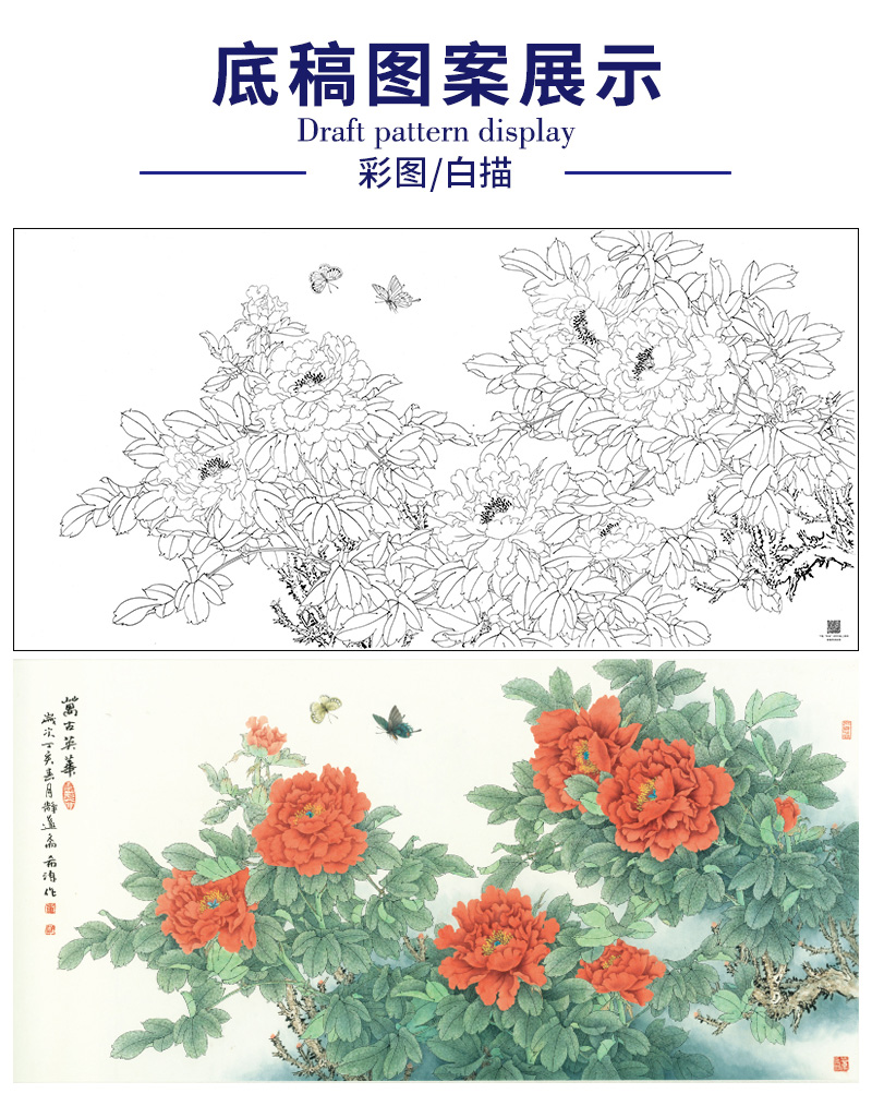 【大彩图】董希源横幅工笔画白描底稿《万古英华》牡丹临摹勾线花鸟线稿HN16