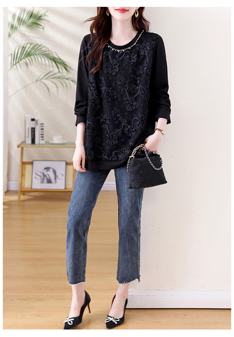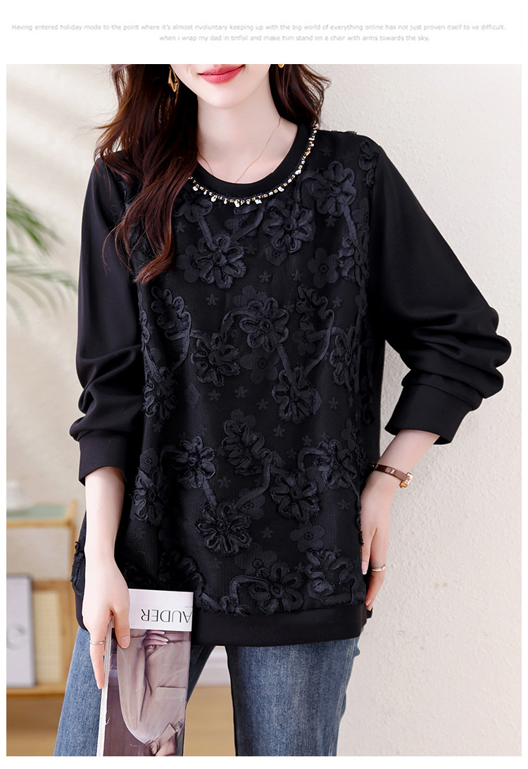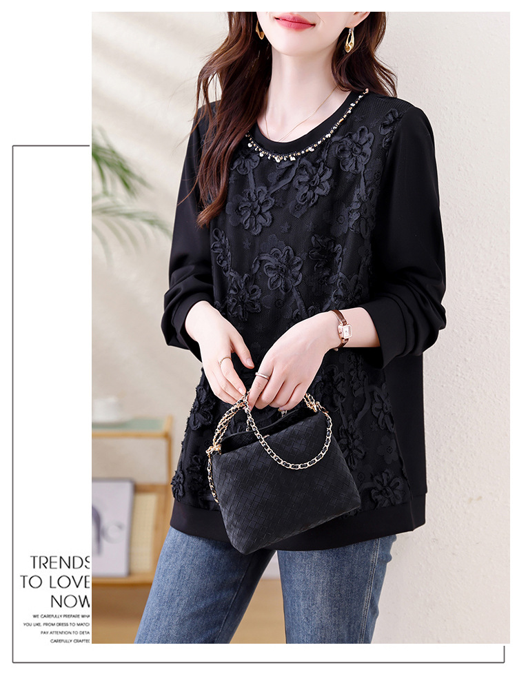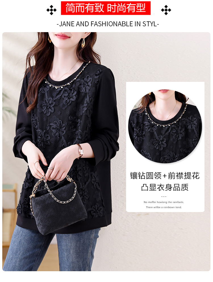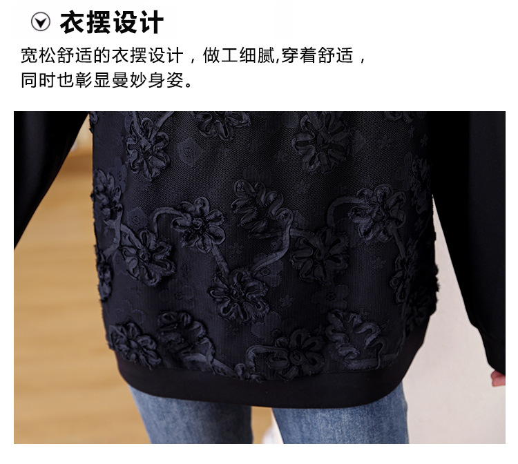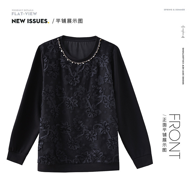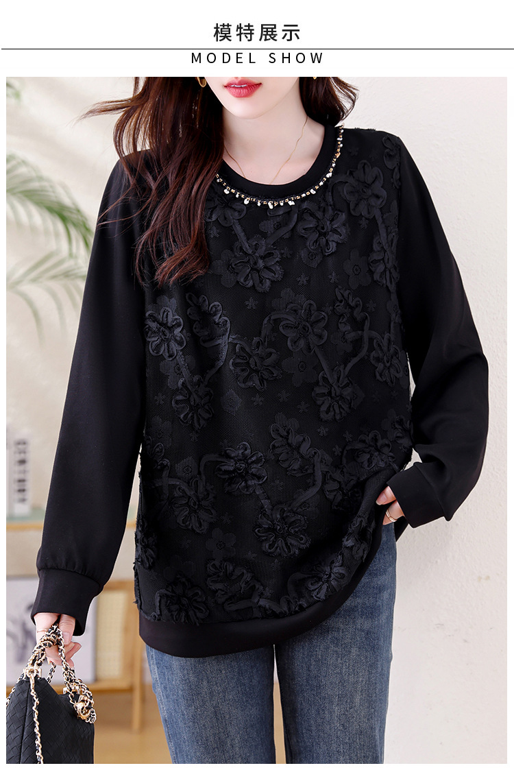 KQL A56N8122时尚蕾丝圆领卫衣宽松上衣