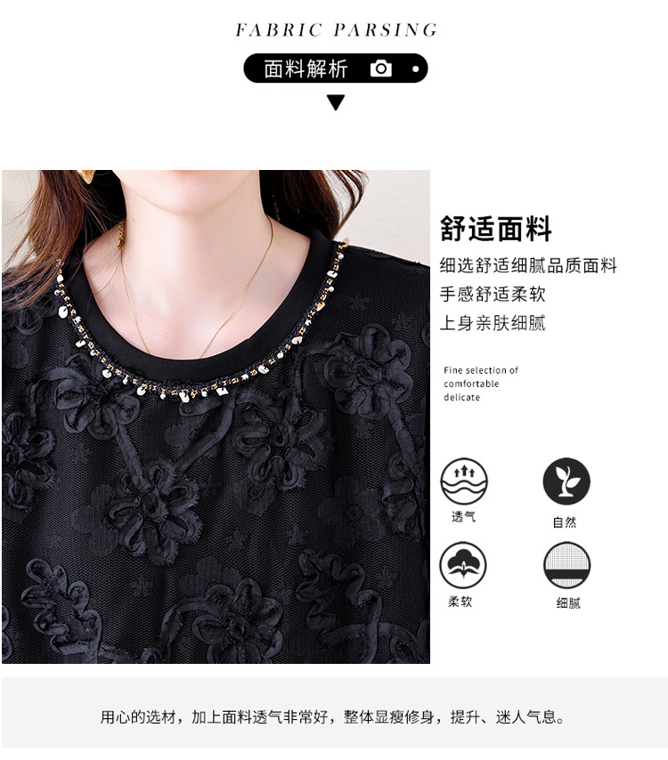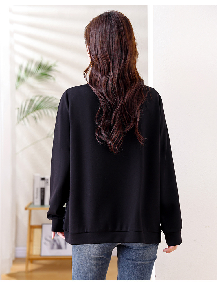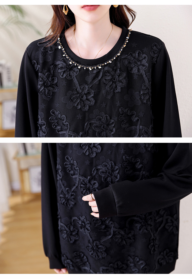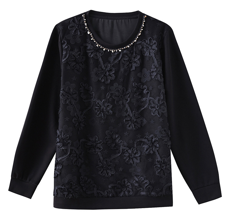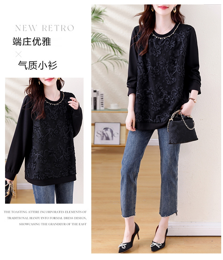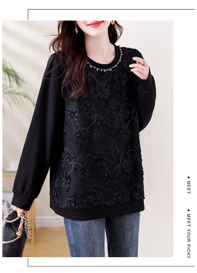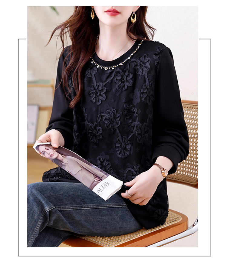 KQL A56N8122时尚蕾丝圆领卫衣宽松上衣