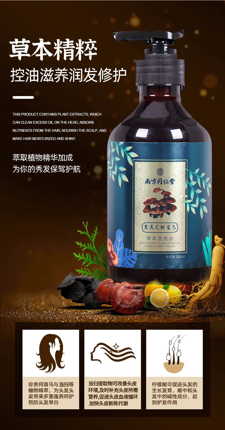 【买1送1买2送2再减10 多买多减】南京同仁堂乐家老铺何首乌植萃润养洗发水养发护发