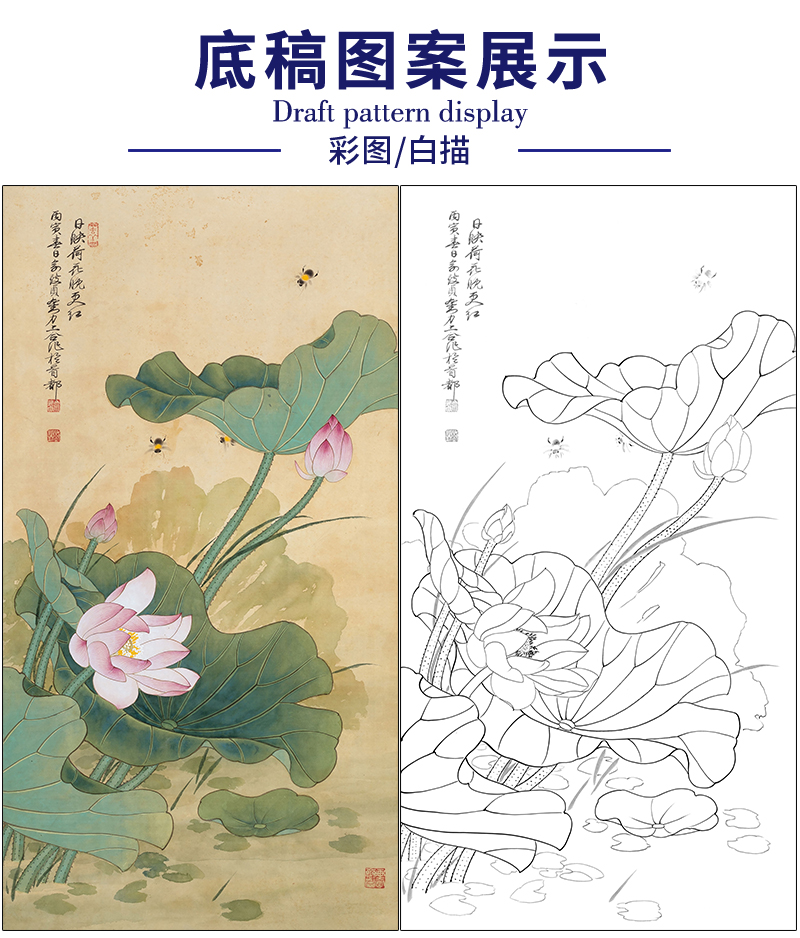 俞致贞花鸟工笔画白描底稿《日映荷花晚更红》临摹勾线高清打印稿ZZ19
