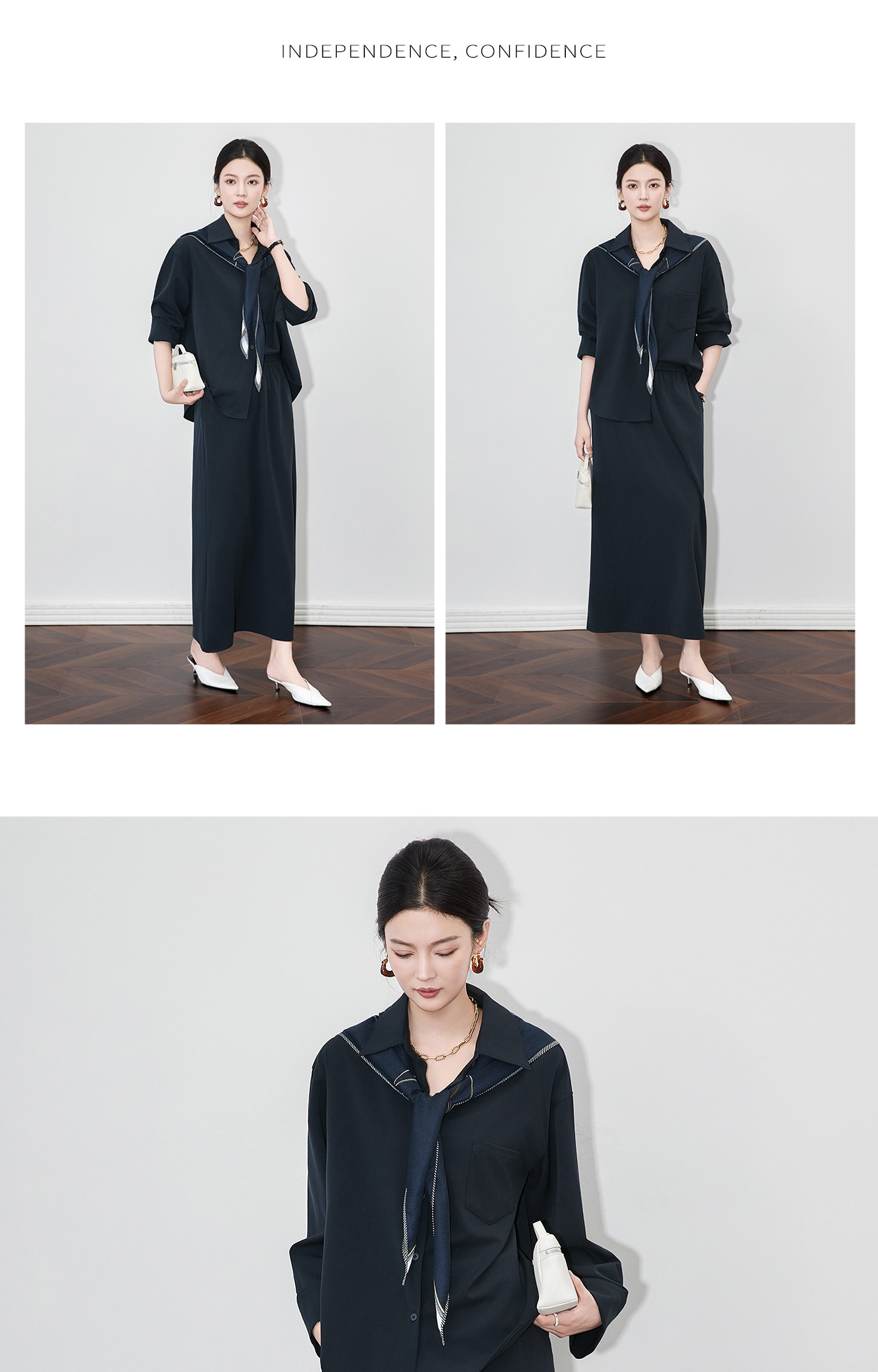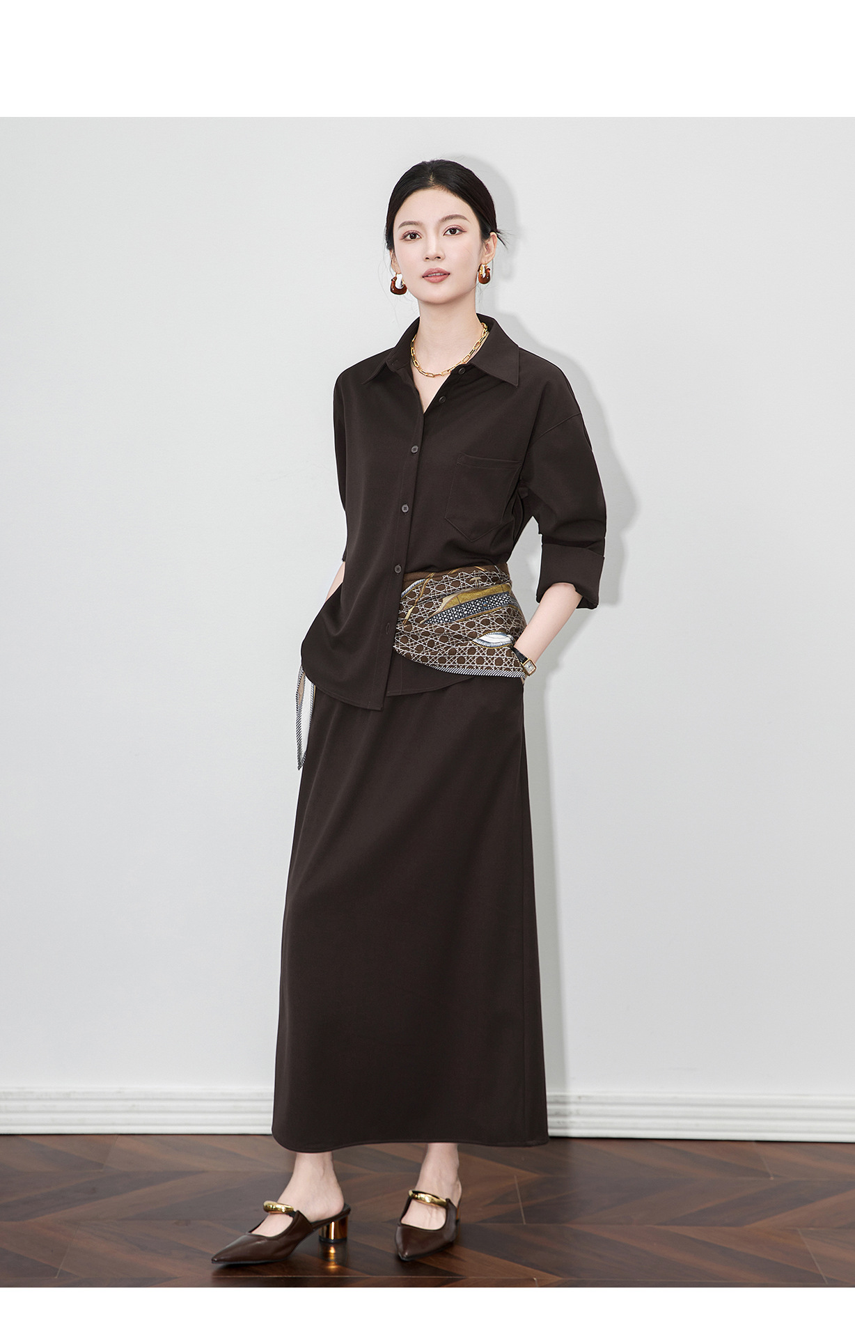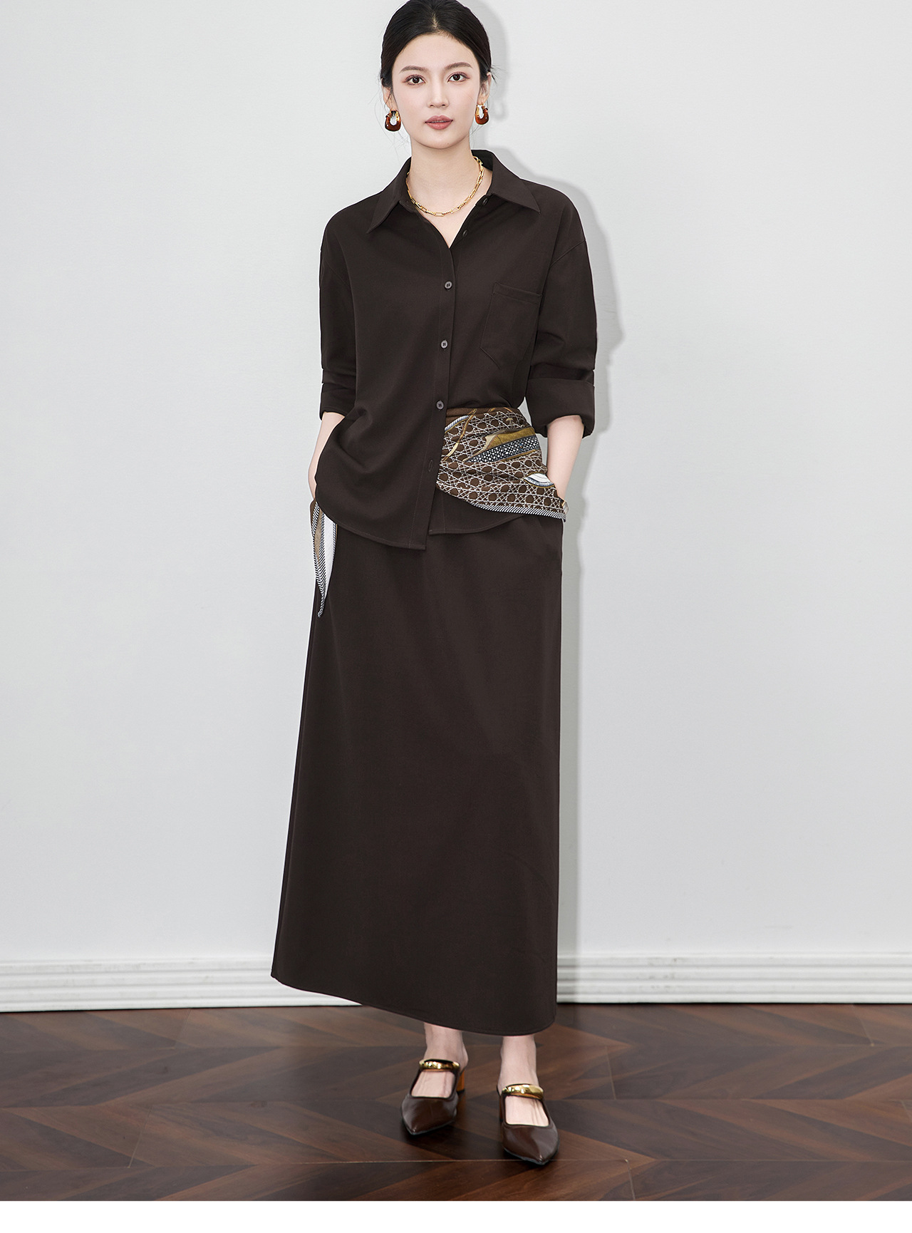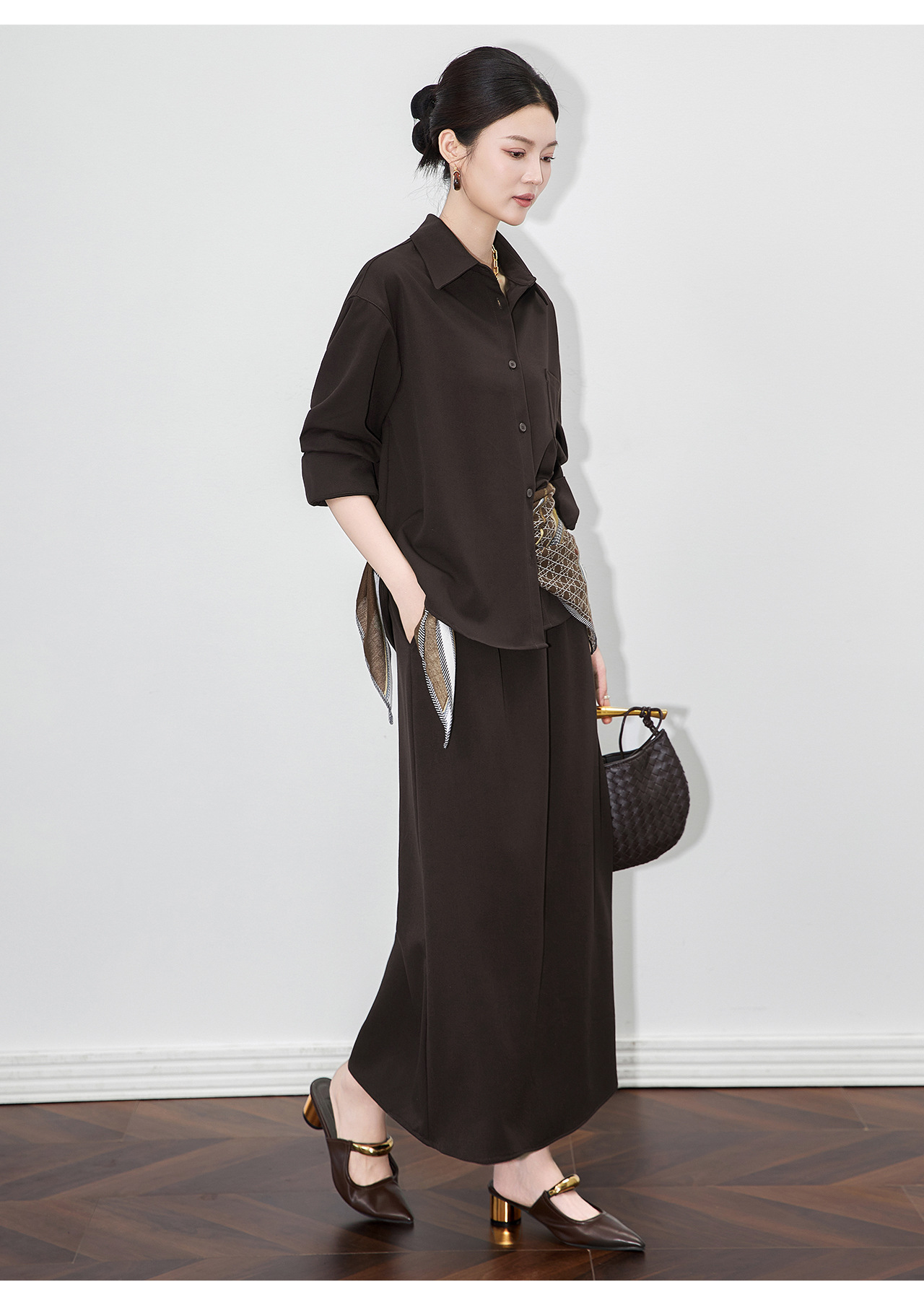 「高货wl」全新升级【铂金会员404/天猫539/差价135】(99132)洛诗琳2025秋季老钱风法式休闲丝巾衬衫半身裙三件套女