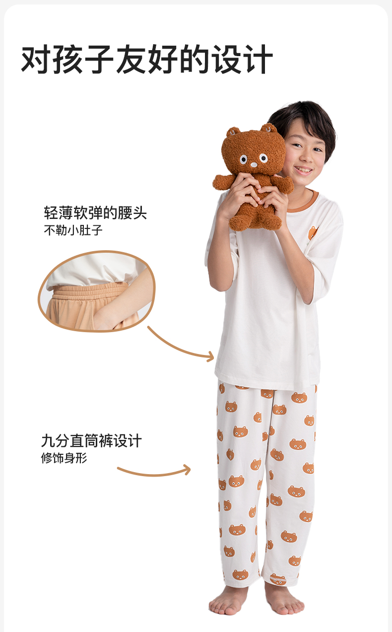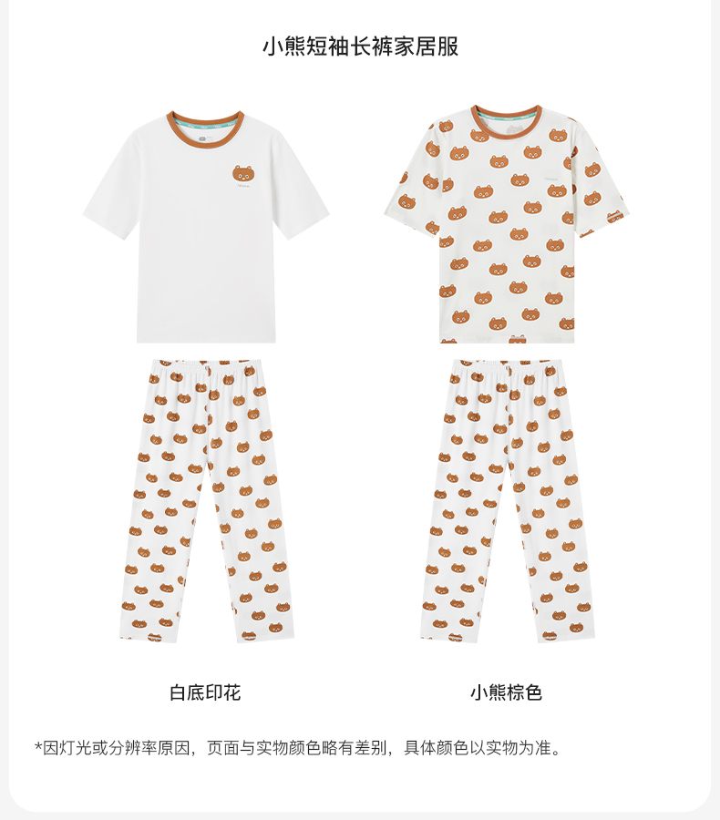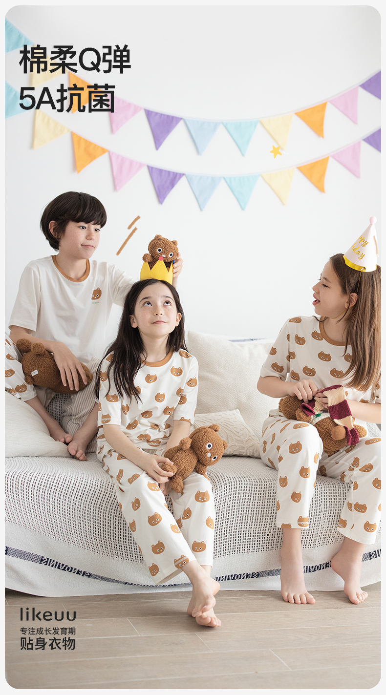 ubras旗下likeuu儿童夏季薄款小熊家居服休闲短袖套装ZY