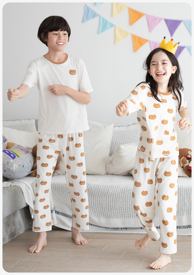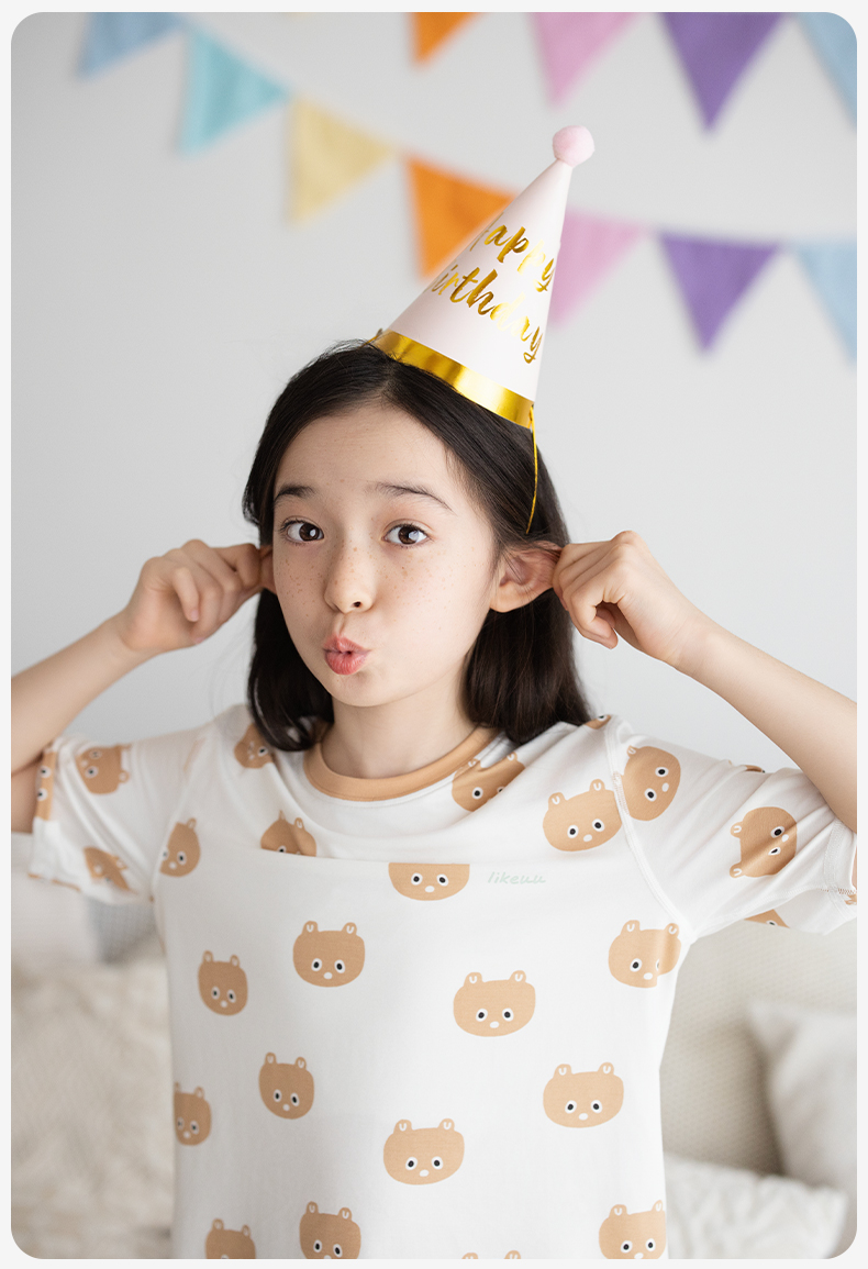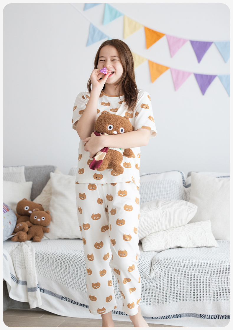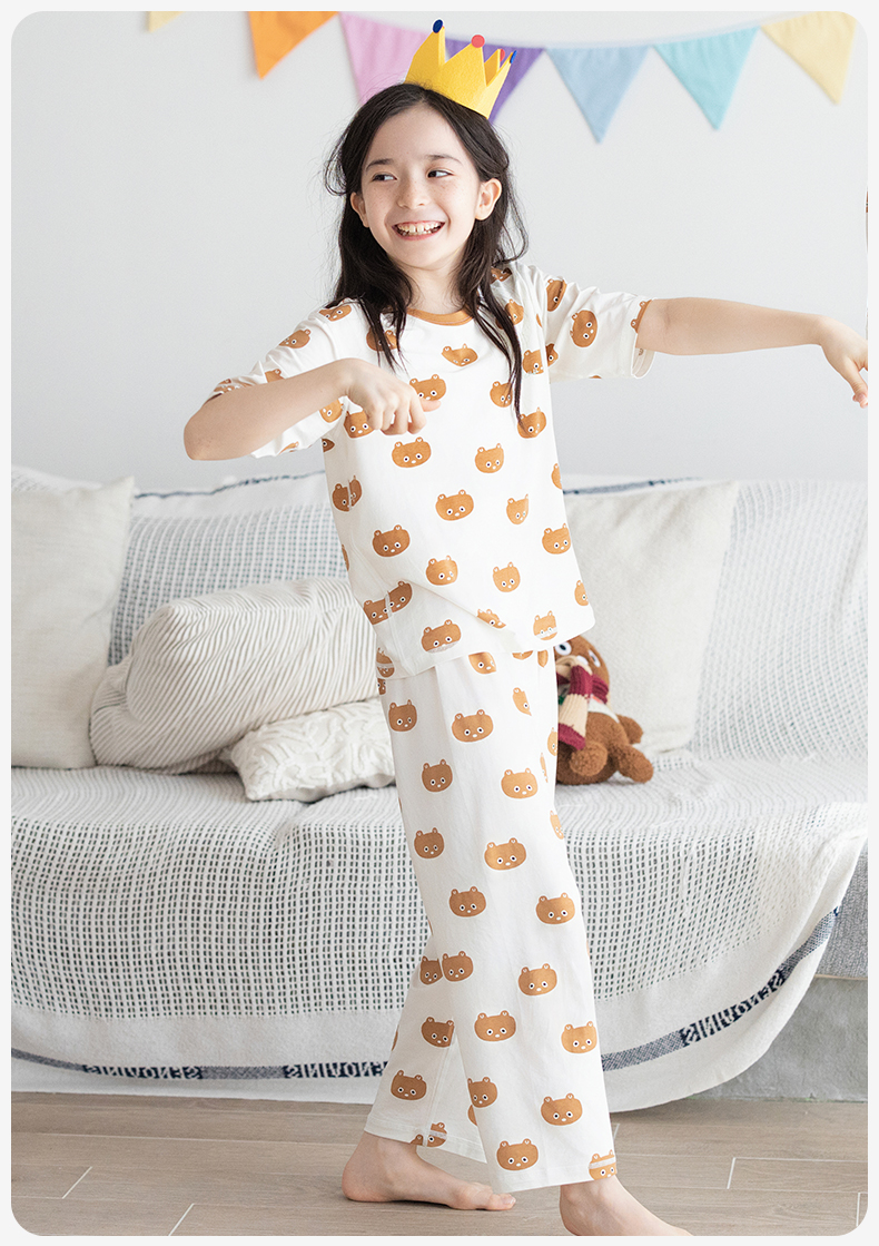 ubras旗下likeuu儿童夏季薄款小熊家居服休闲短袖套装ZY