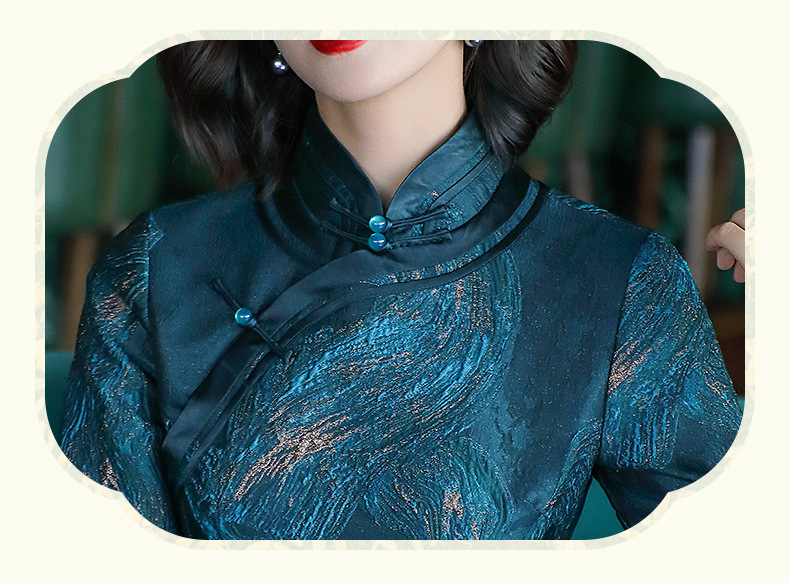 OY-24307复古中国风女装秋季新款全开襟提花日常改良长款旗袍连衣裙24307