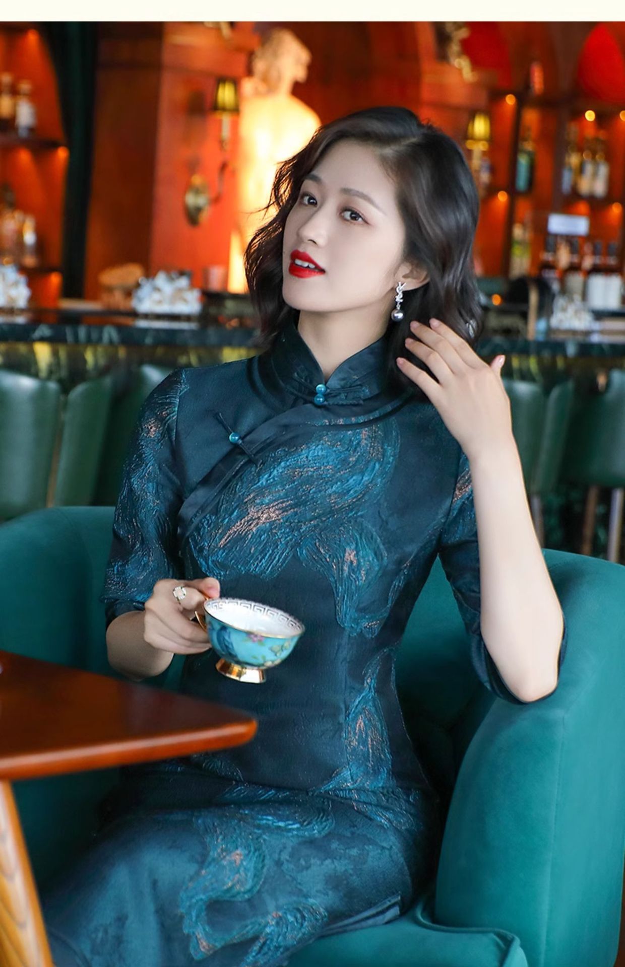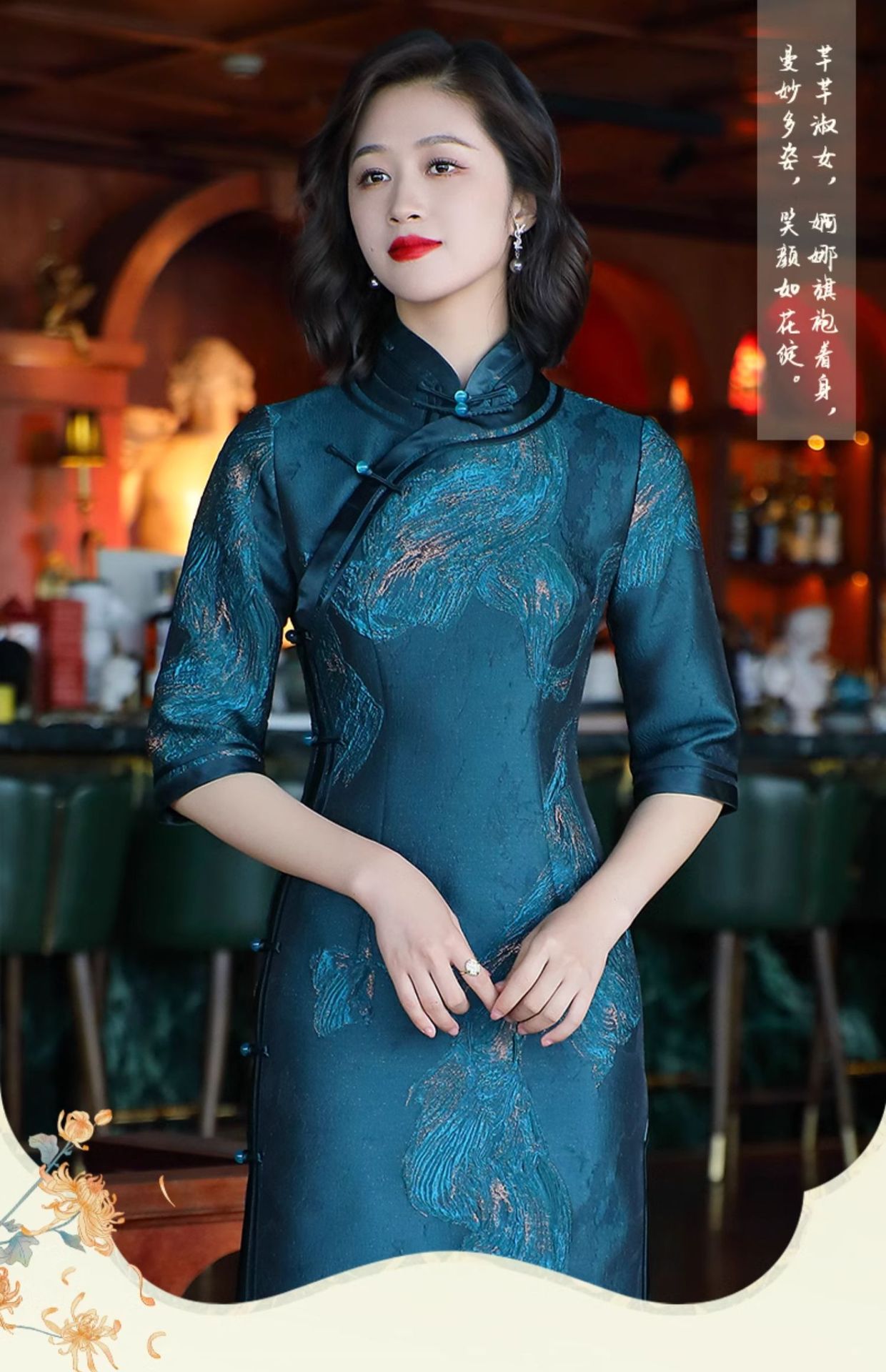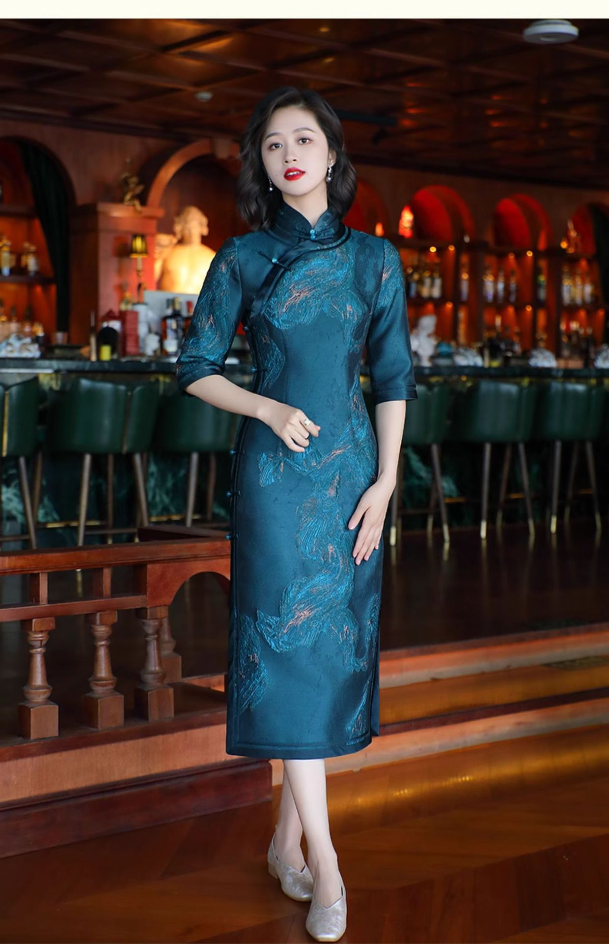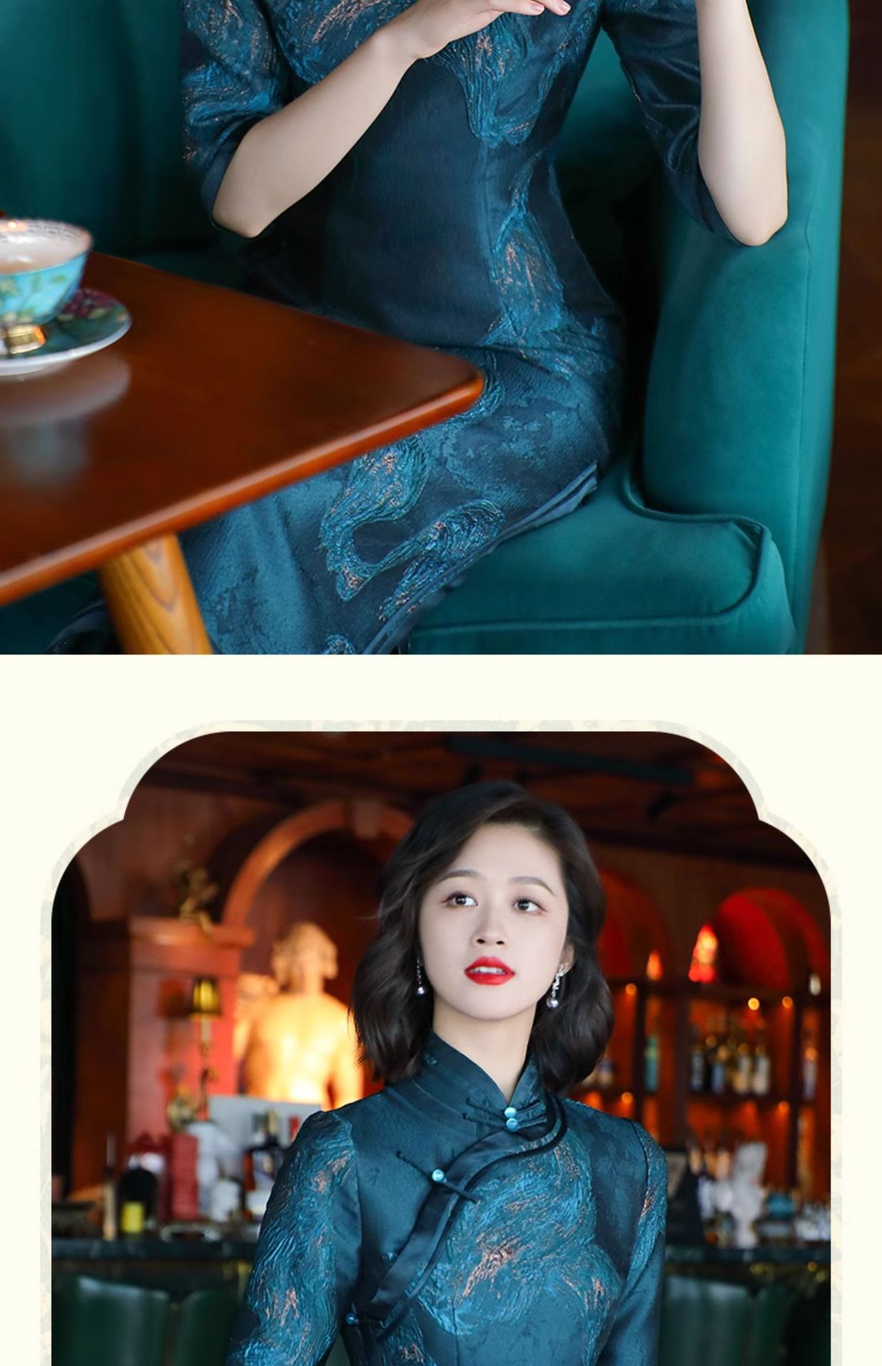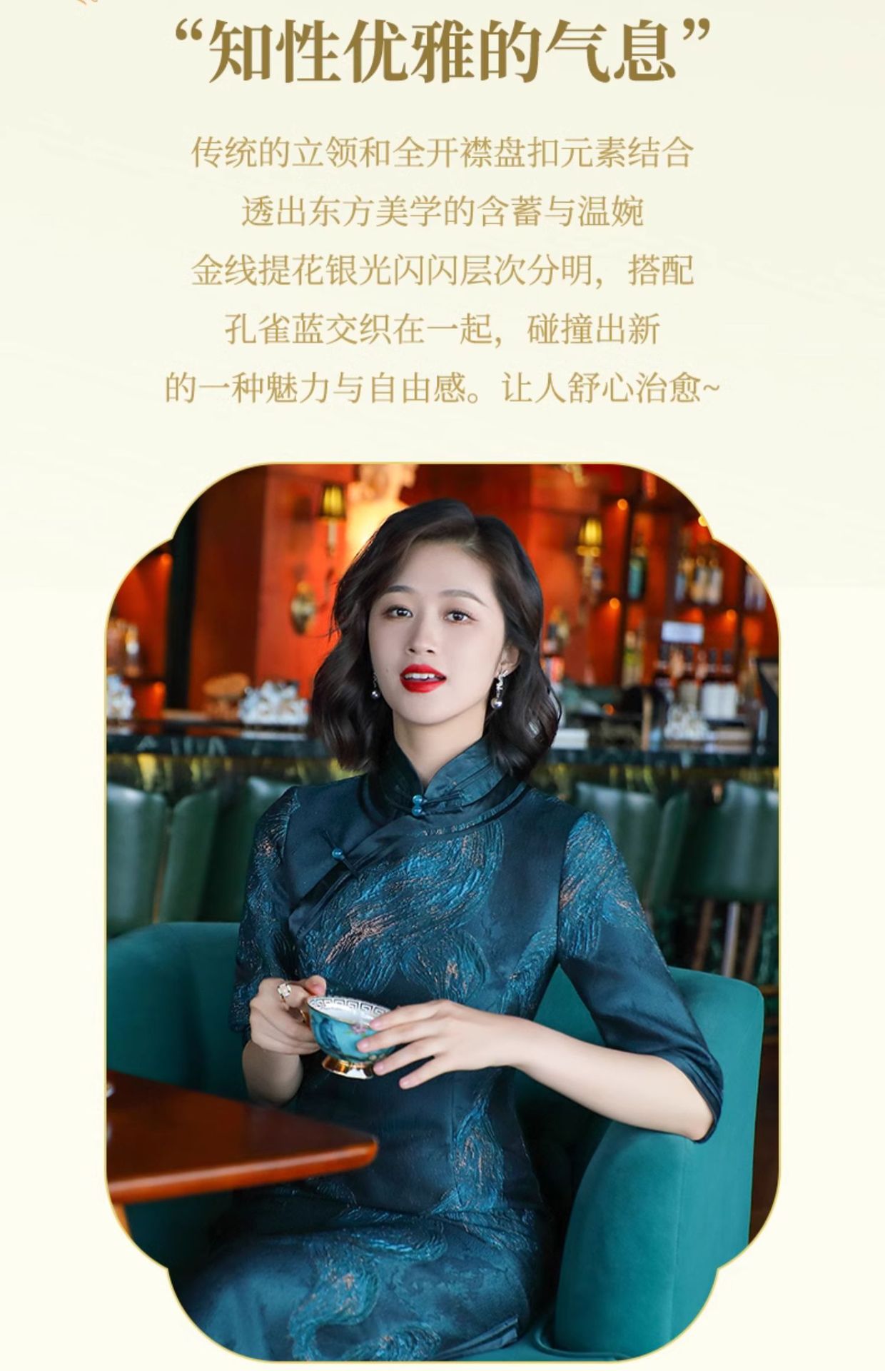 - 旗袍,属于上海的别样文化和魅力。女人的风韵,谁不曾梦见过在黄昏的小巷里,哒哒的高跟鞋声,摇摆的女子的背影,渐远渐远......