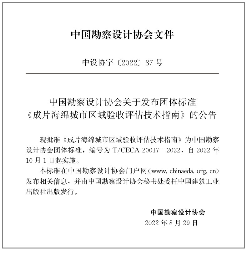 书名:成片海绵城市区域验收评估技术指南T/CECA20017-2022