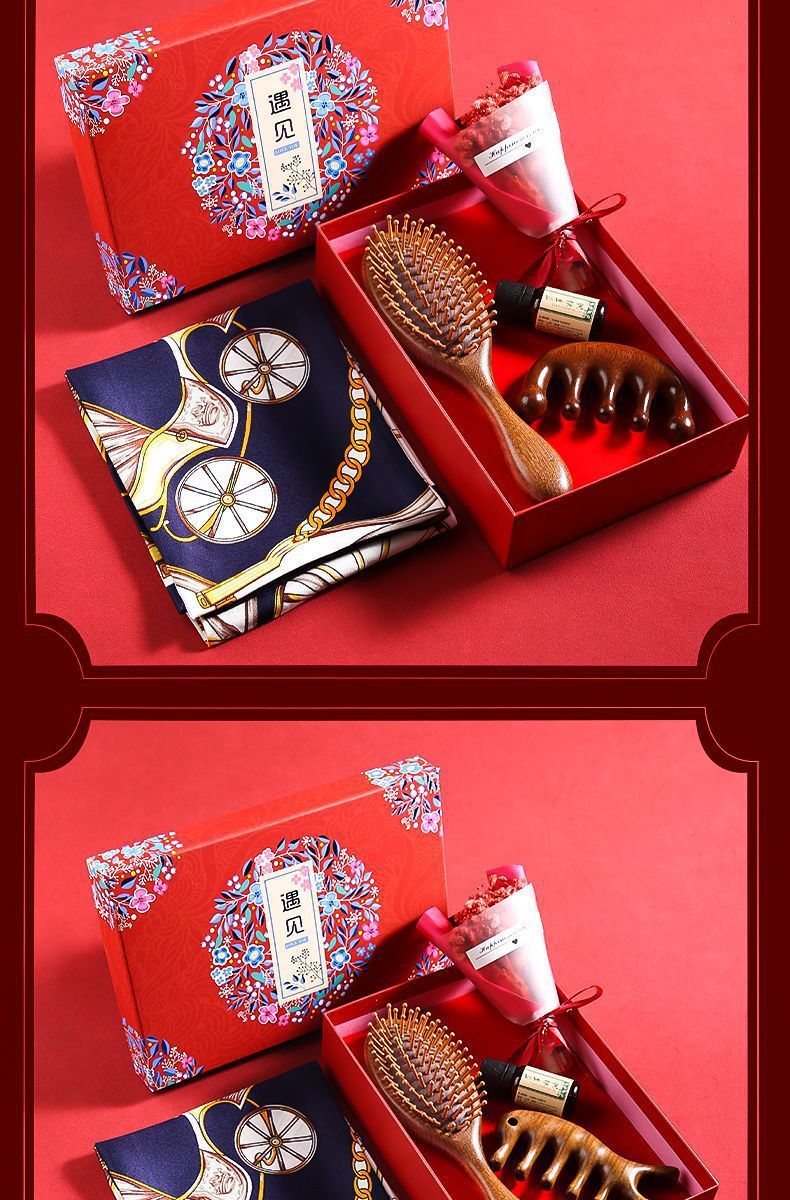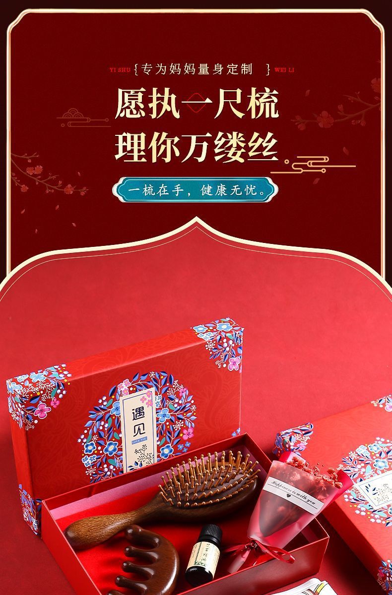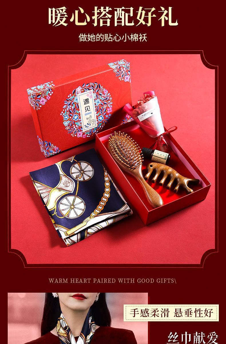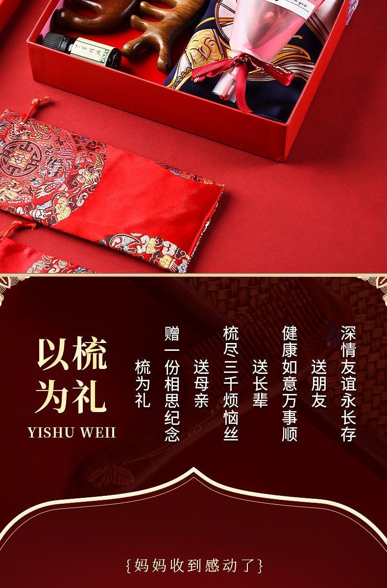 【母亲节好礼!愿执一尺梳,理你万缕丝~】母亲节送妈妈 生日礼物实用 高级感按摩梳 梳子丝巾礼盒 婆婆老师长辈礼物-QQ