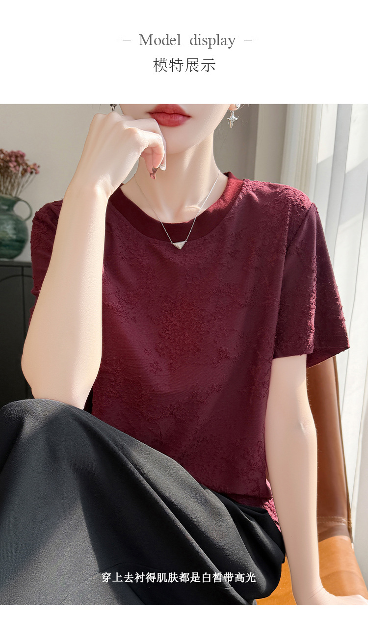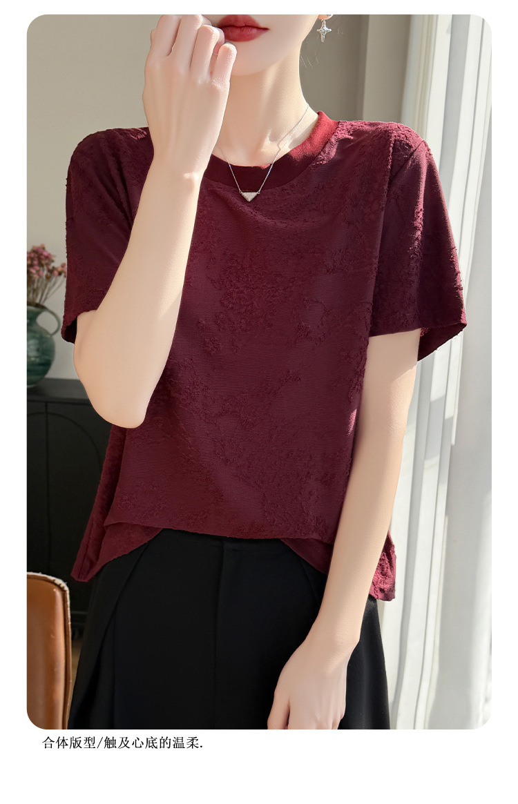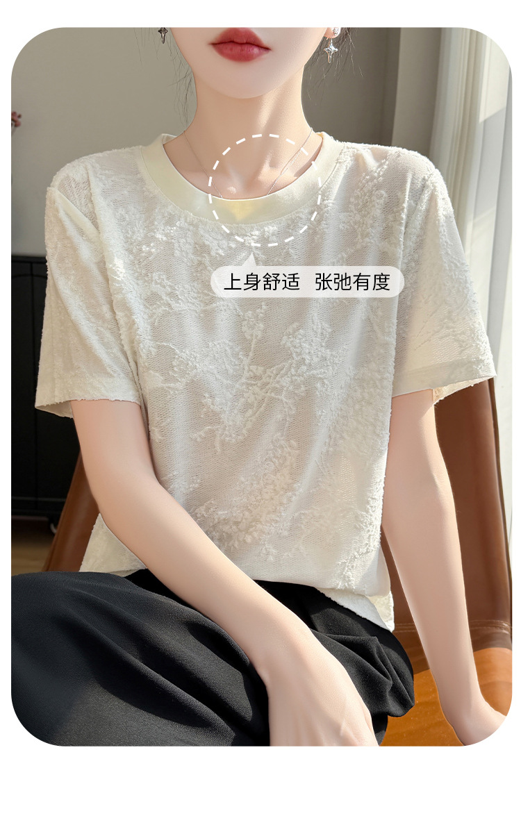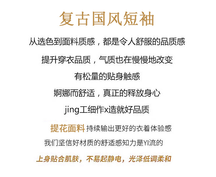 百媚生 复古国风提花套头短袖T恤针织打底上衣YT-A303