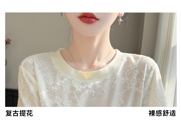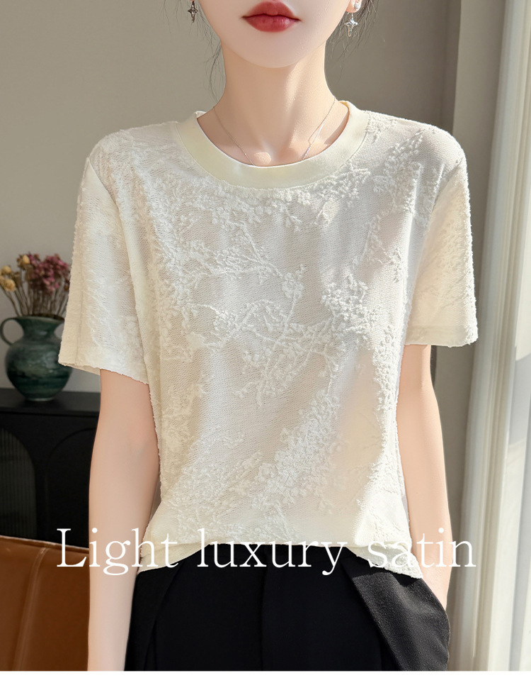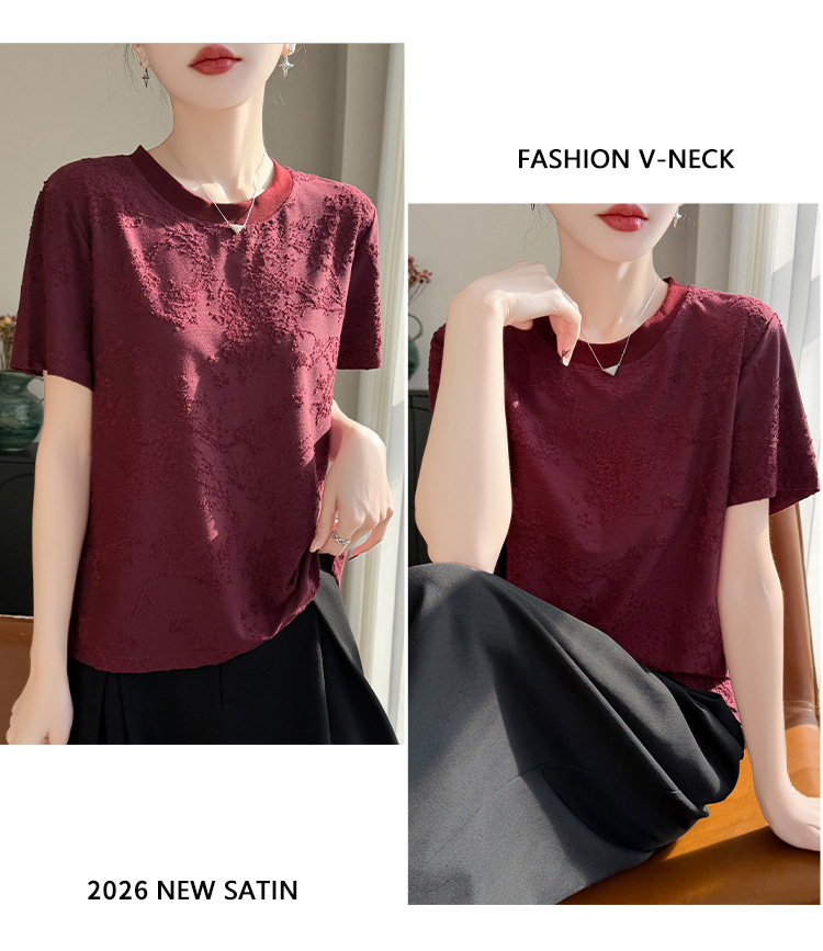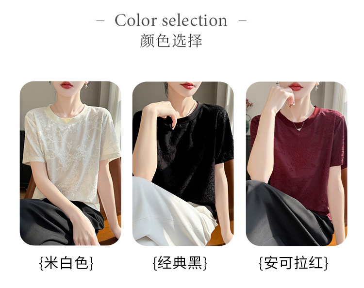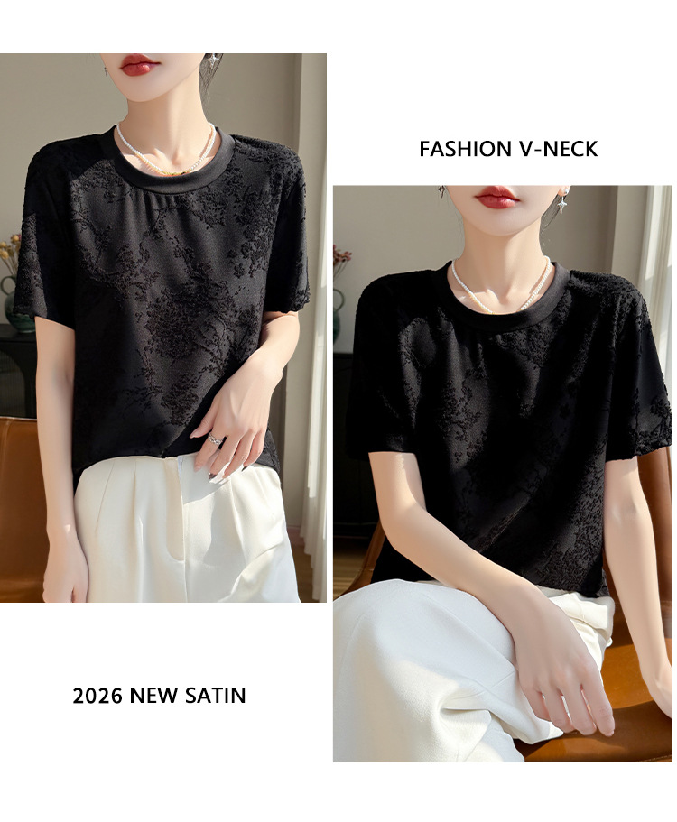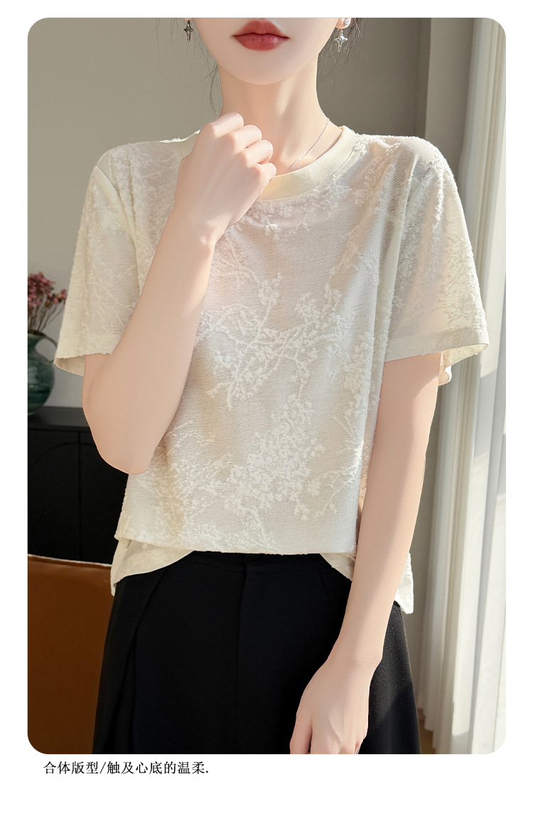 百媚生 复古国风提花套头短袖T恤针织打底上衣YT-A303
