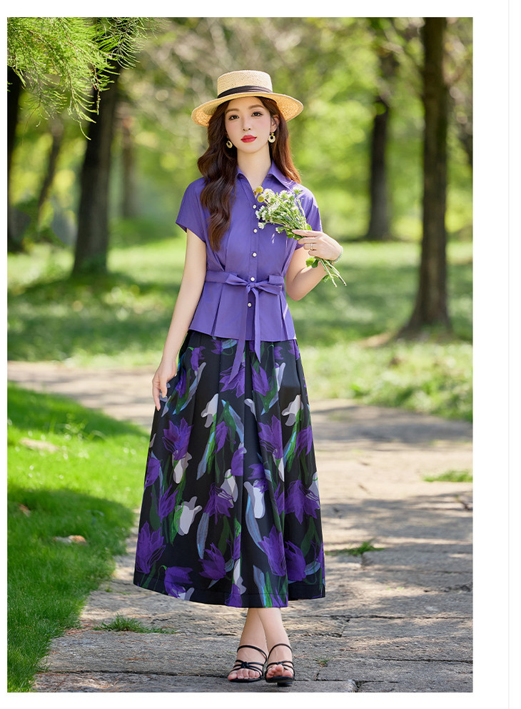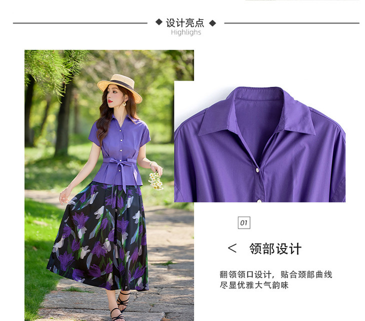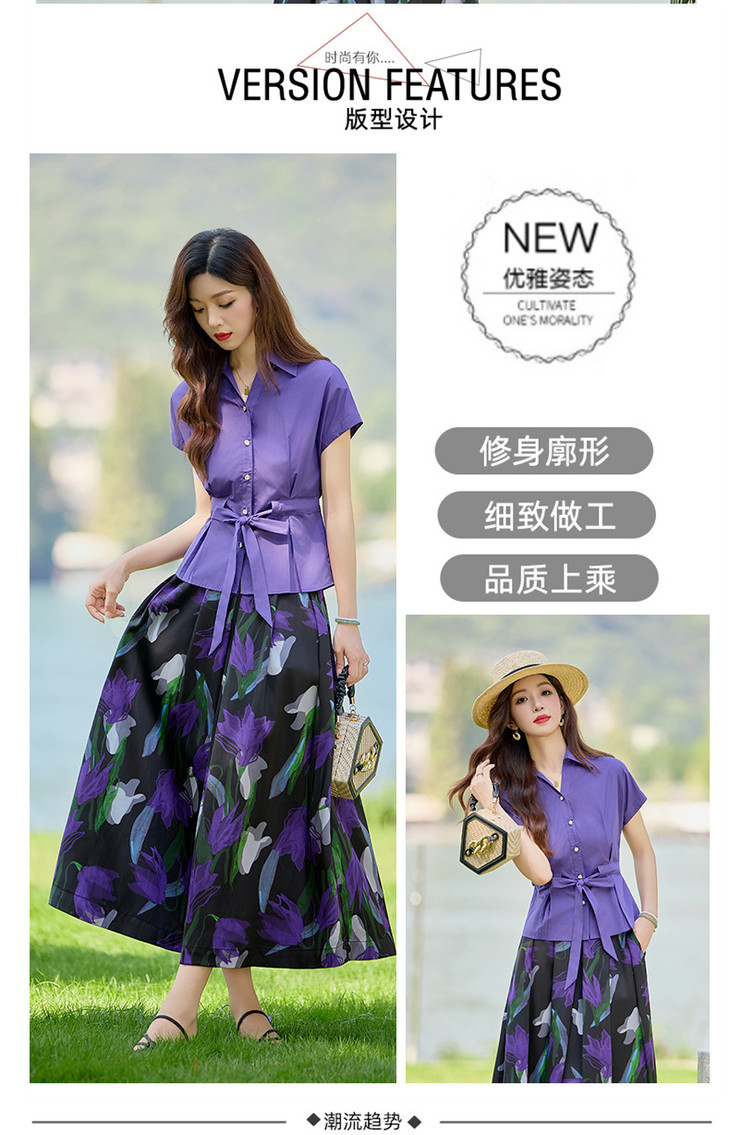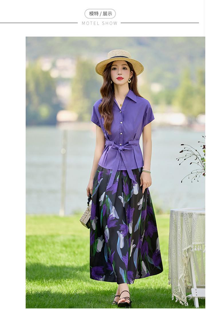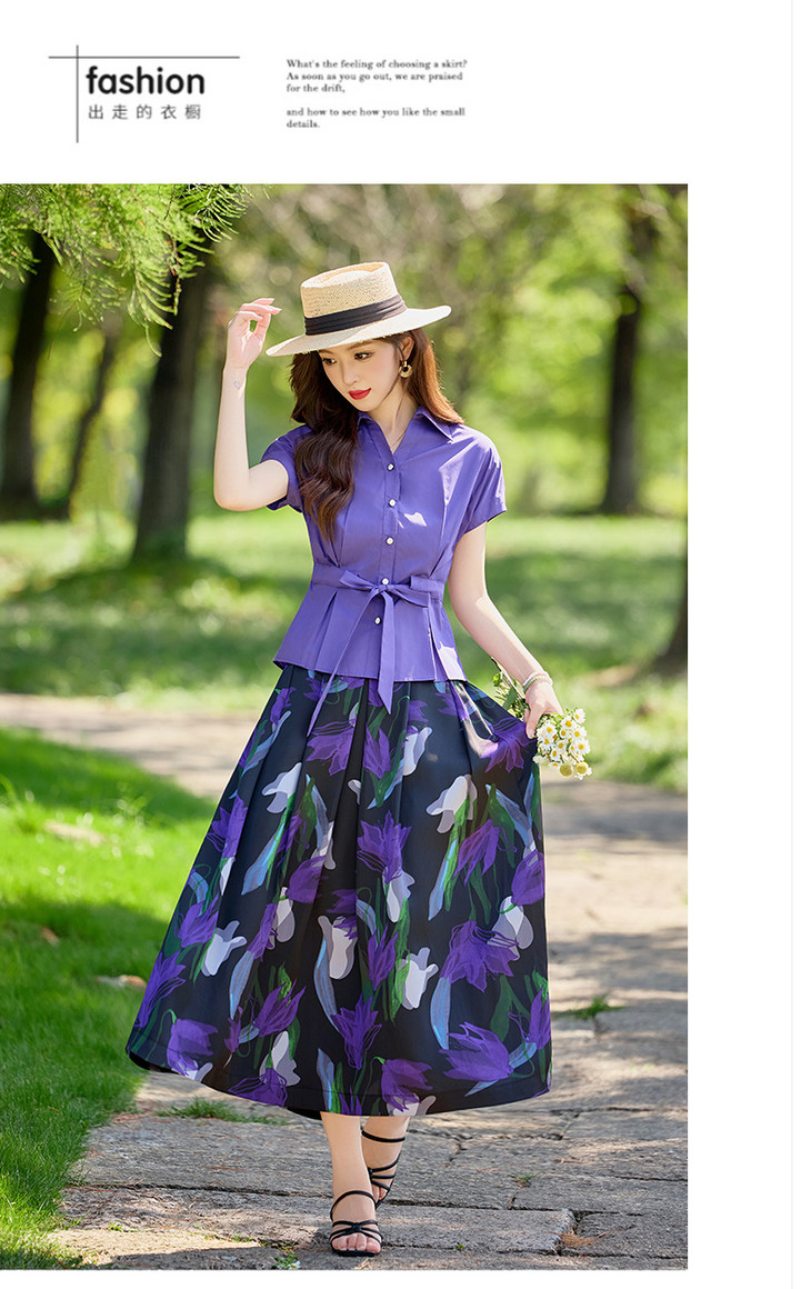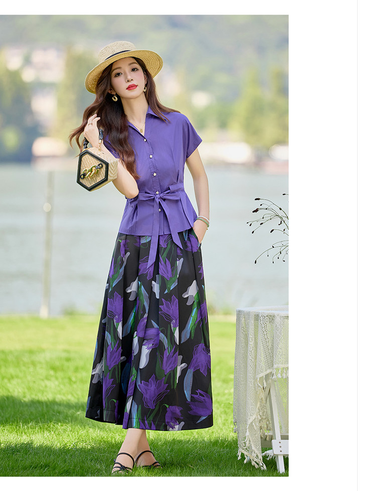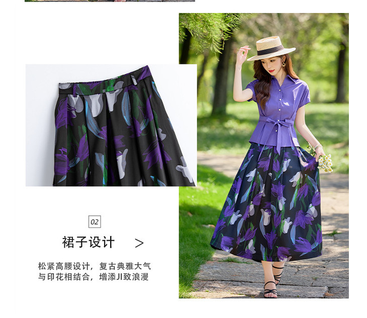 度假风2026款时尚气质优雅系带衬衫印花半身裙两件套SYY2775 商品图2