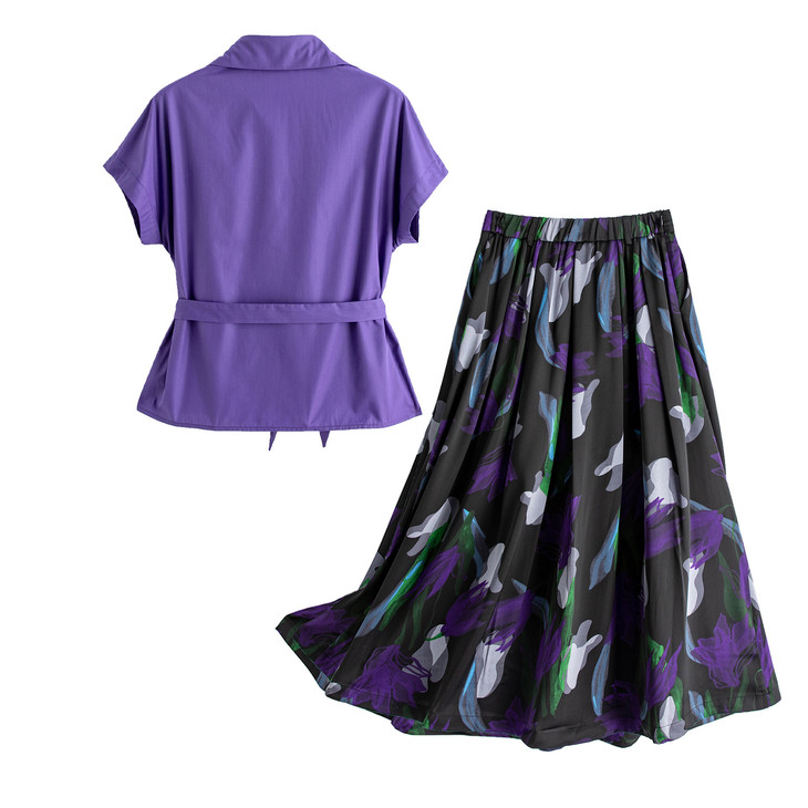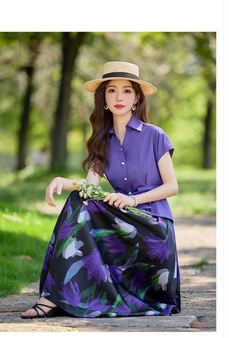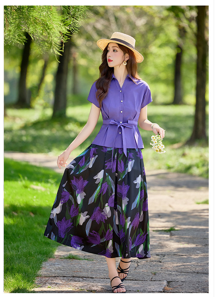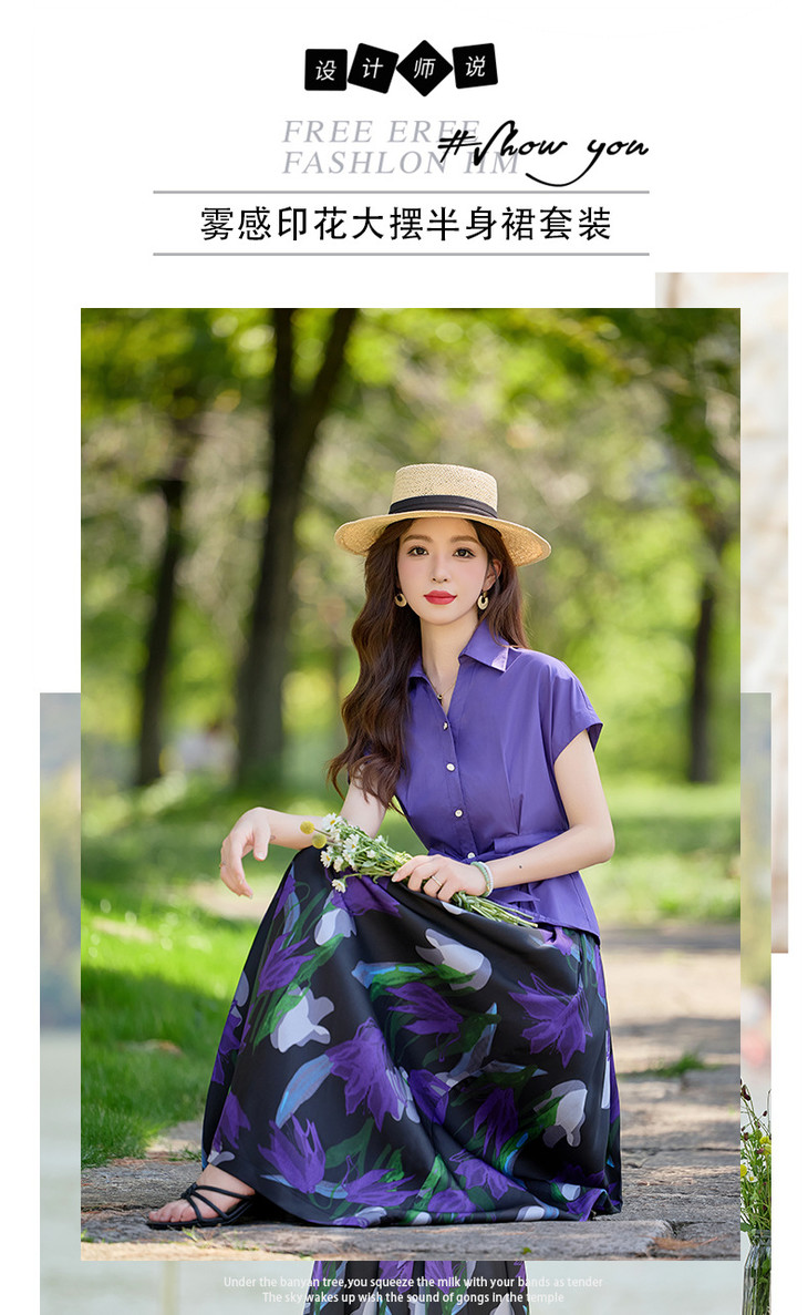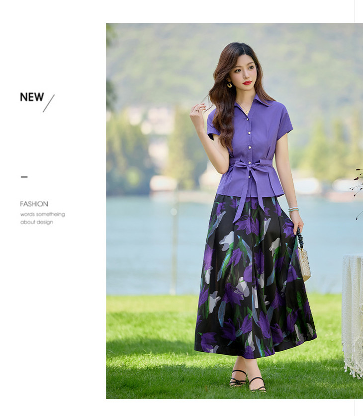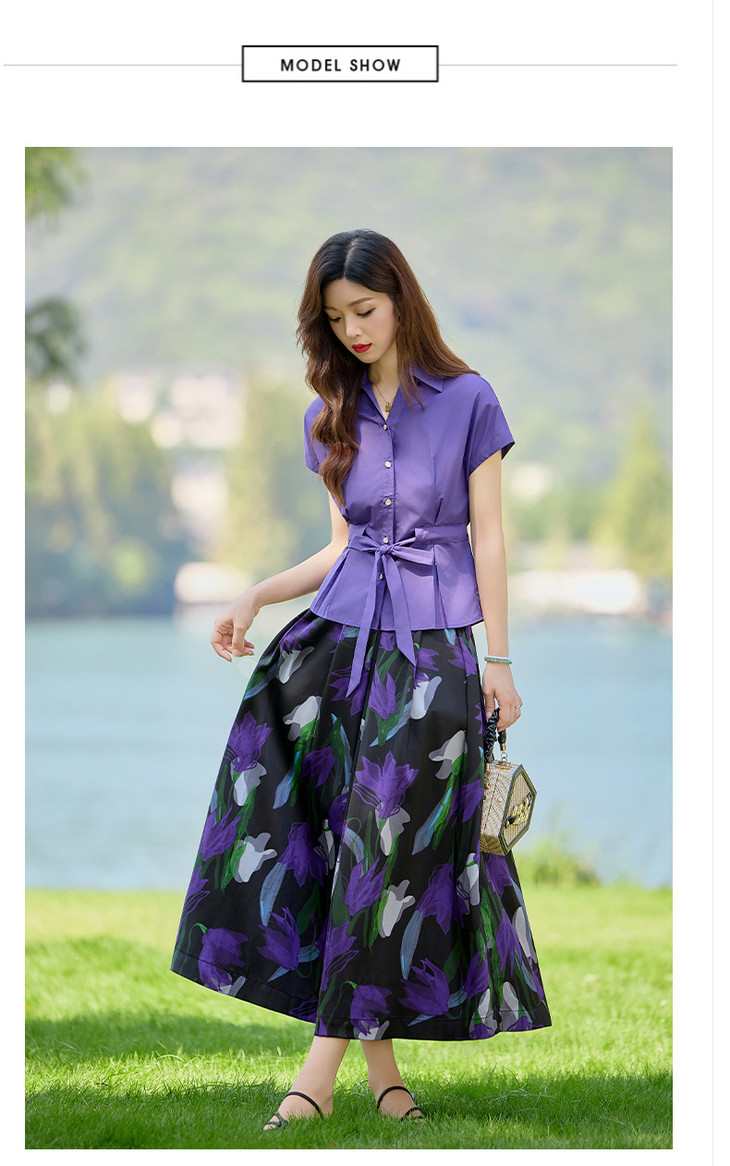 度假风2026款时尚气质优雅系带衬衫印花半身裙两件套SYY2775 商品图2
