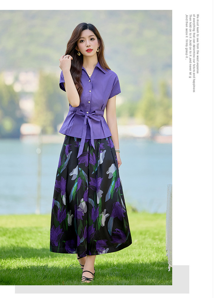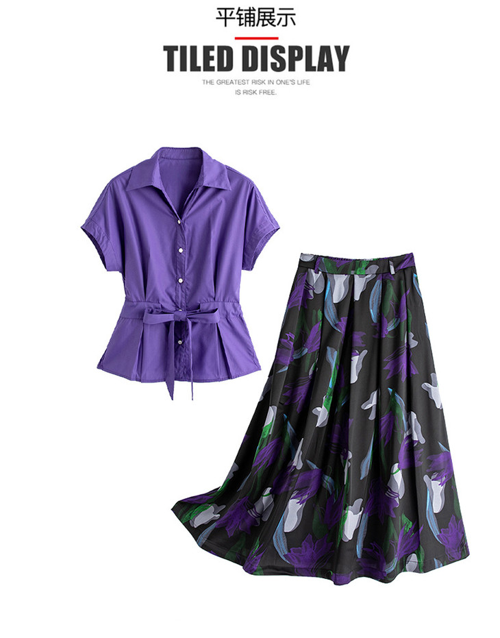 度假风2026款时尚气质优雅系带衬衫印花半身裙两件套SYY2775 商品图0
