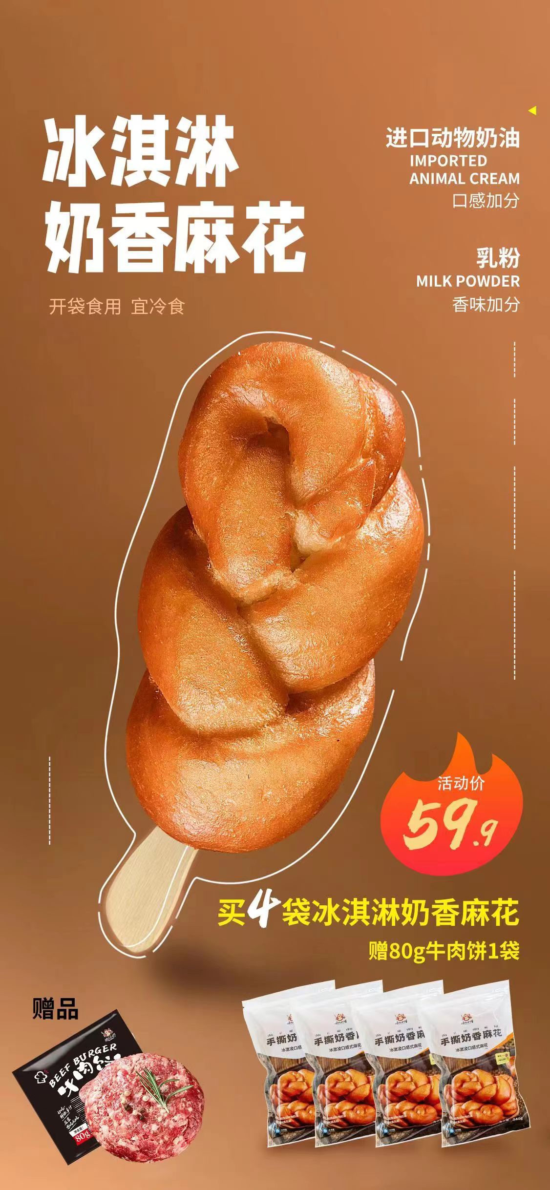 限时活动来袭~ 4袋手撕冰激凌麻花限时搭赠100%纯牛肉的牛肉饼1袋!!助力营养美味早餐。
