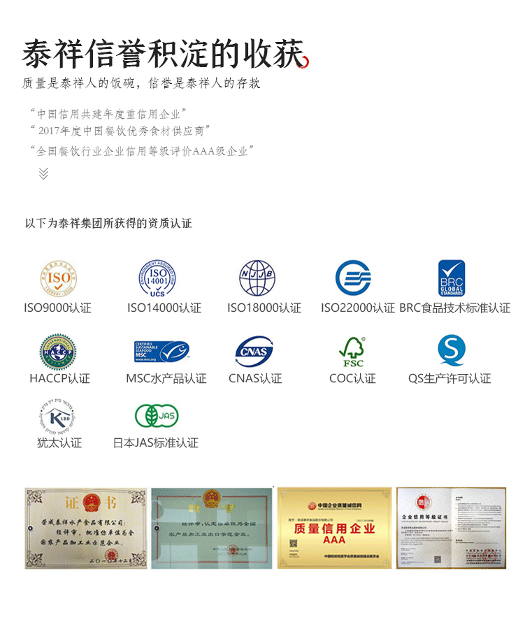 泰祥做为国内出口百强企业,目前供货涉及海陆空军队军需、国家会议中心、全球第一大餐饮集团百胜餐饮旗下肯德基、必胜客、小肥羊等及全国各连锁餐饮和商超便利店、全国各大高校,以及线上天猫、京东、必要商城等线上平台。