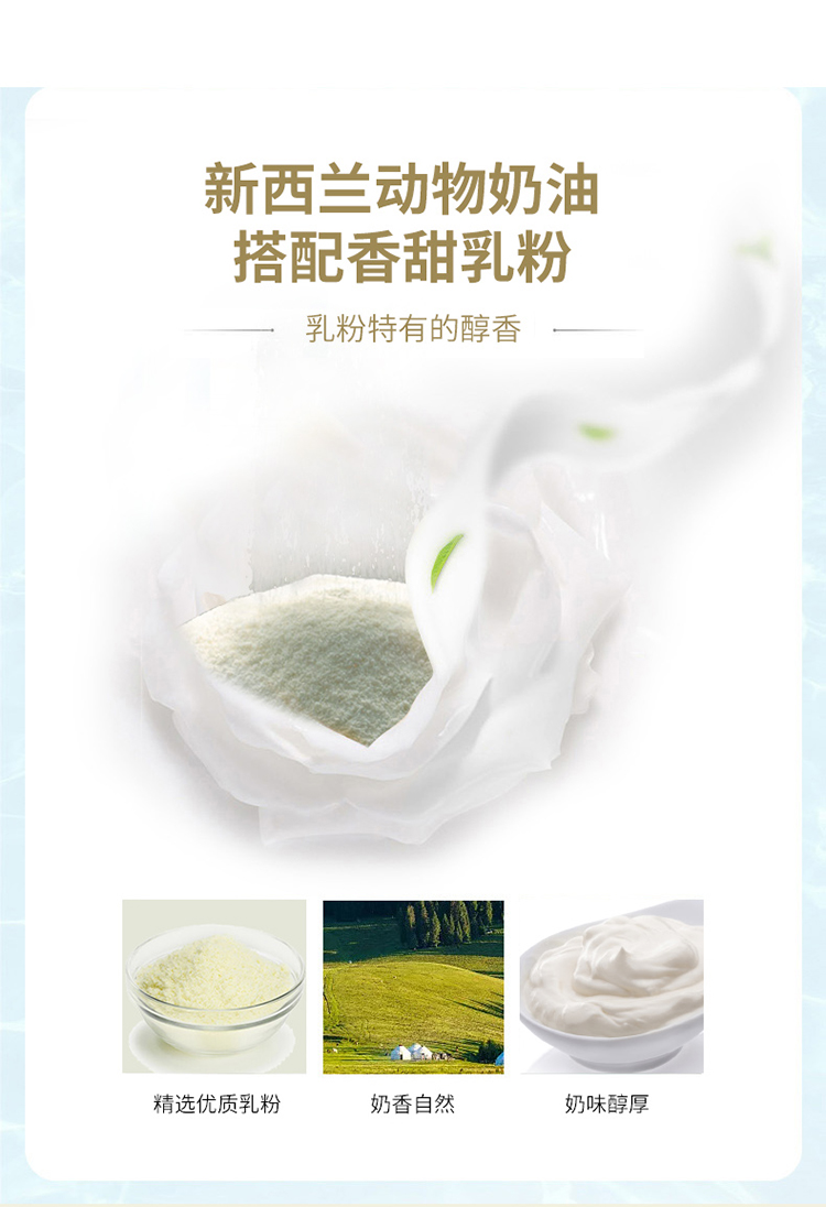 新西兰进口动物奶油,搭配全脂乳粉调和,外表酥脆金黄,内里松软,是早餐菜单中牛奶、咖啡、豆浆的好伴侣。
